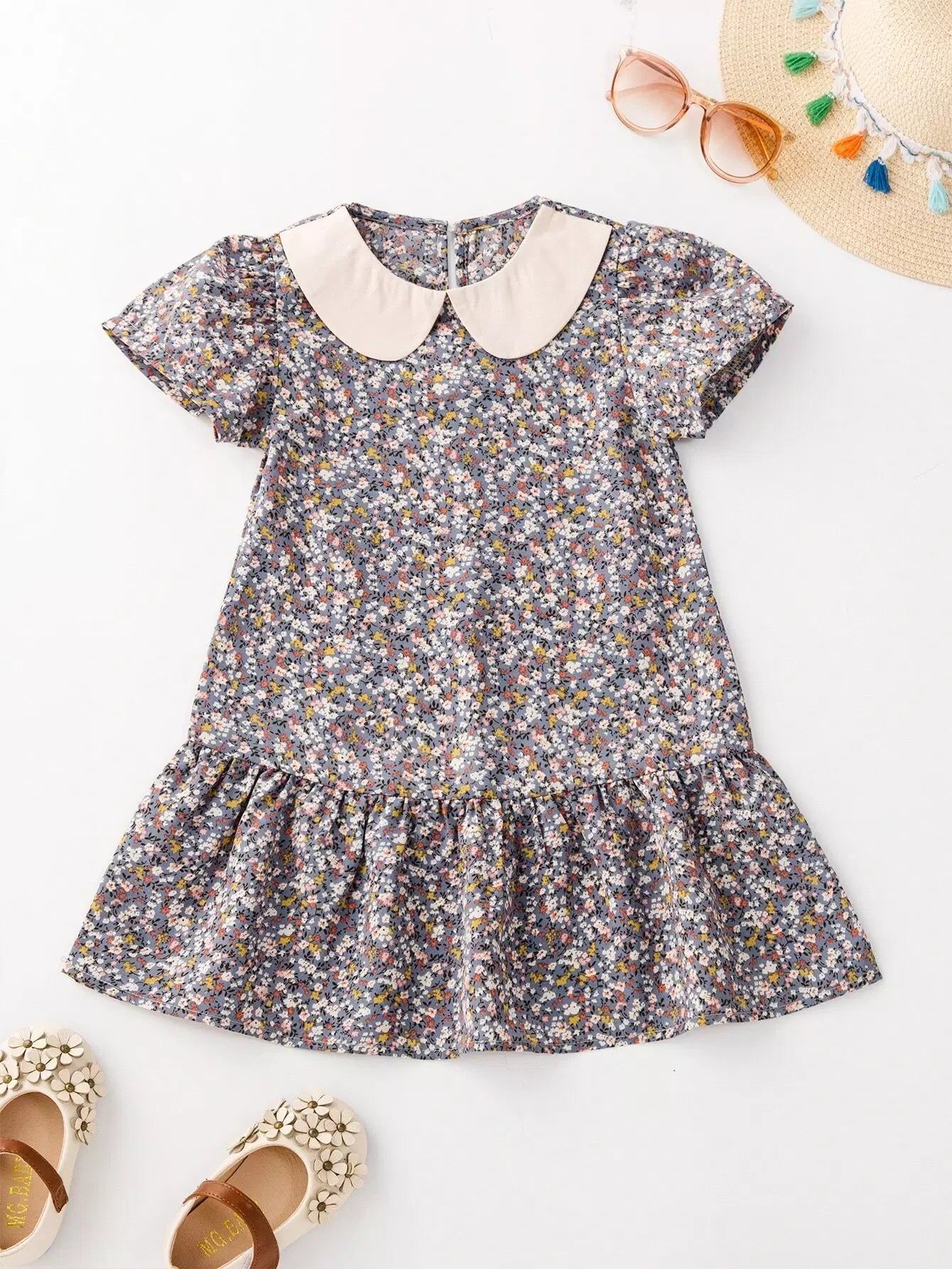 فستان بنات صغيرات ديتسي بحافة كشكش مزين بالورود