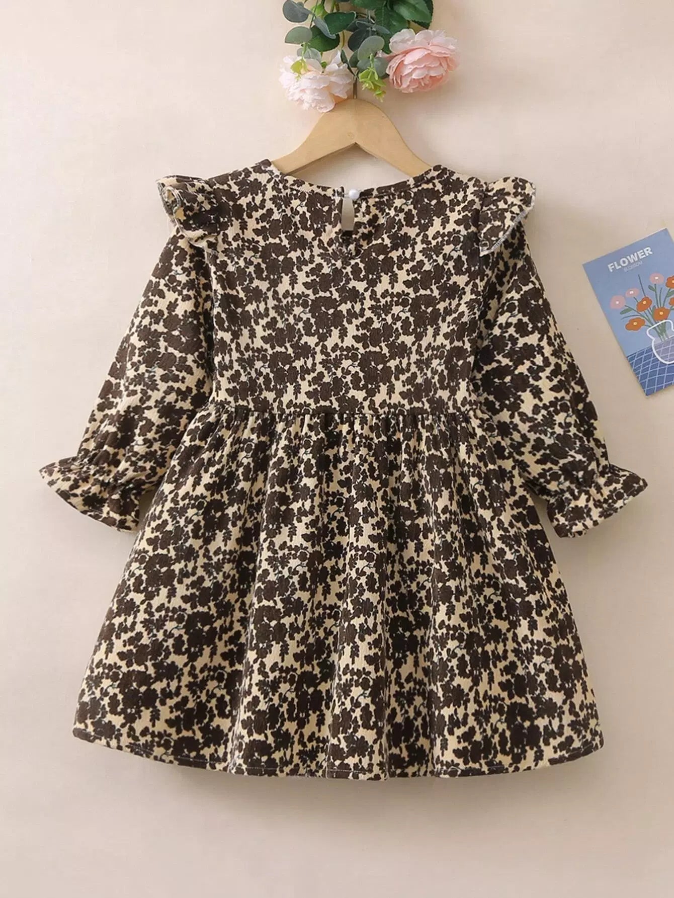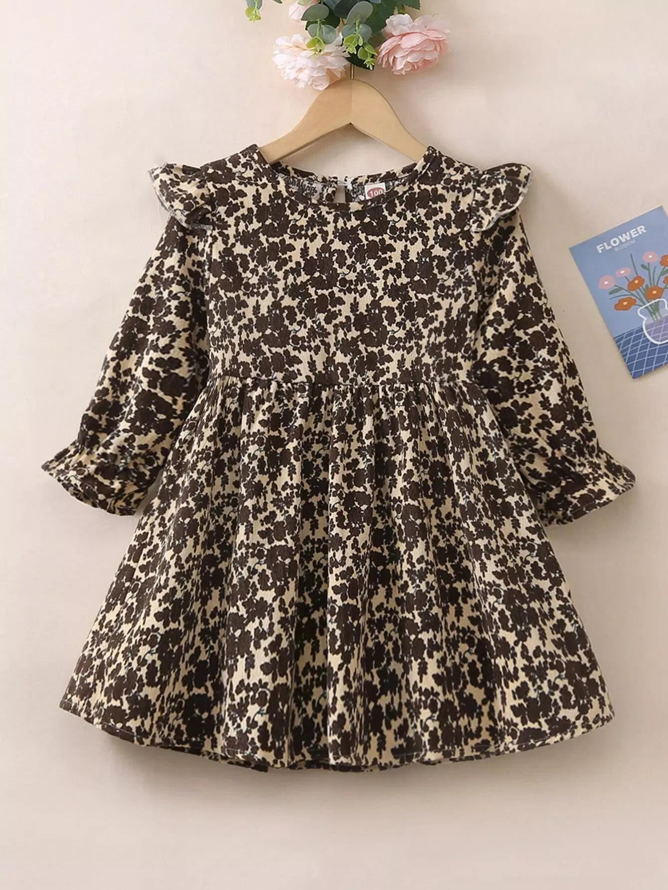 فستان بنات صغيرات بأكمام كشكش مزين بالورود ذات أكمام مكشكشة