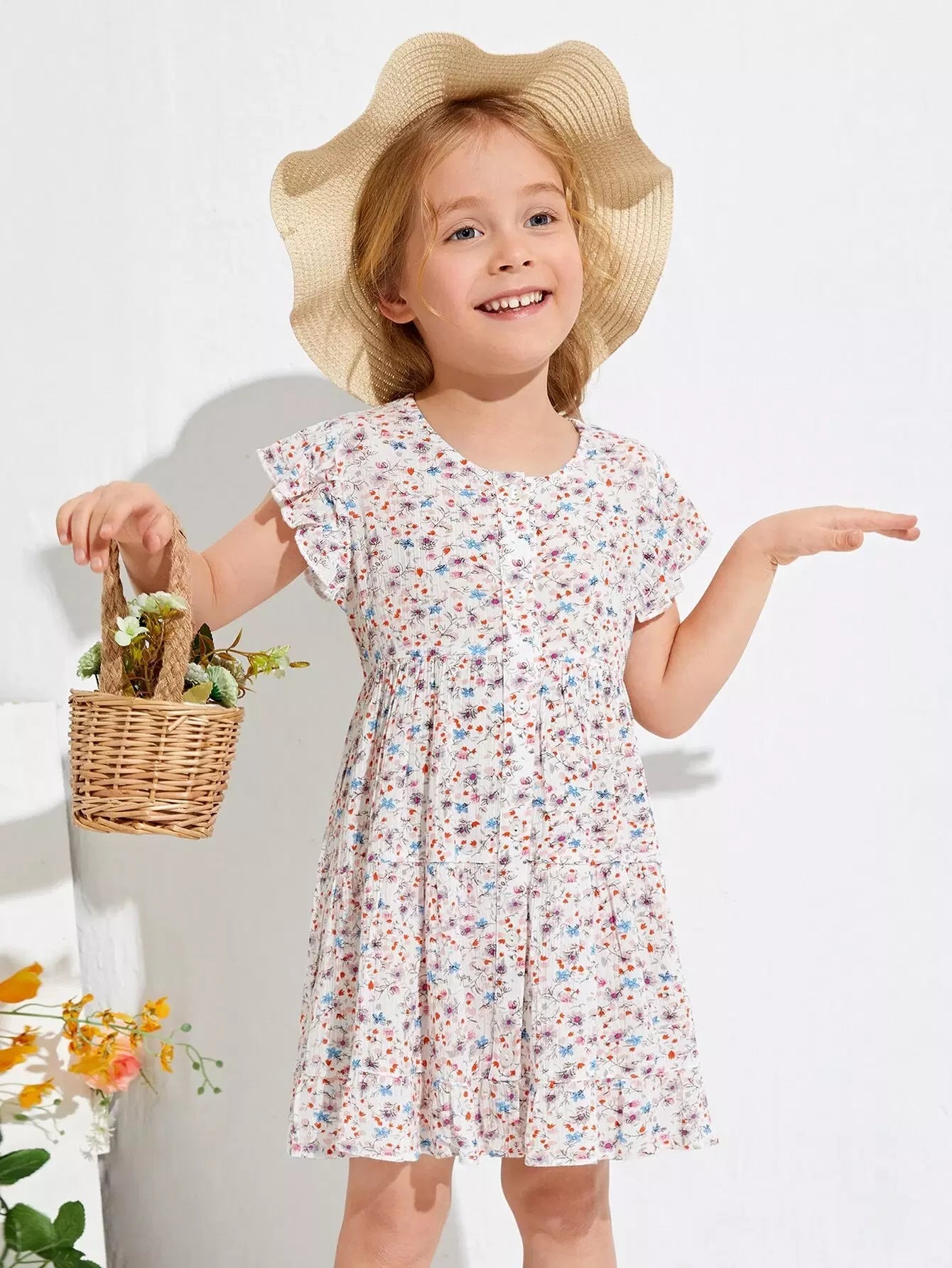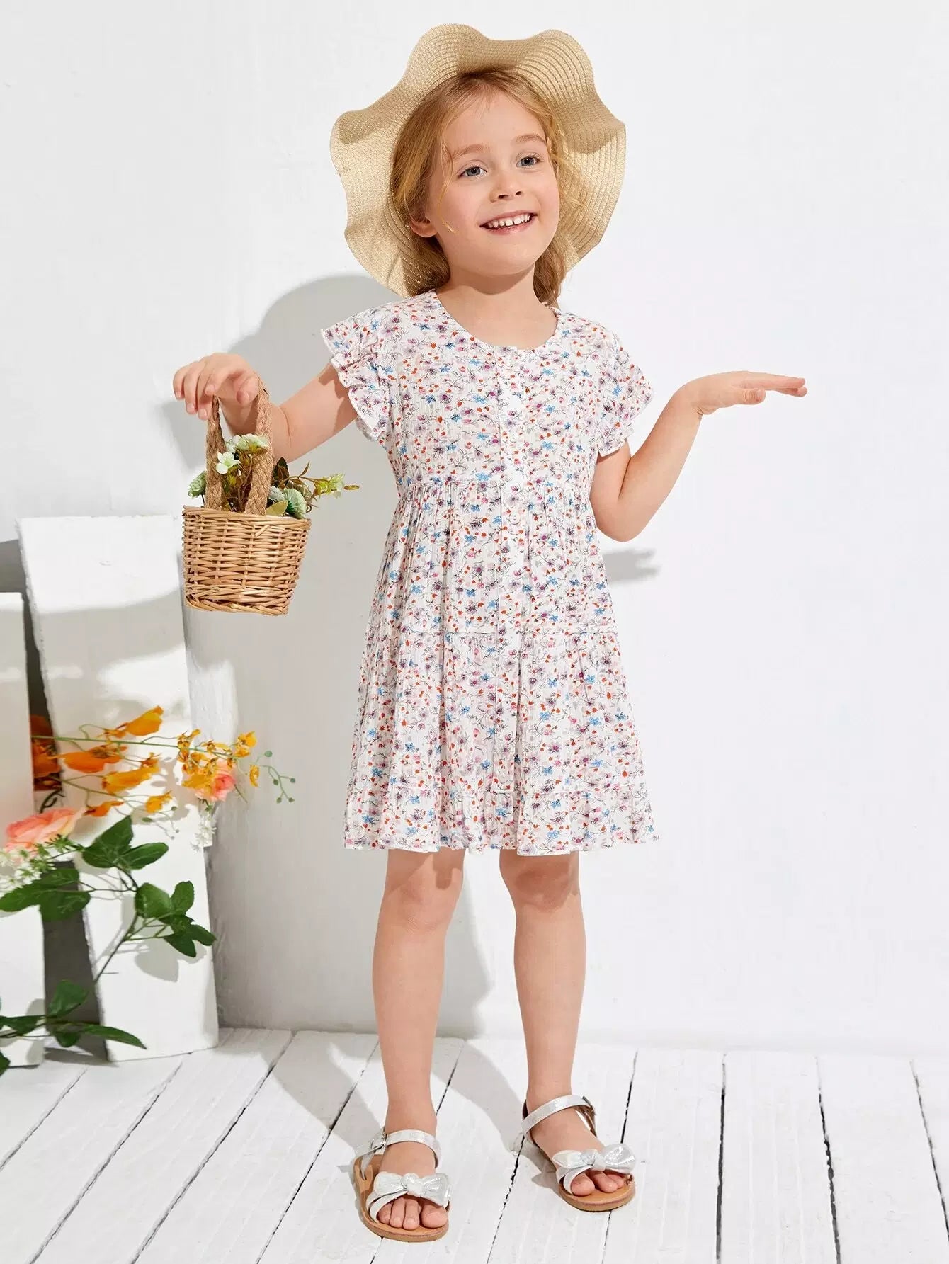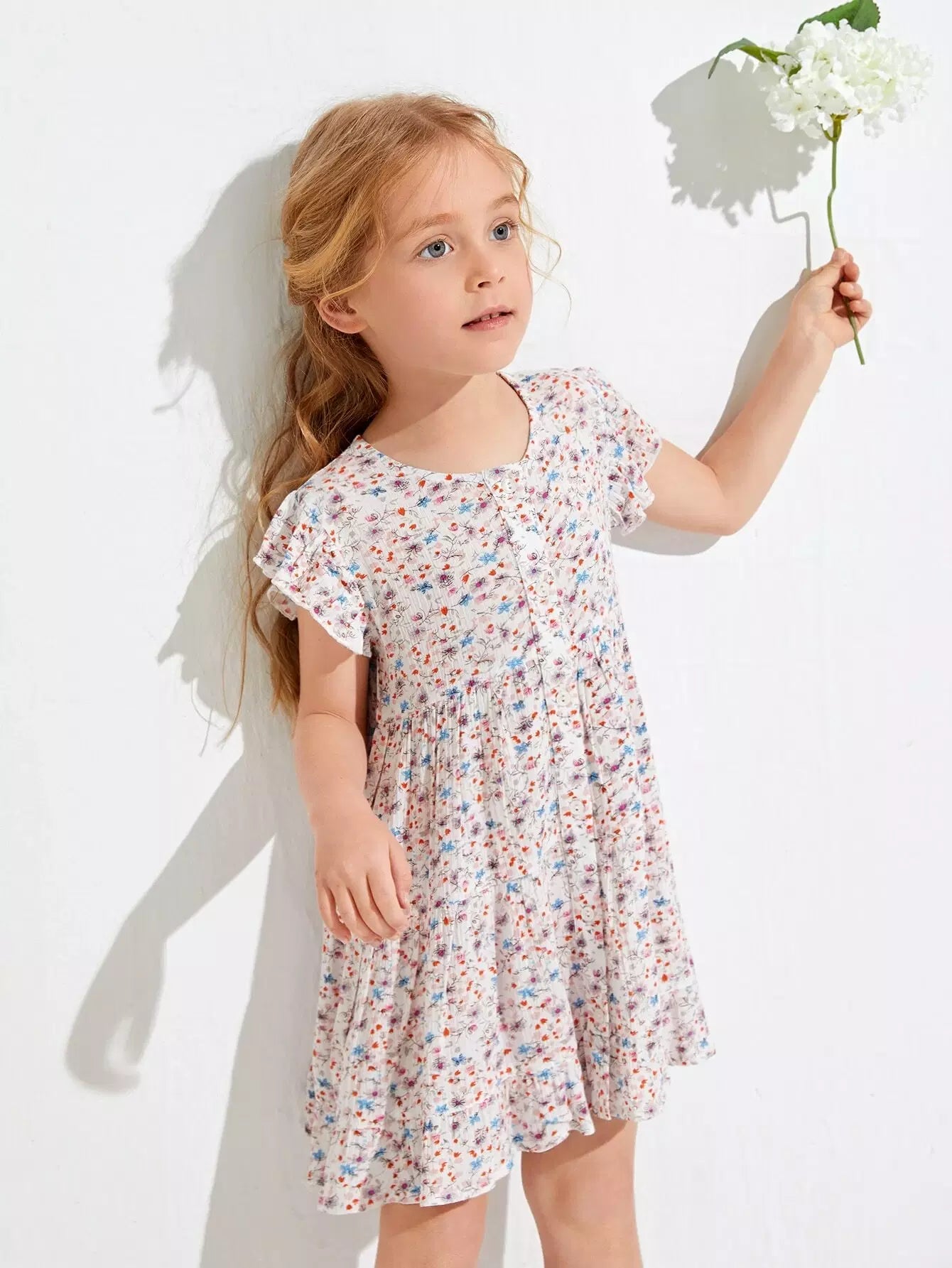 فستان بنات صغيرات ديتسي سموك مزين بالزهور