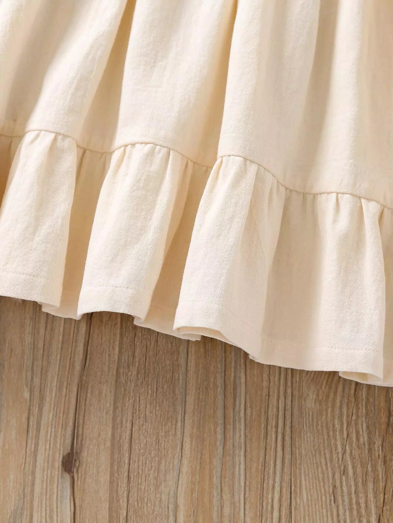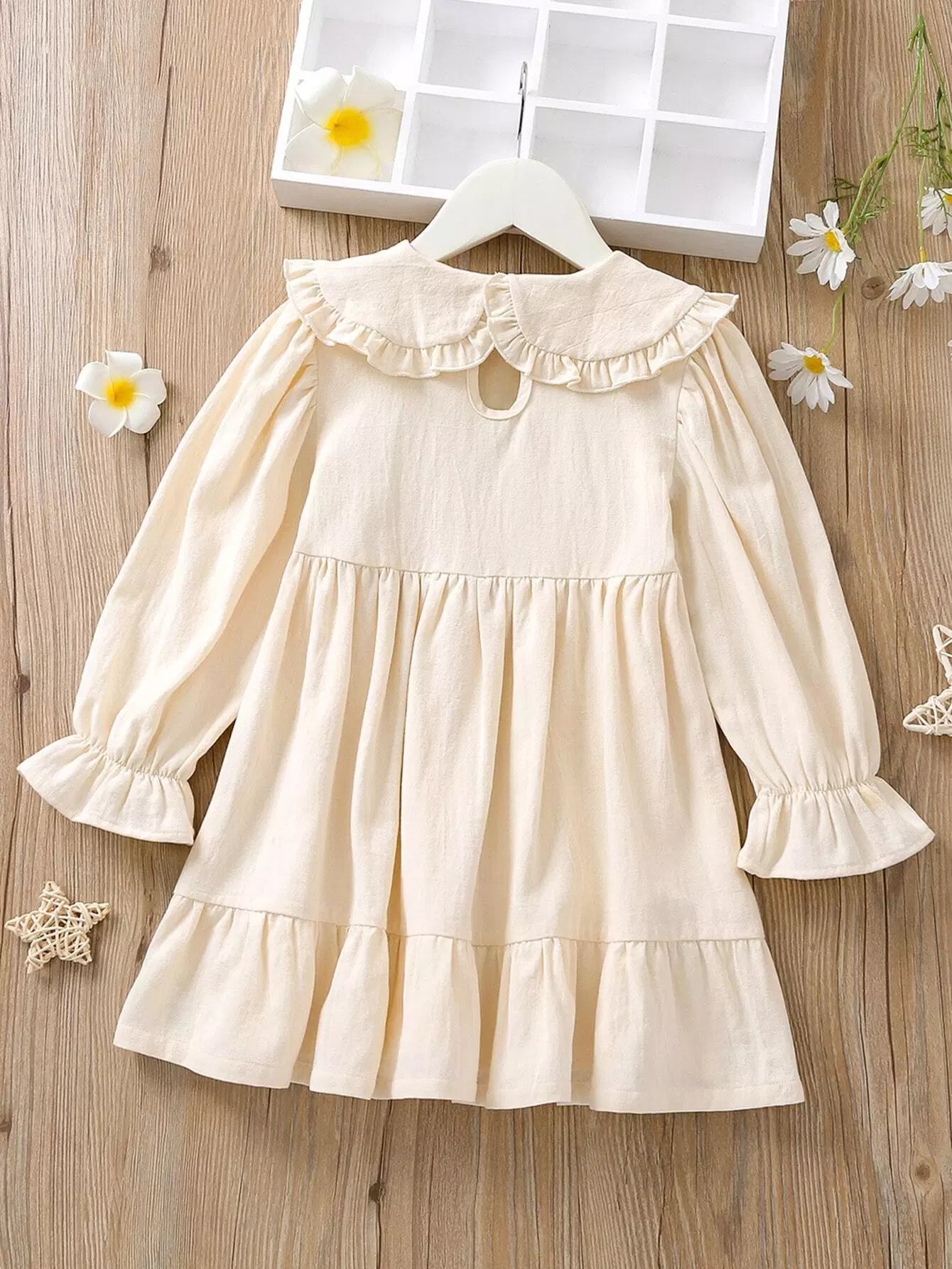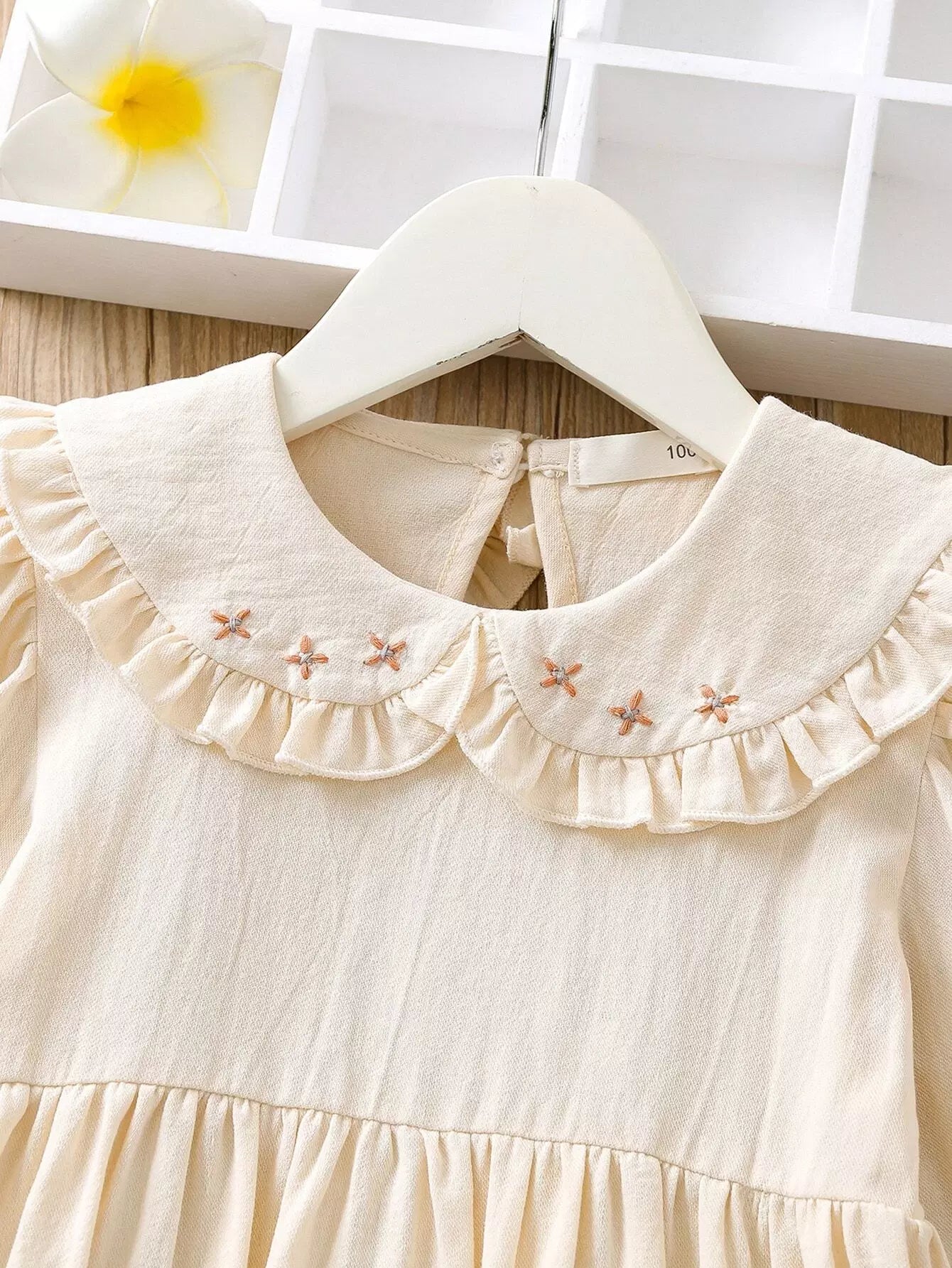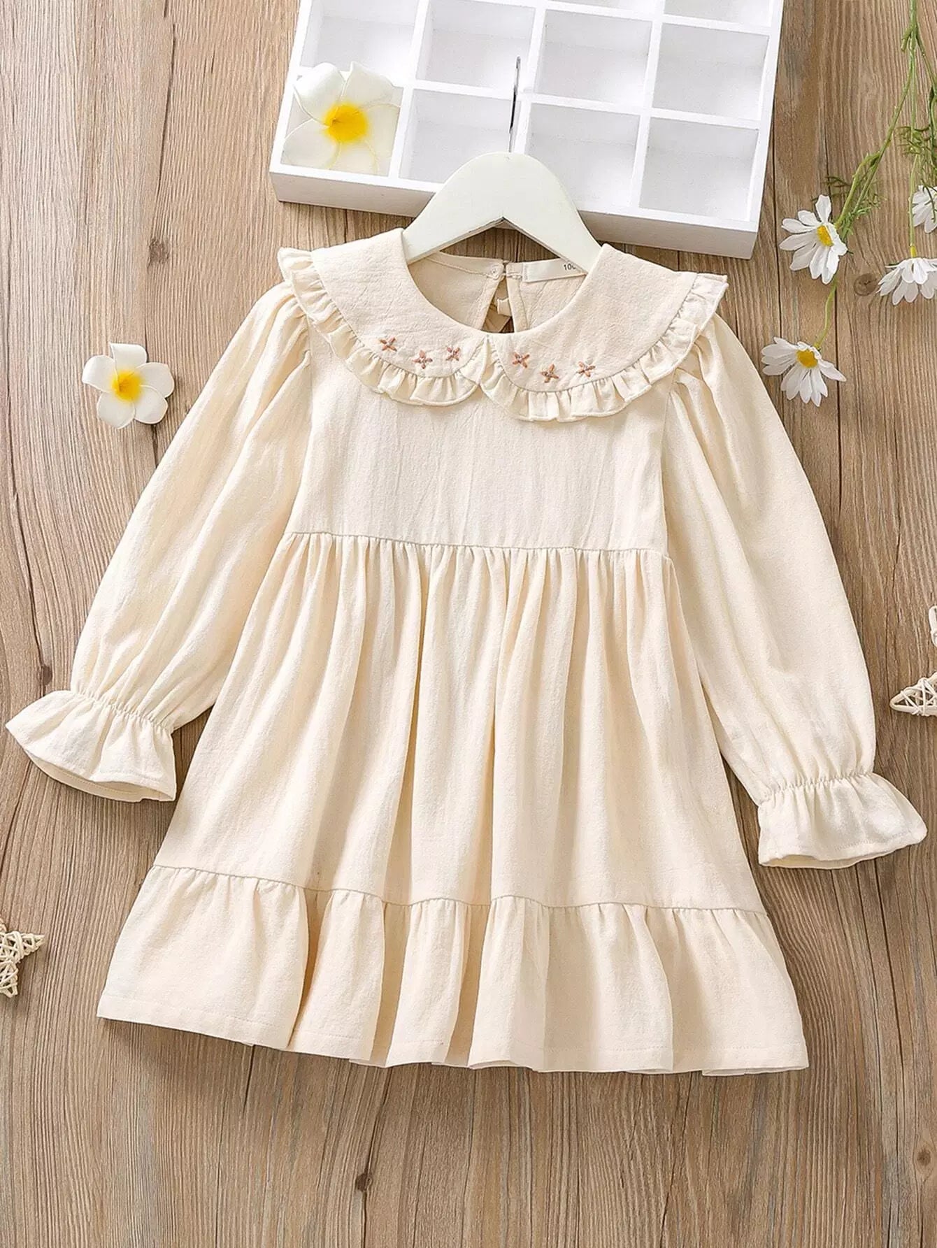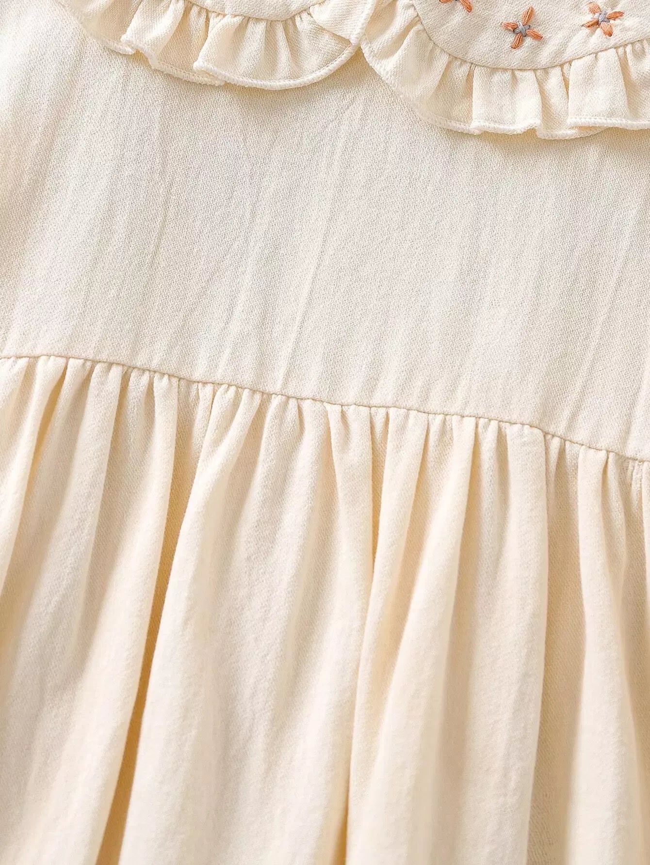 فستان بياقة بيتر بان بأكمام كشكش بأطراف كشكش بتطريزات مزركشة للبنات الصغار