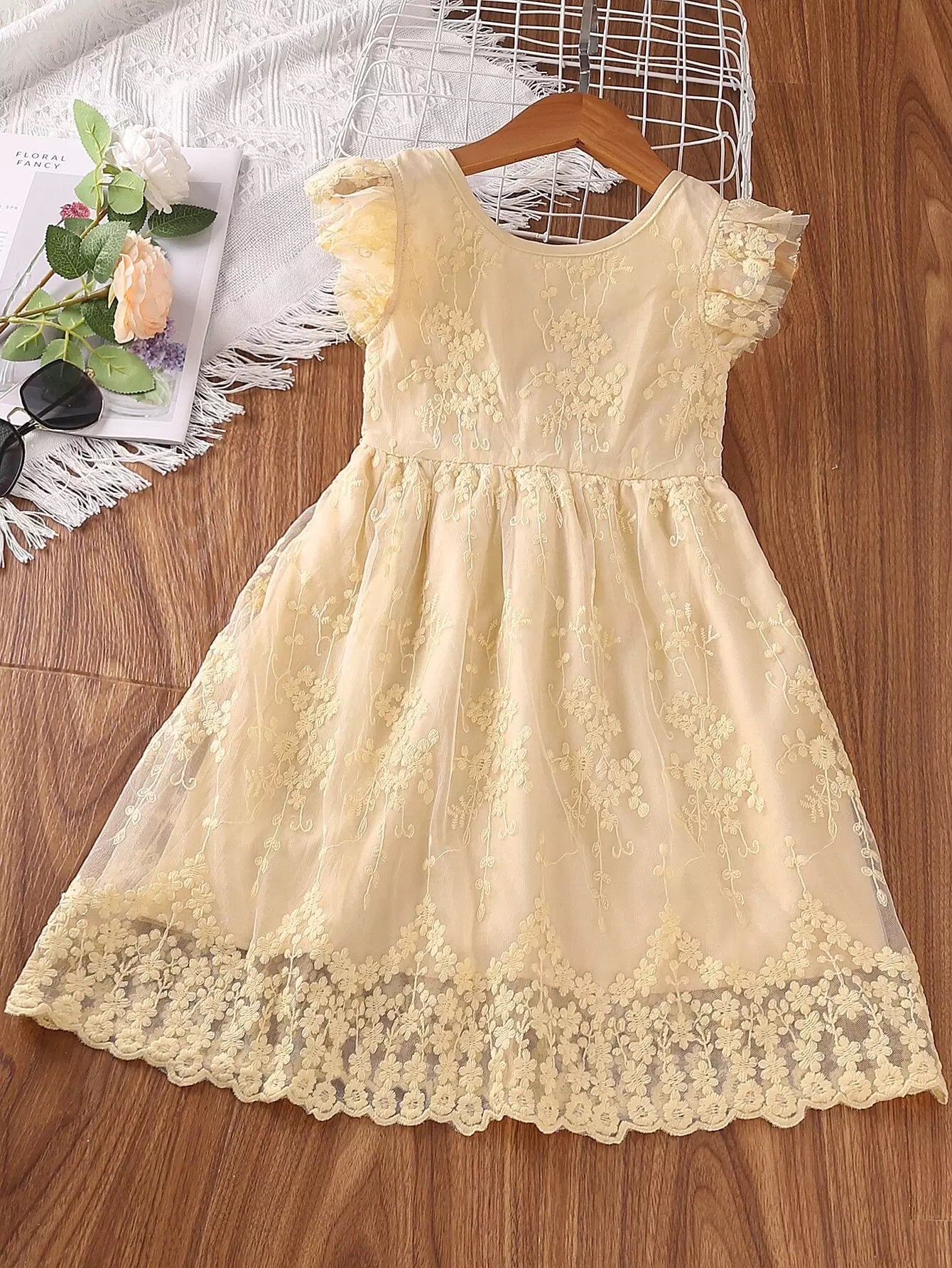 فستان بناتي صغيرات بتطريز على شكل حرف A على شكل حرف A