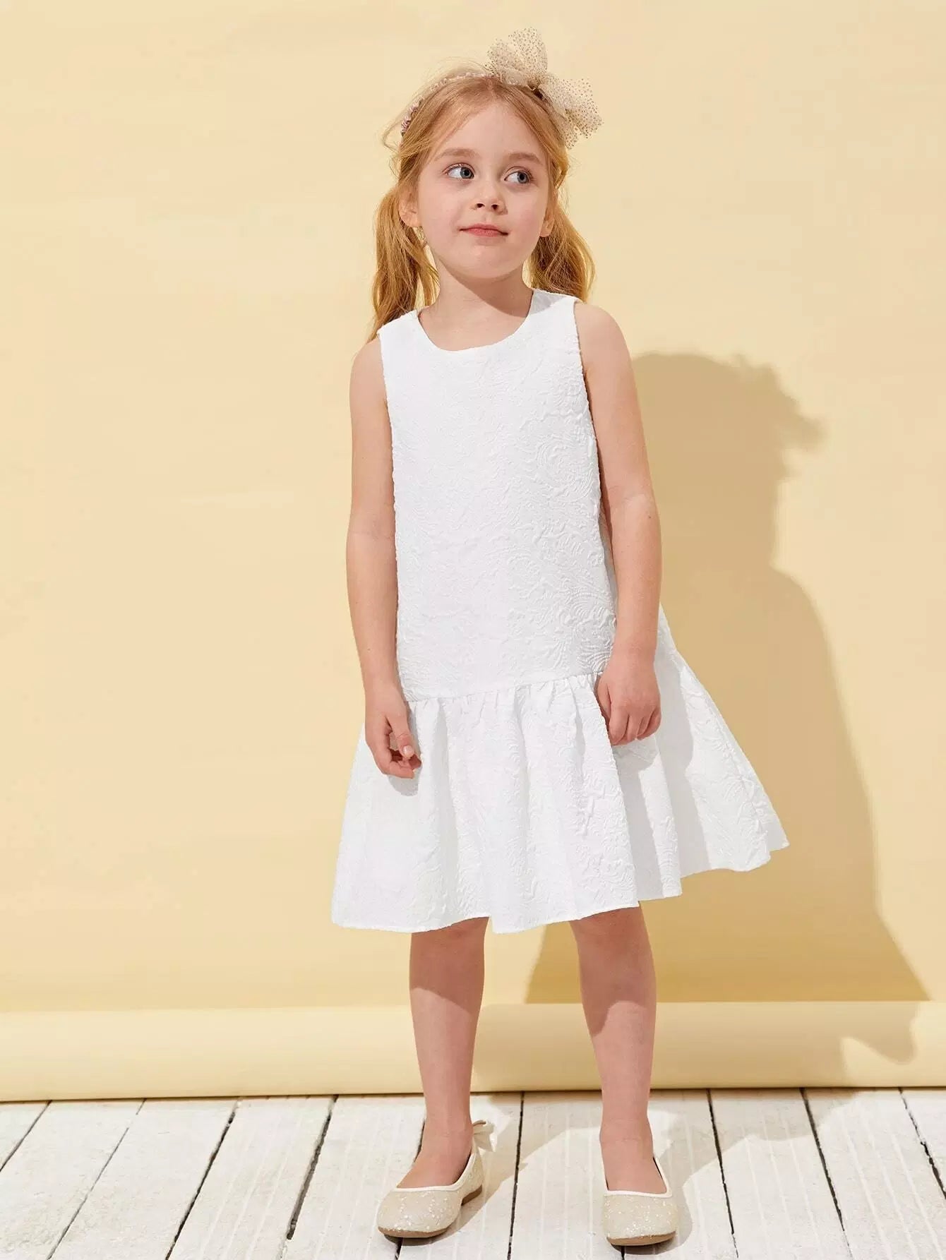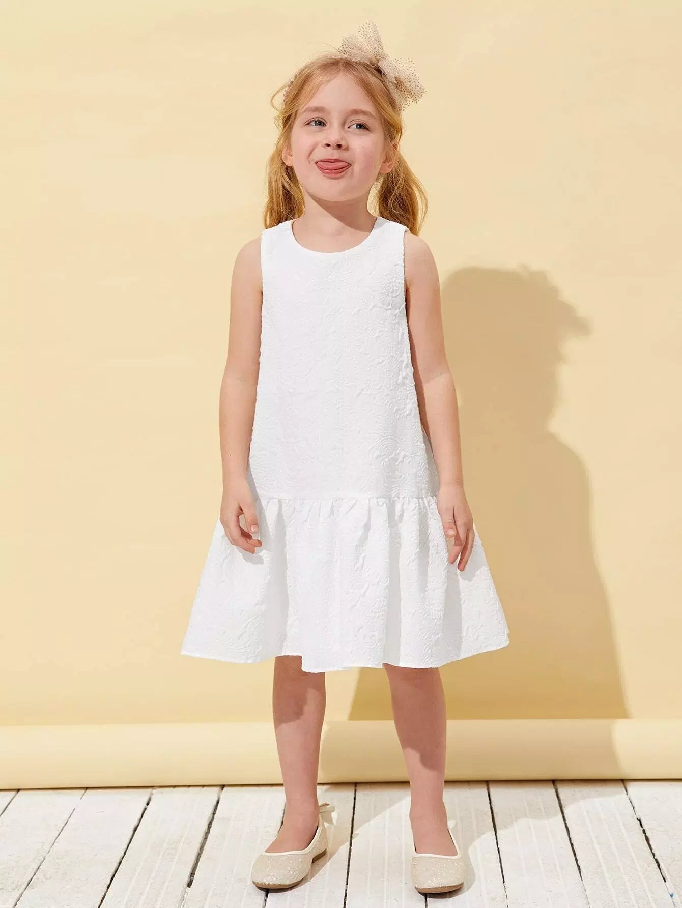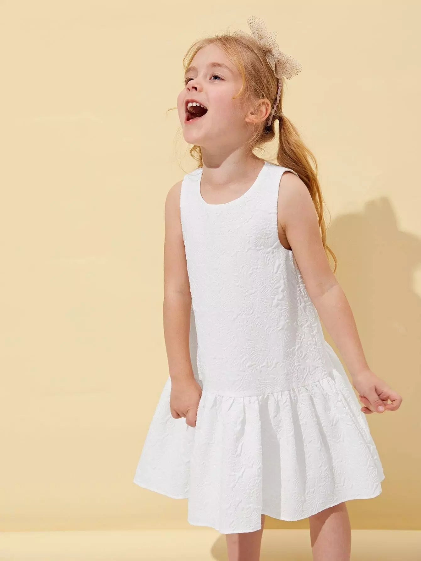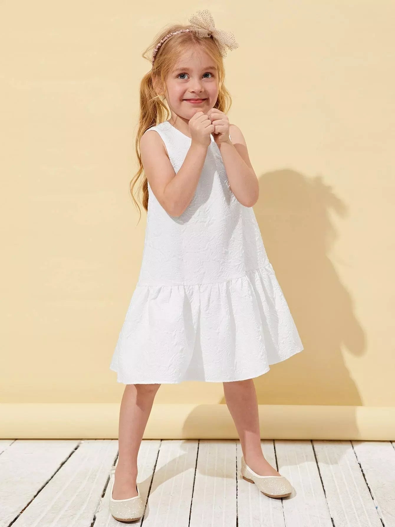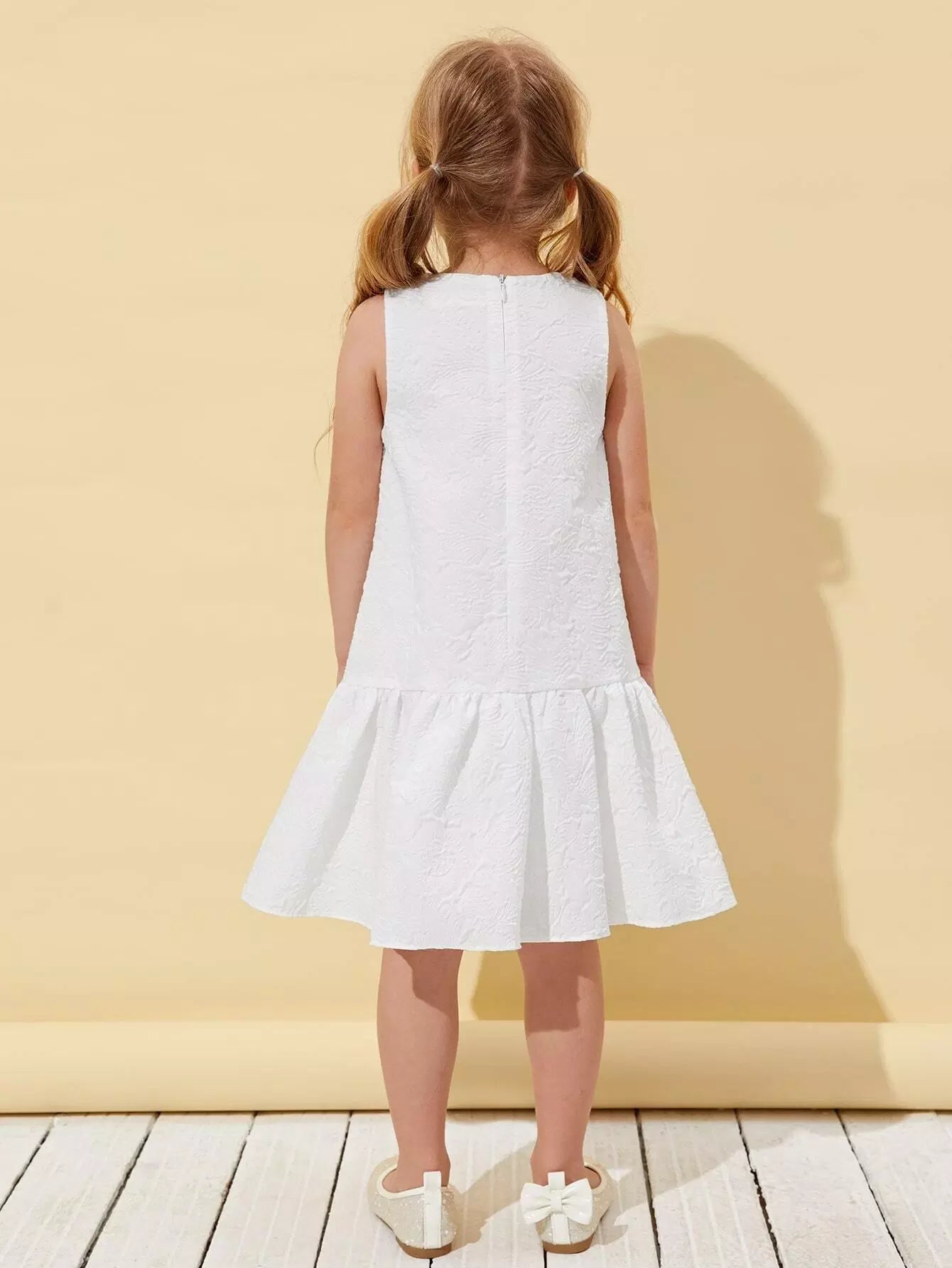 فستان مزين بالزهور مع حافة مكشكشة للبنات الصغار
