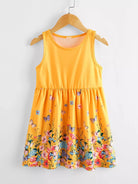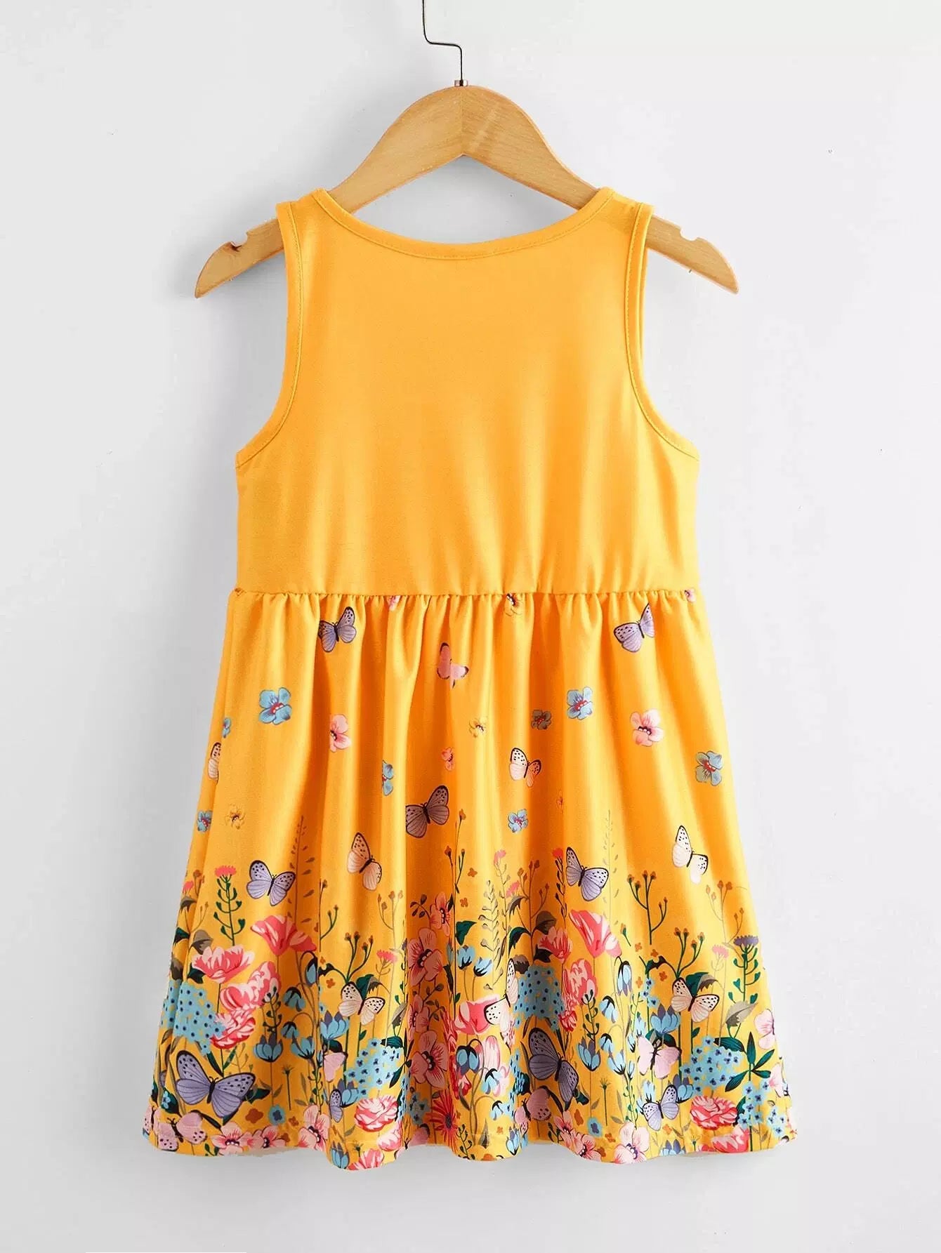 فستان بناتي صغيرات بطبعة زهور وفراشات على شكل حرف A