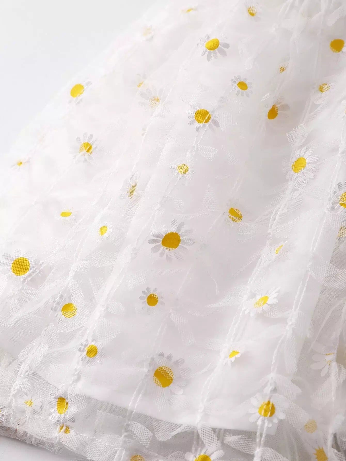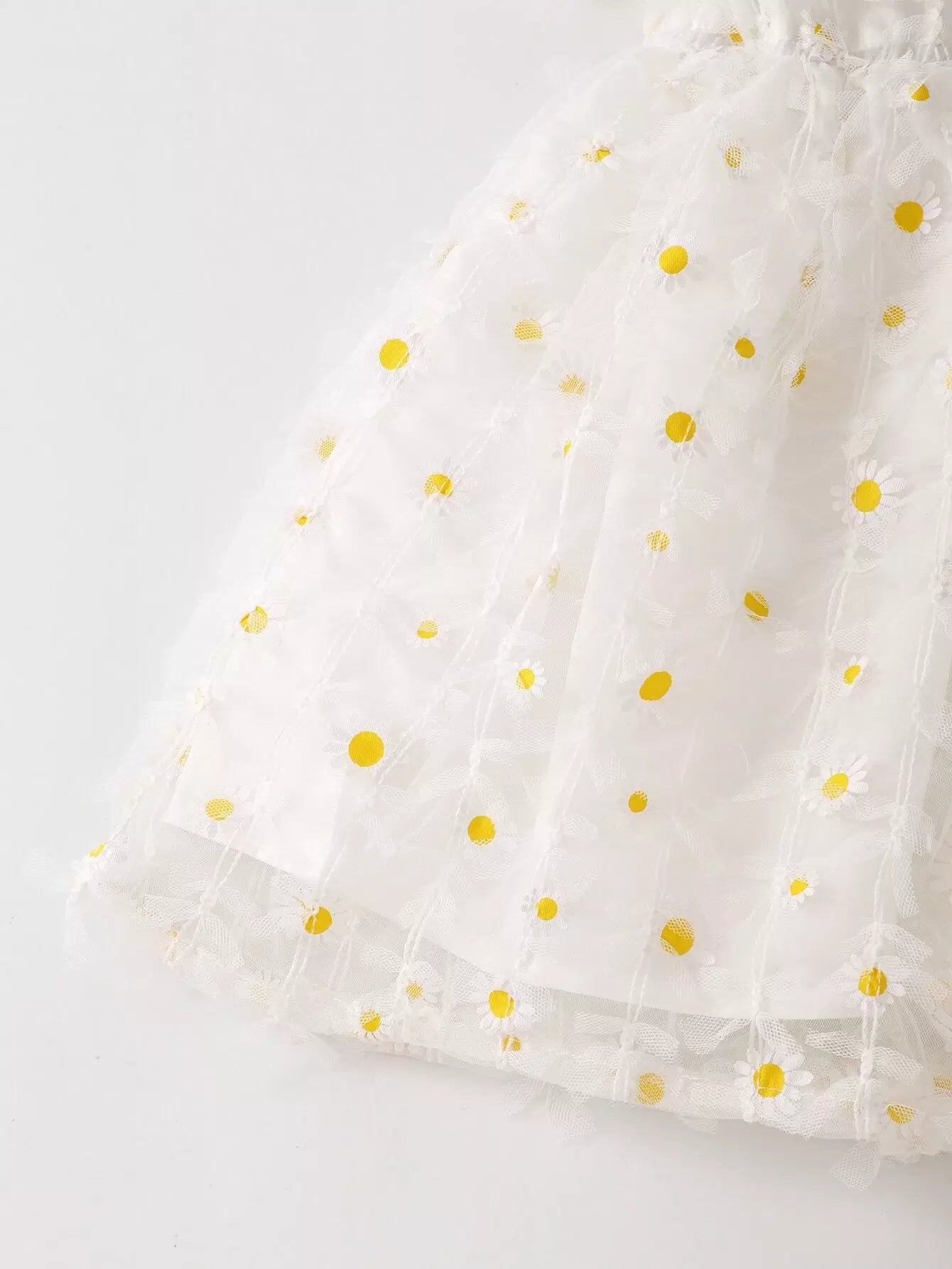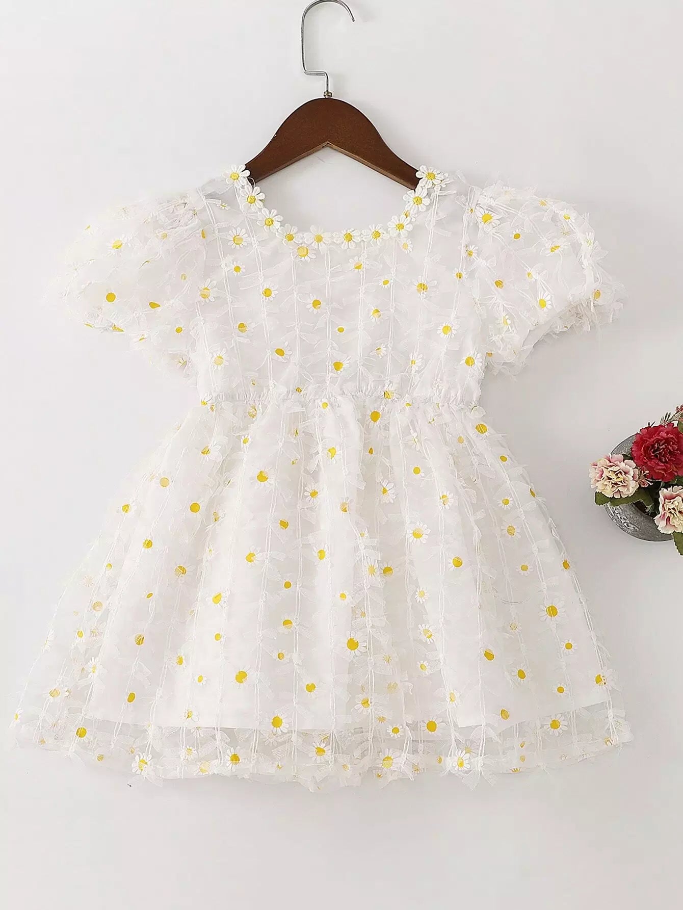 فستان بناتي صغيرات بتطريز شبكي مطرز بالورود
