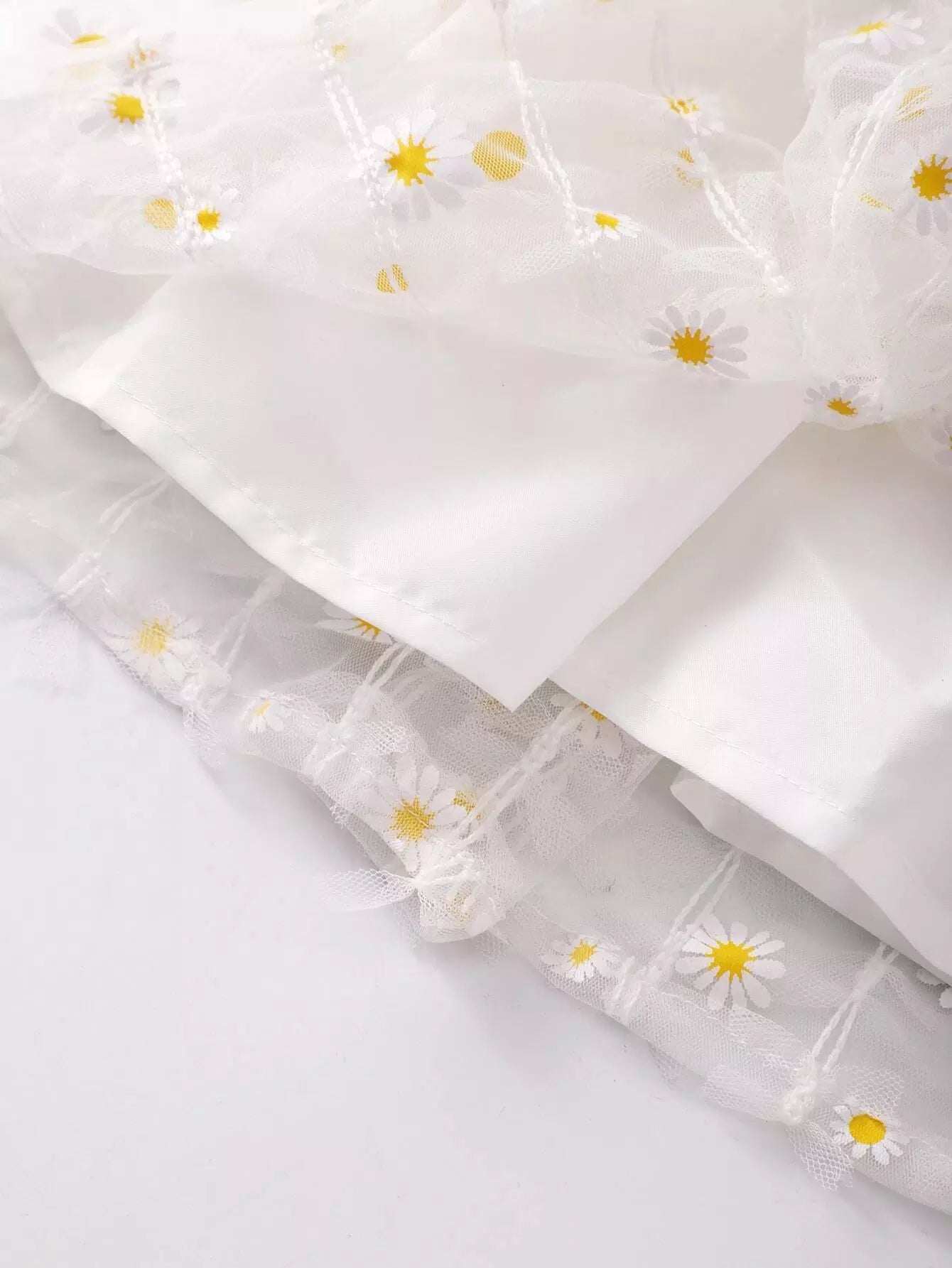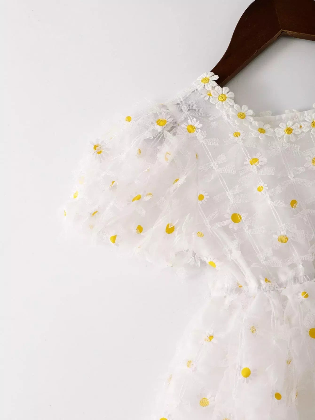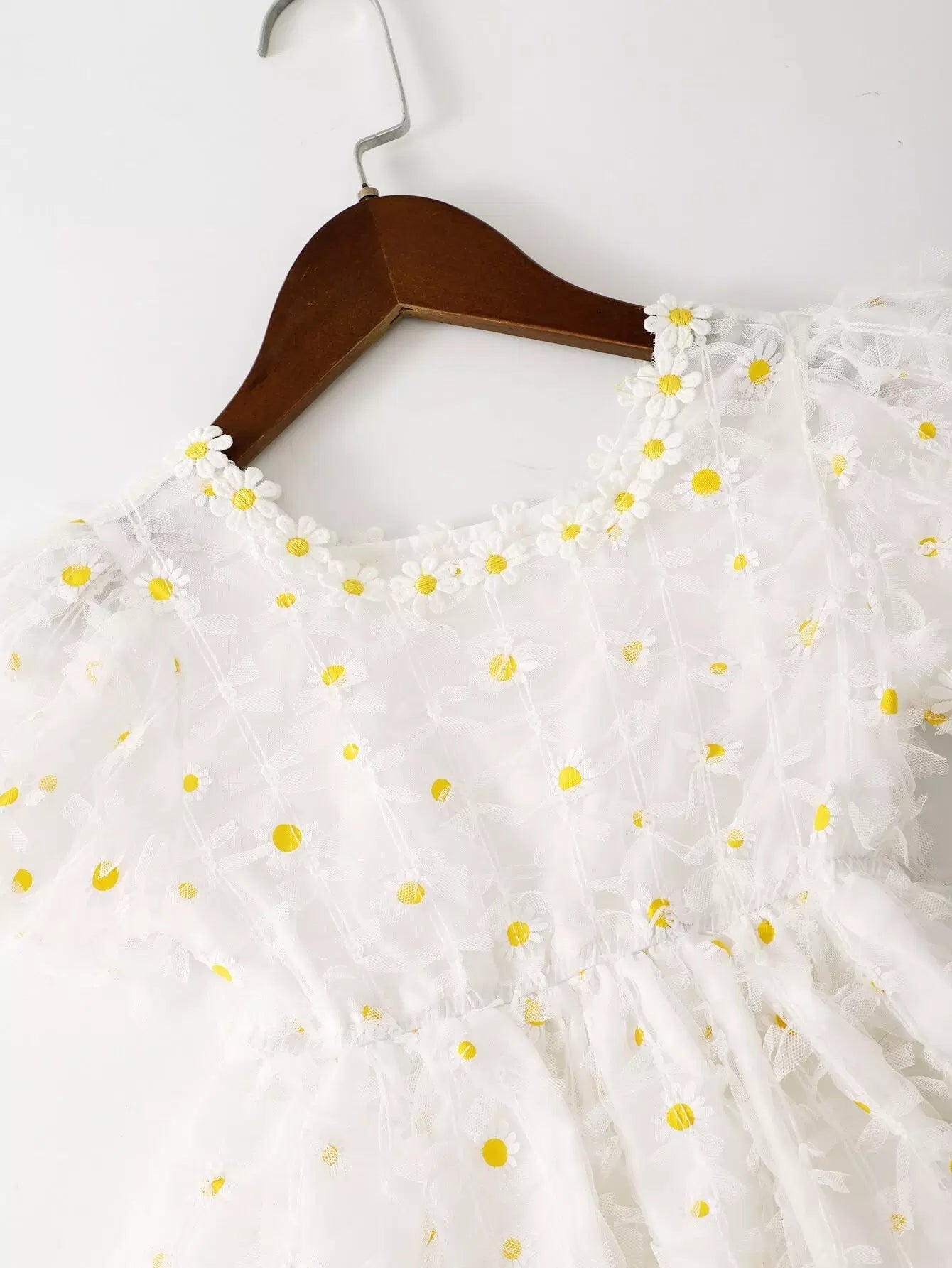 فستان بناتي صغيرات بتطريز شبكي مطرز بالورود