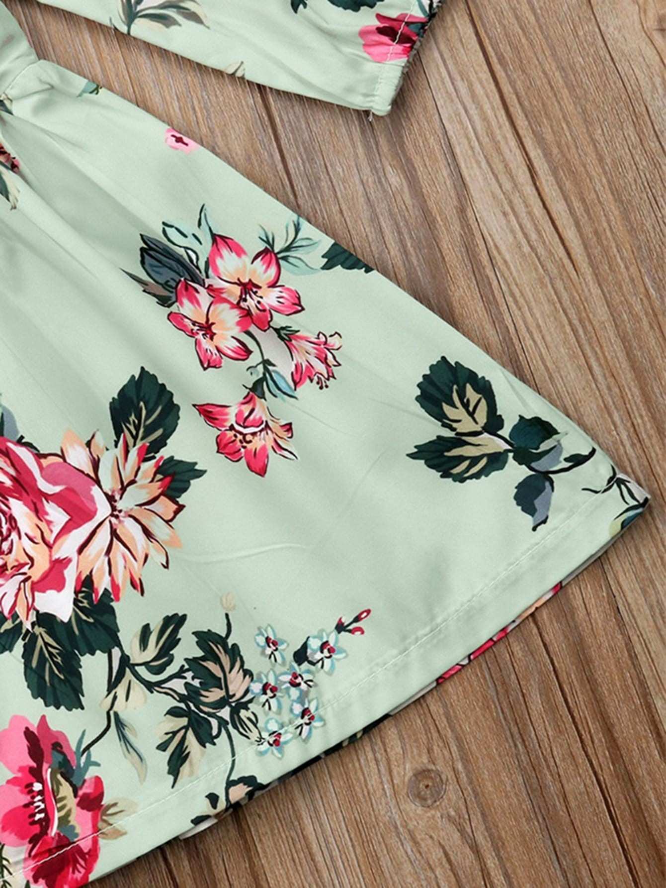 فستان واسع للفتيات الصغيرات مزين بطبعات زهور ومكشكش مع عصابة رأس