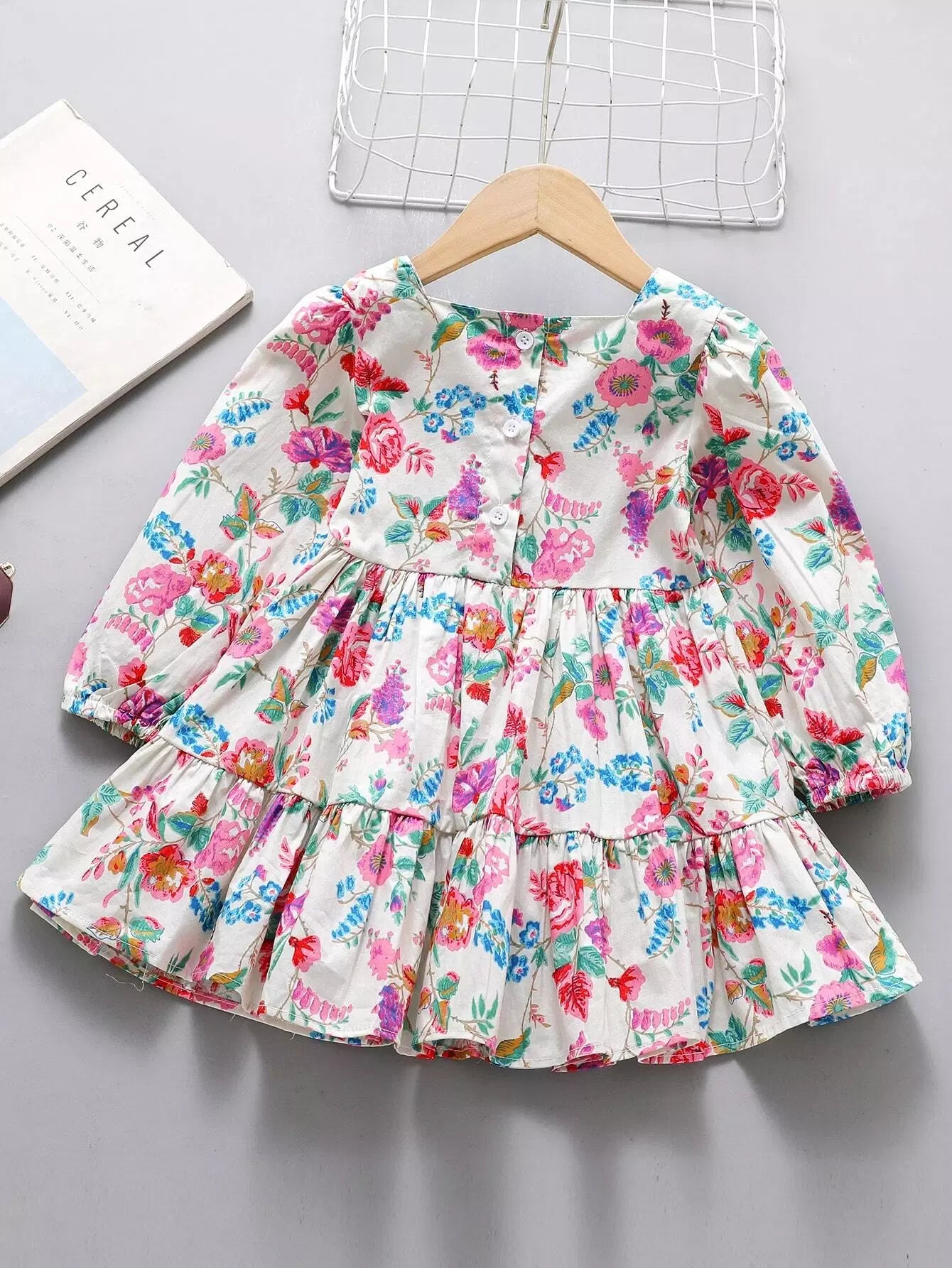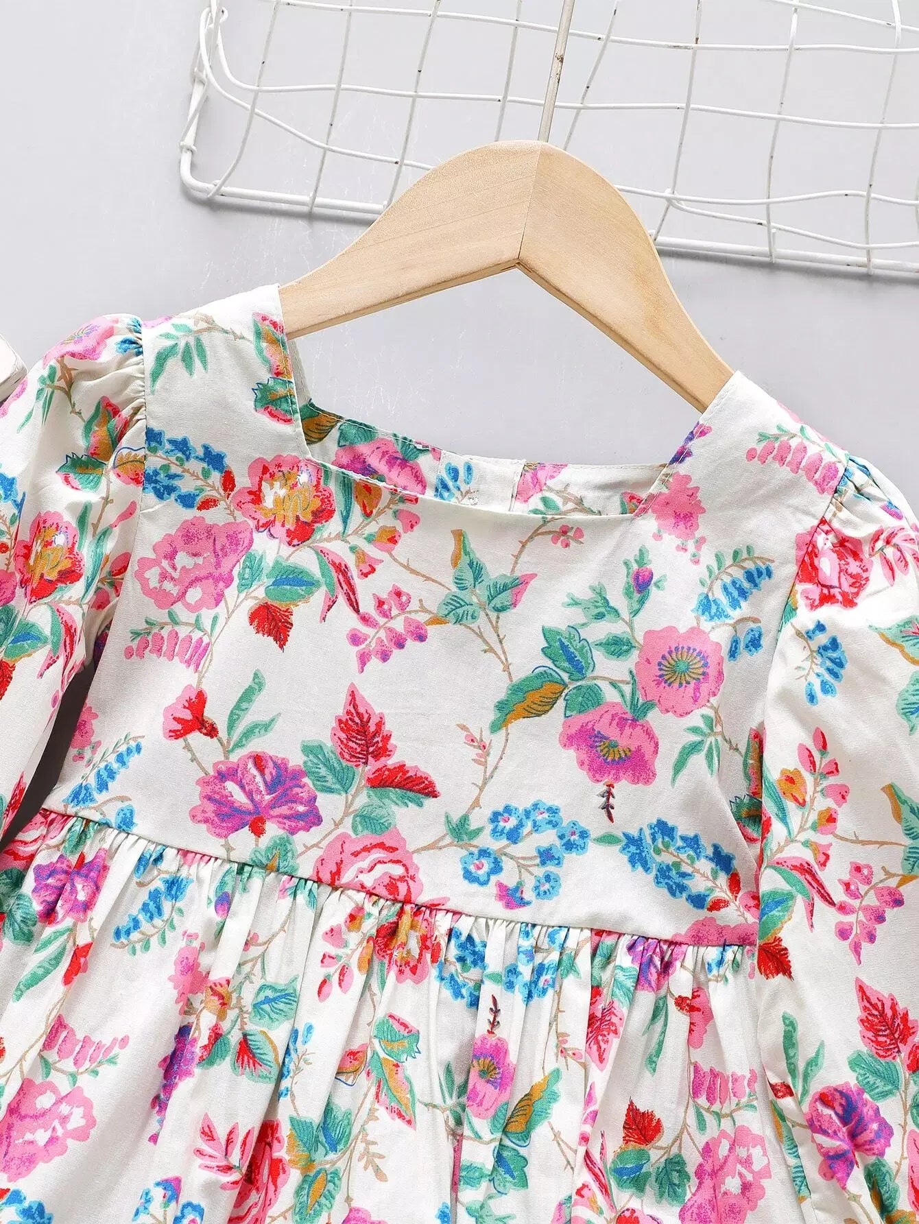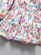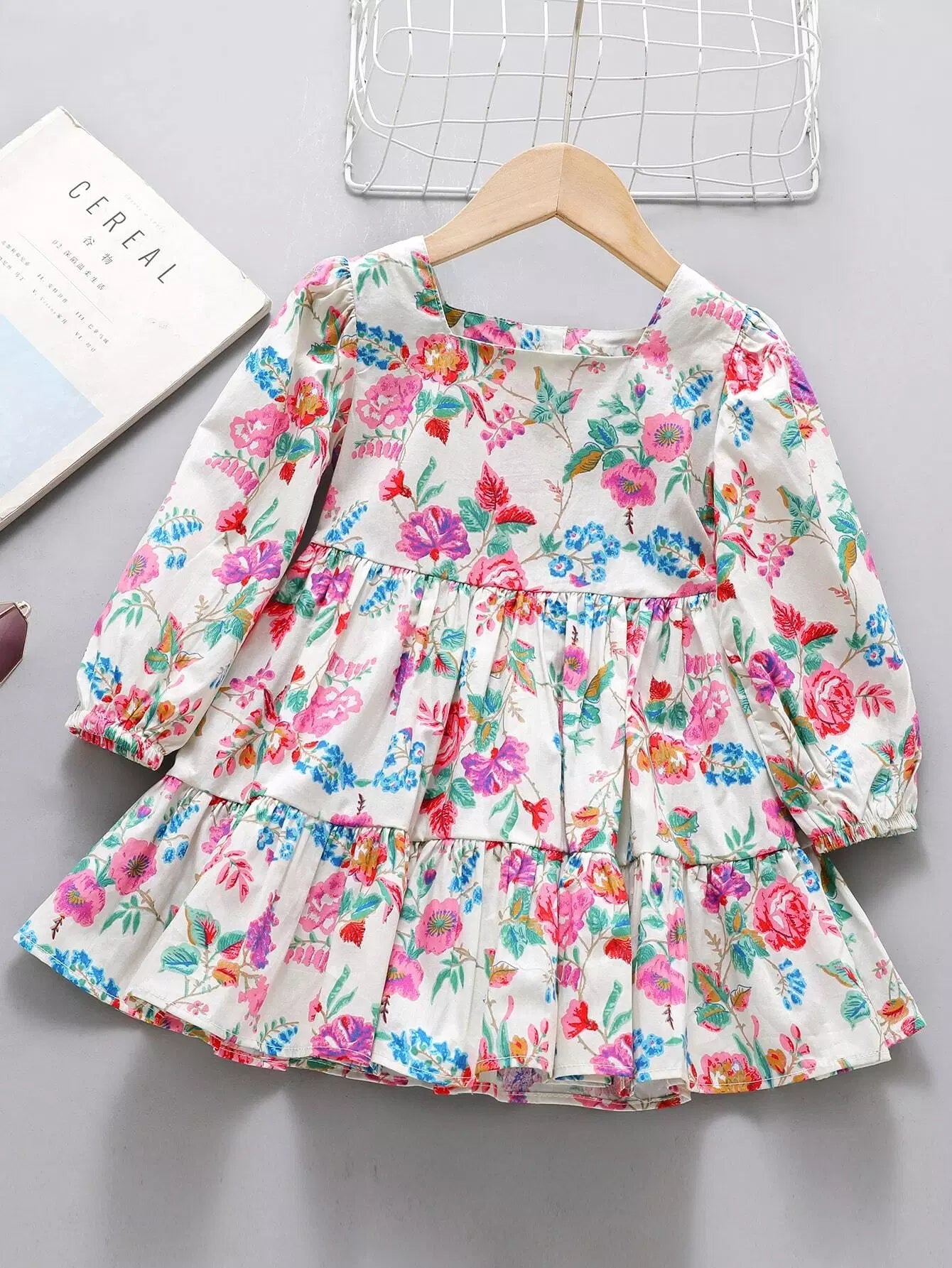فستان بناتي صغيرات بطبعة زهور برقبة مربعة بحافة كشكش