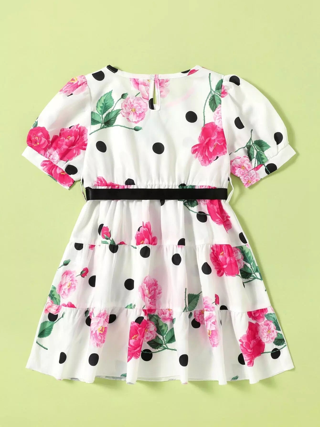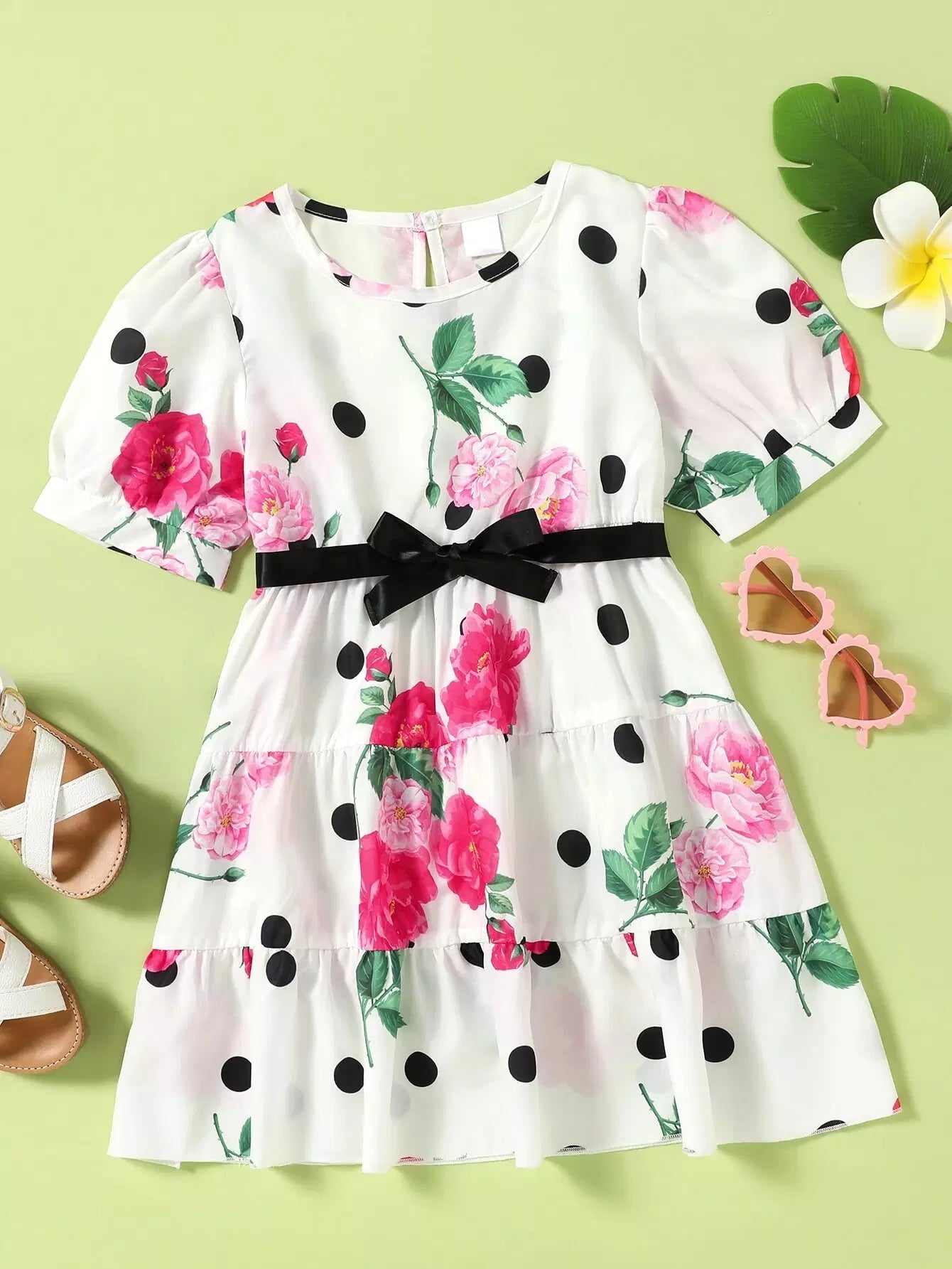فستان للفتيات الصغيرات ذو أكمام منتفخة ومكشكش بدون حزام