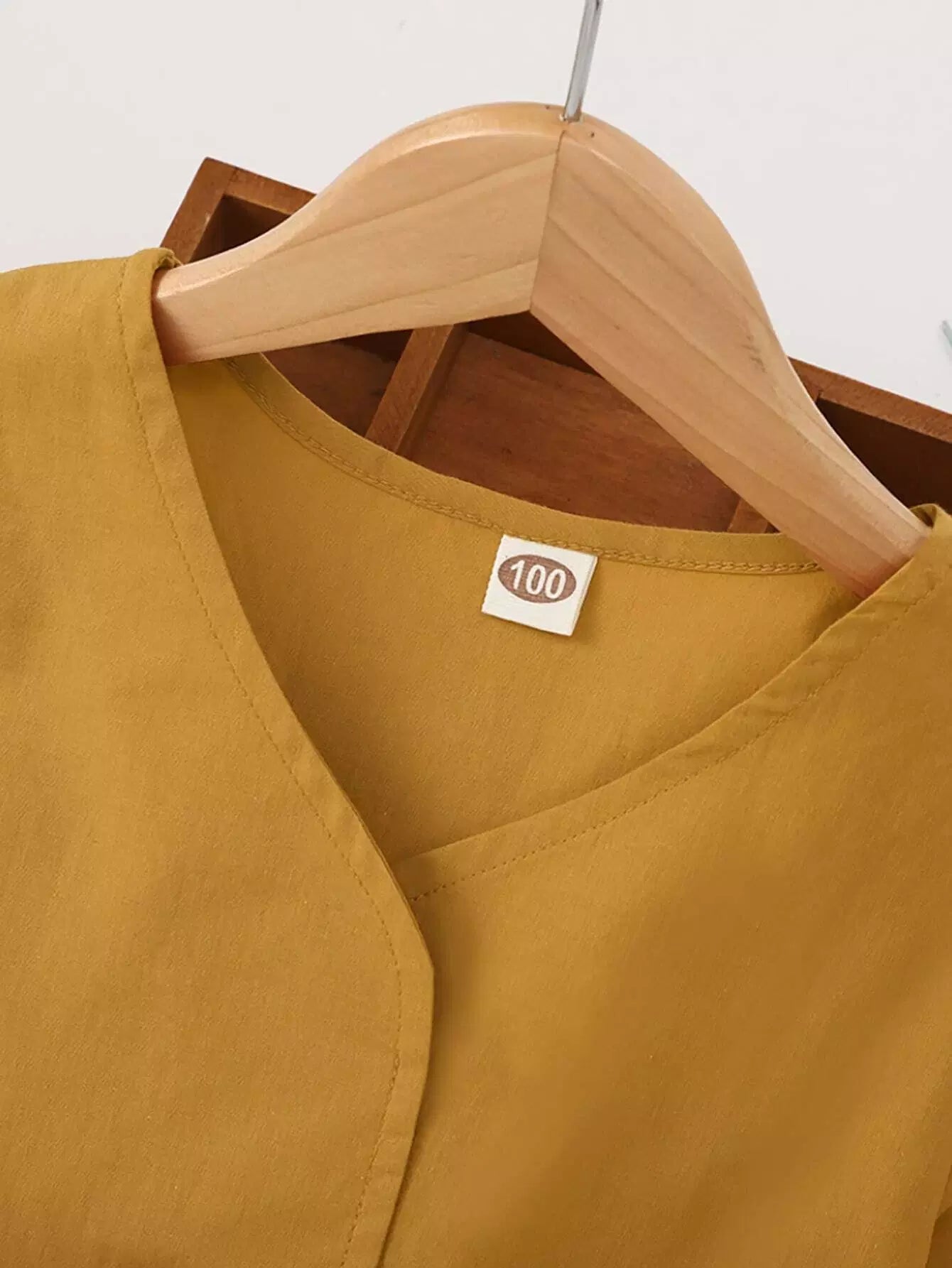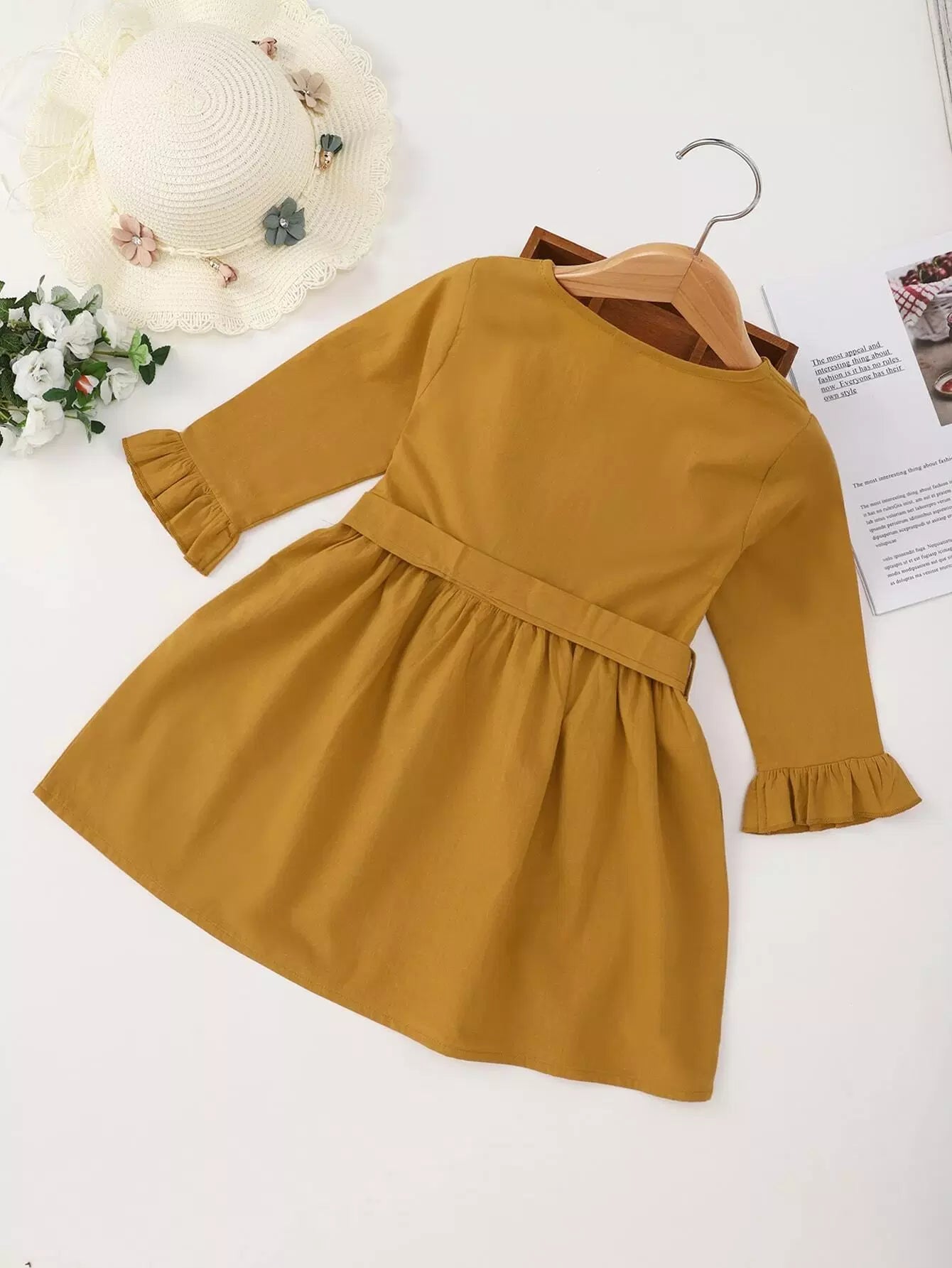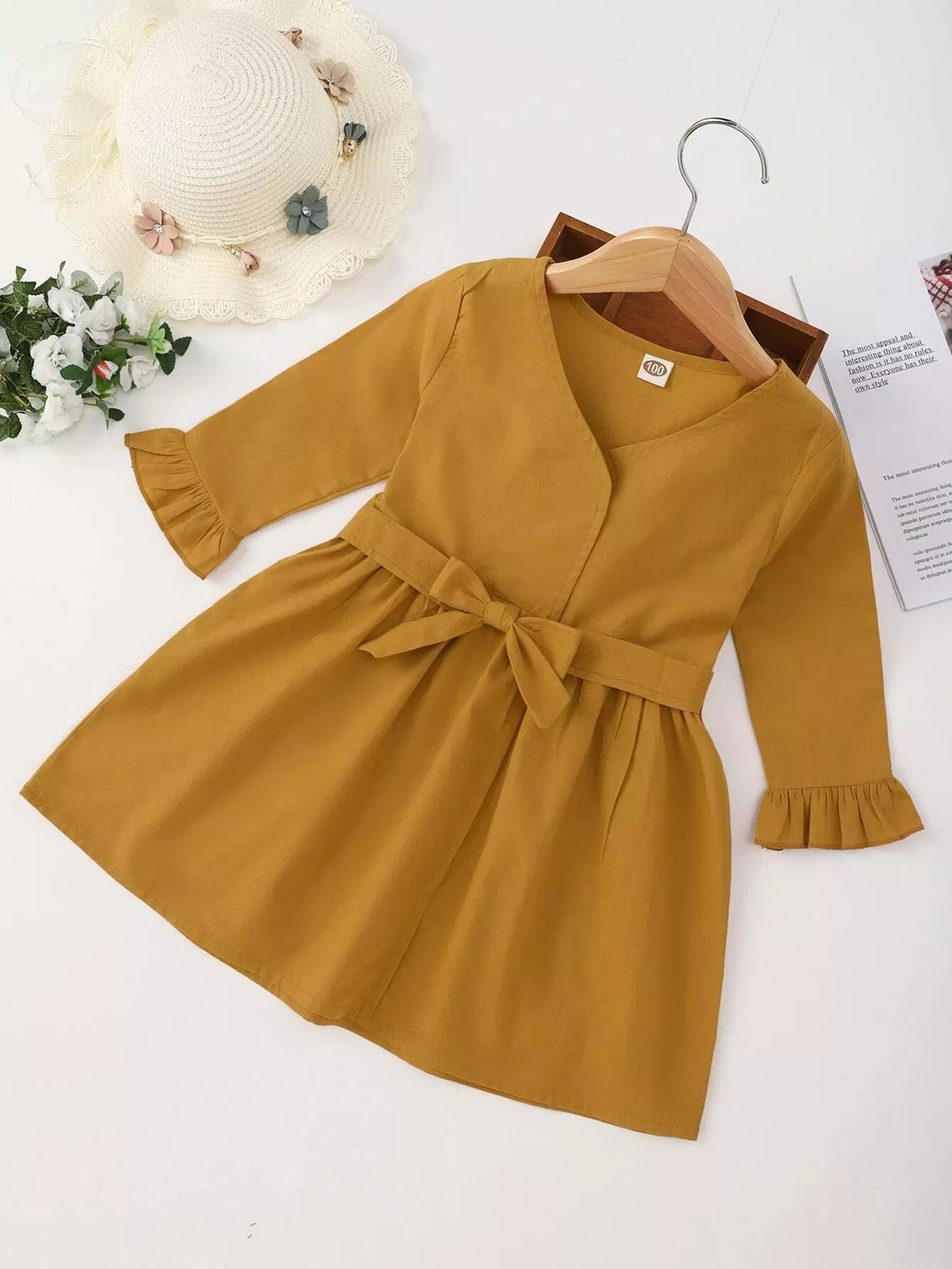 فستان بأكمام واسعة للفتيات الصغيرات بدون حزام
