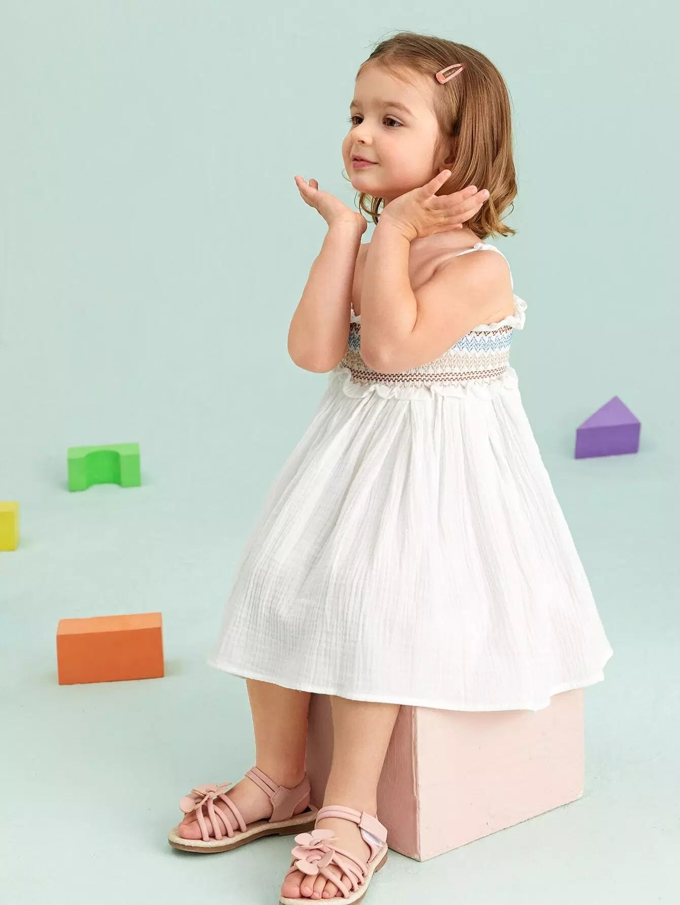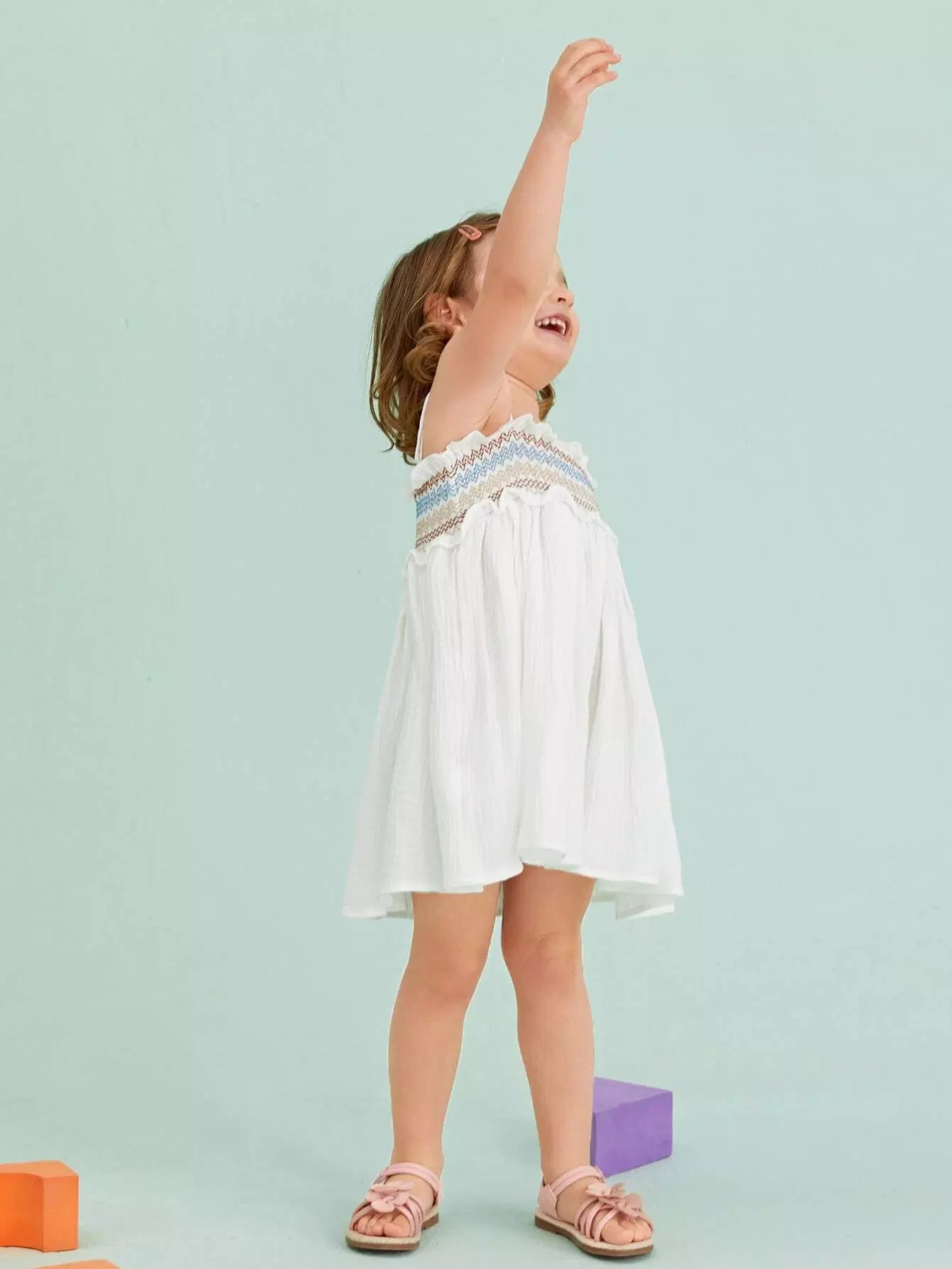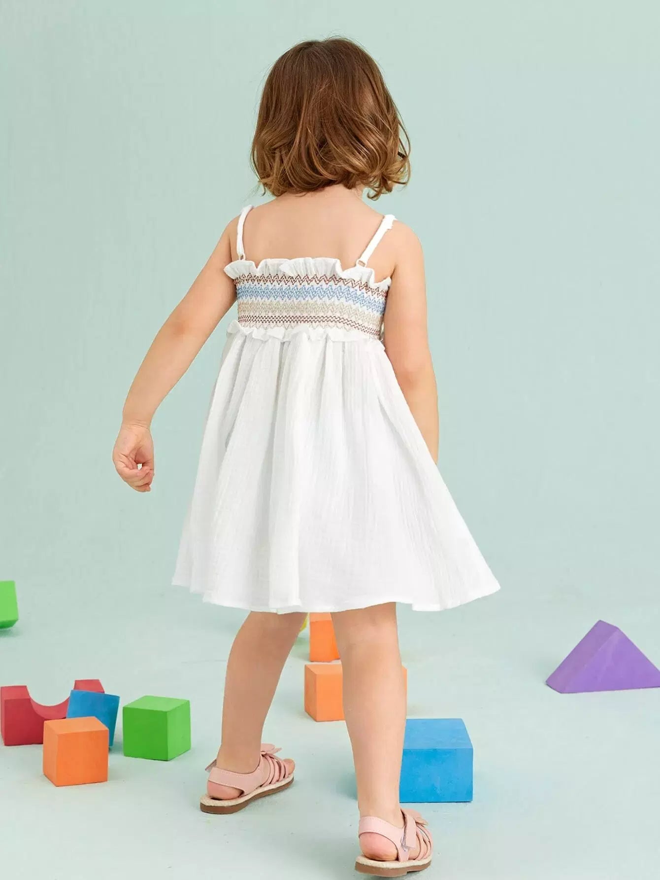 فستان كامي هندسي مزين بكشكشة للبنات الصغار