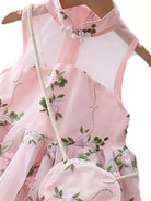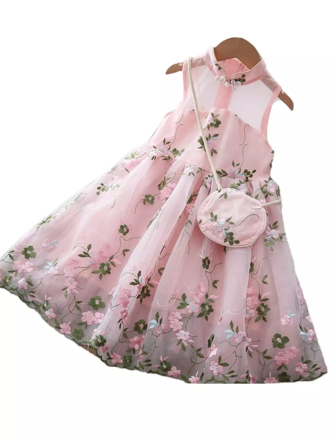 فستان شبكي بتطريز بأزرار على شكل ضفدع للبنات الصغار مع حقيبة