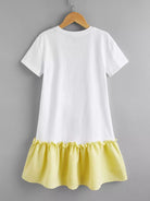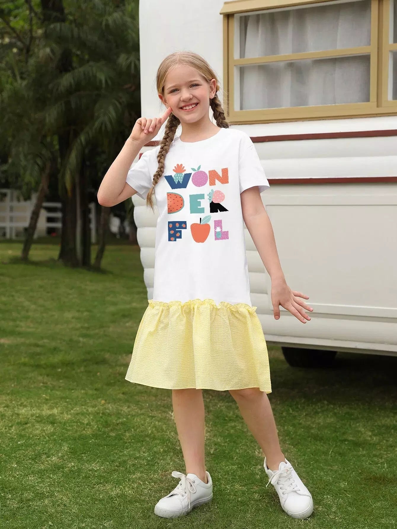 فستان فتيات صغيرات بطبعة فاكهة منقوش عليهن جورب مجزأ