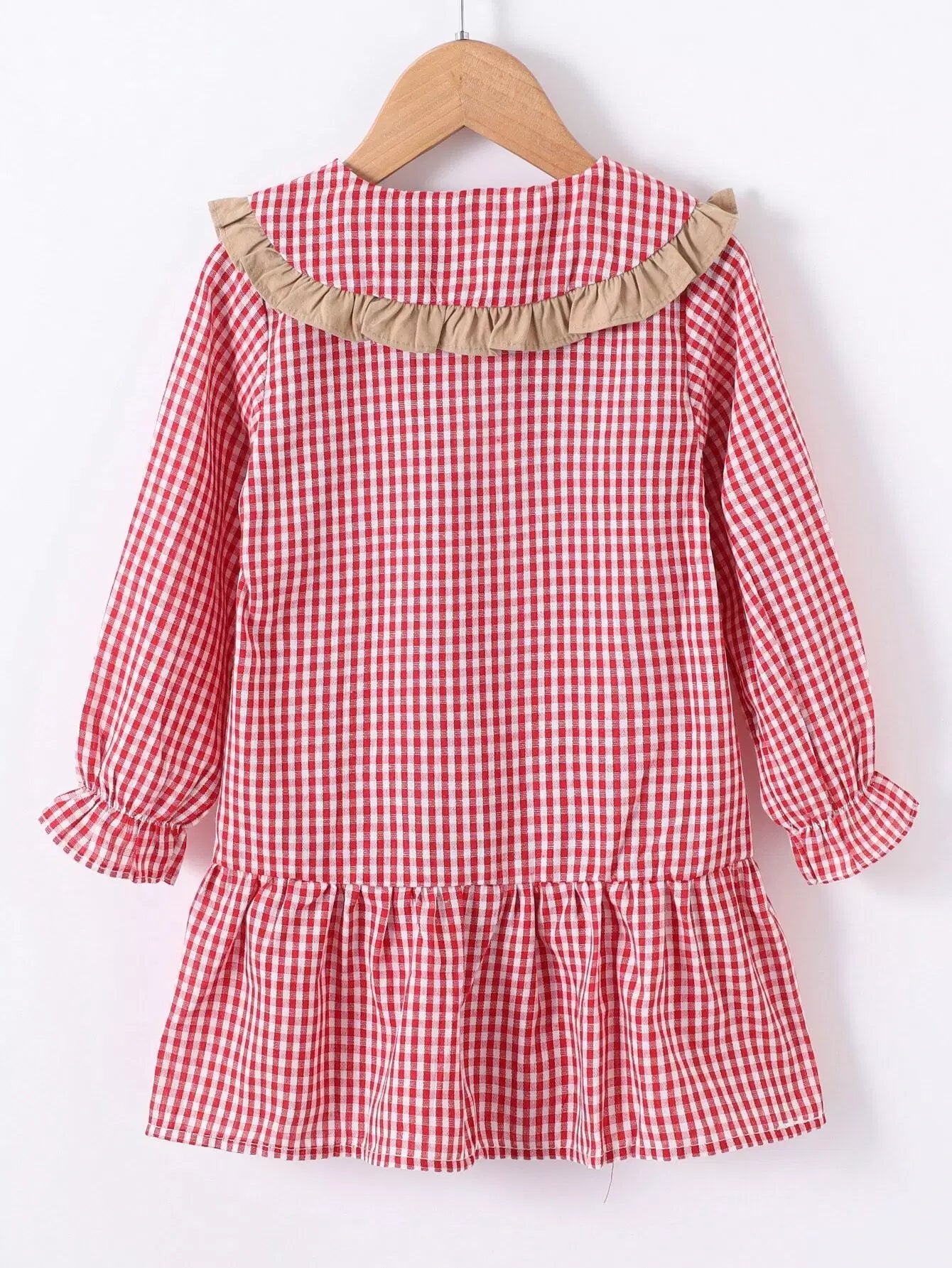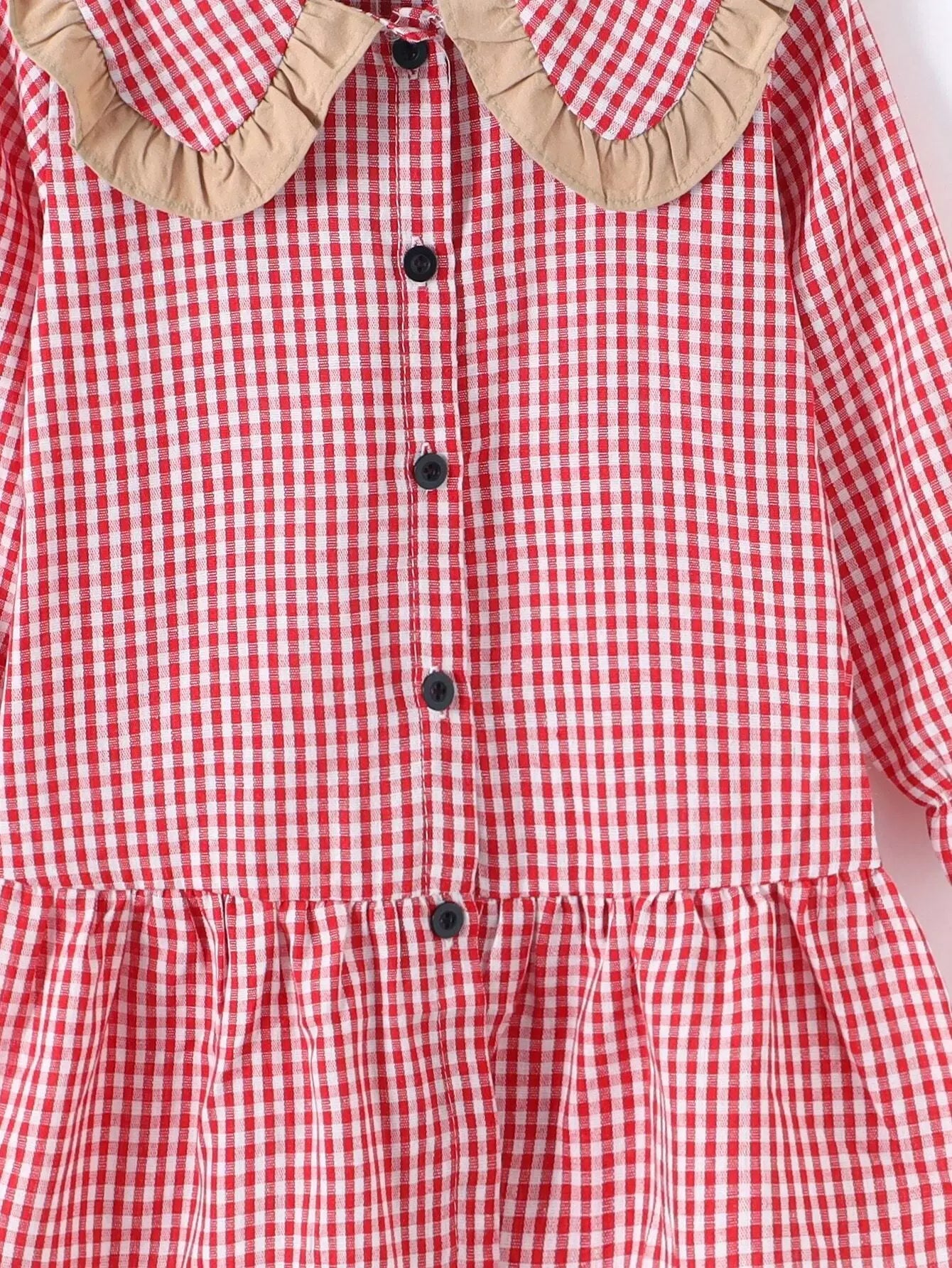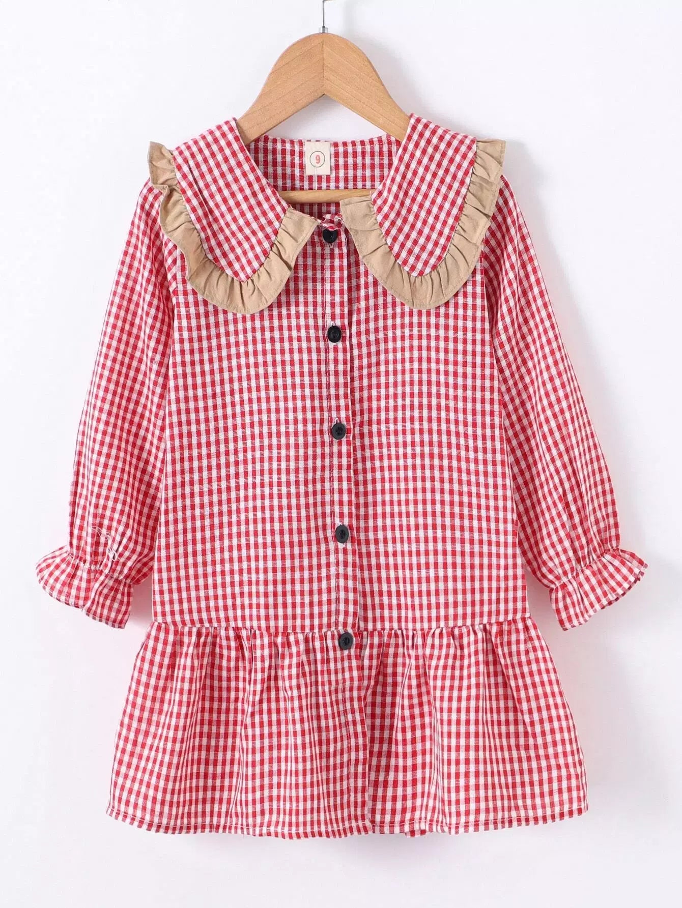 فستان بنات صغيرات بأكمام مكشكشة بأكمام مكشكشة بياقة بيتر بان