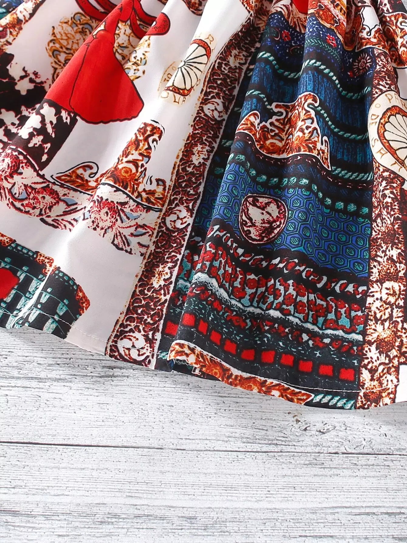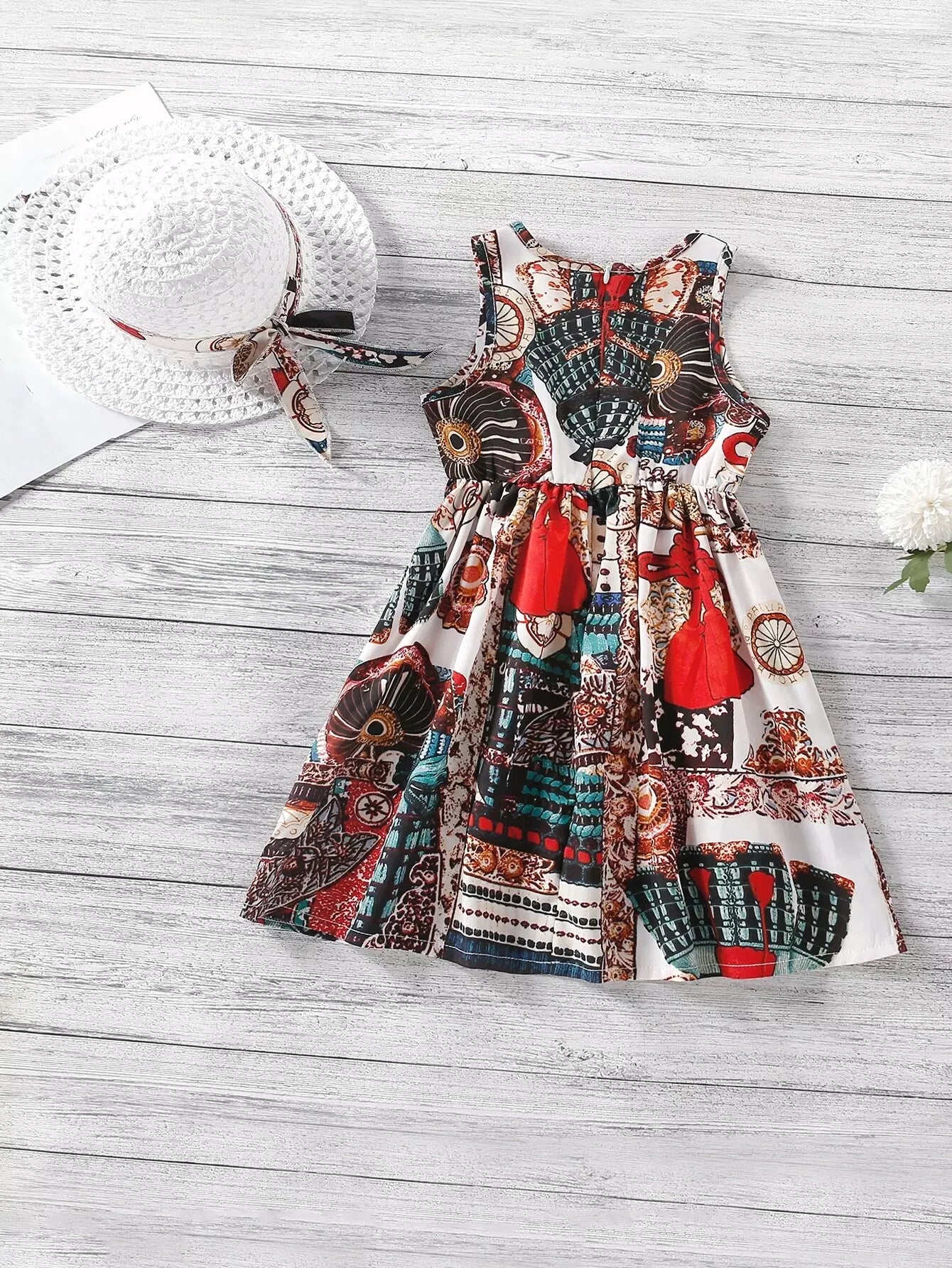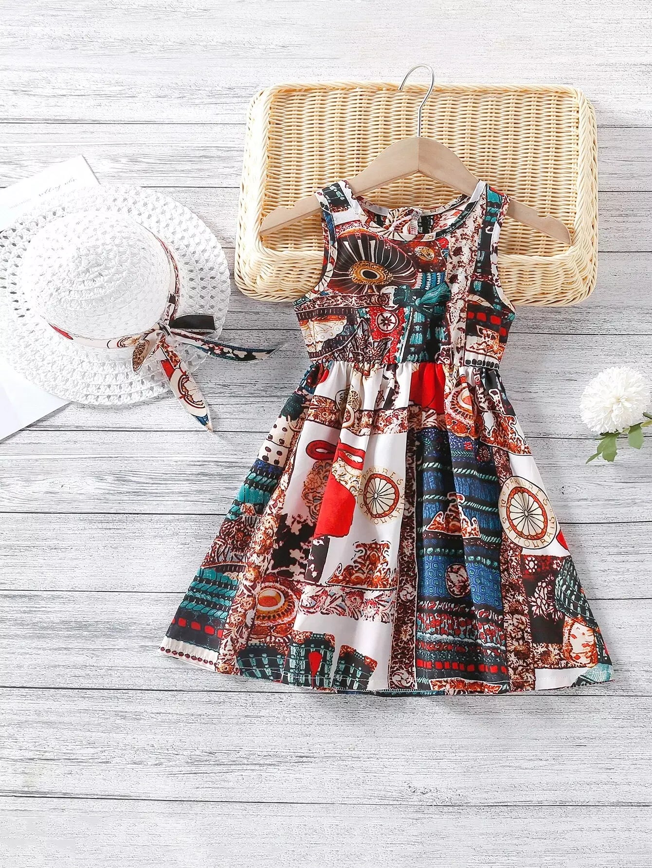 فستان بناتي صغيرات بطبعة جرافيك على شكل حرف A