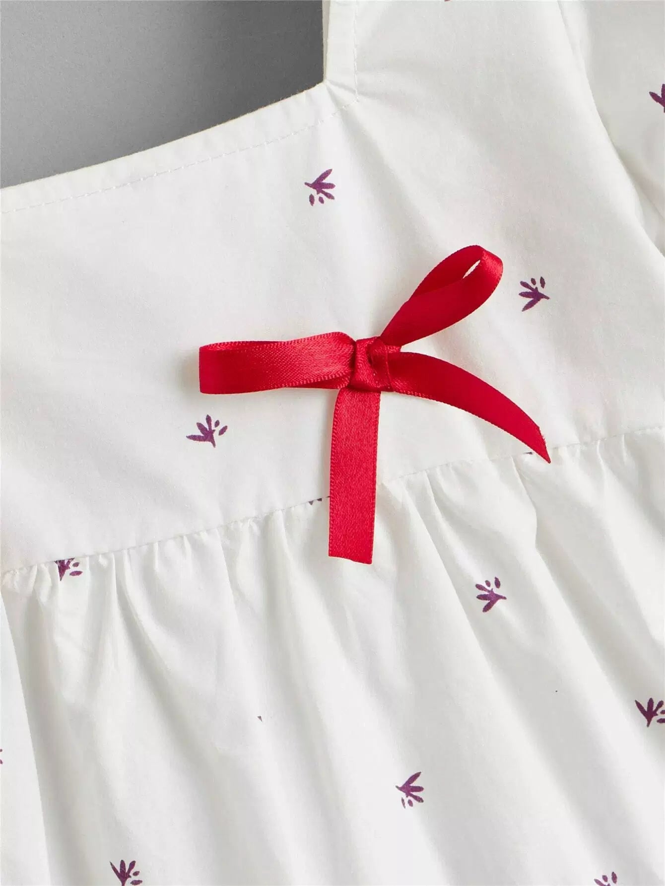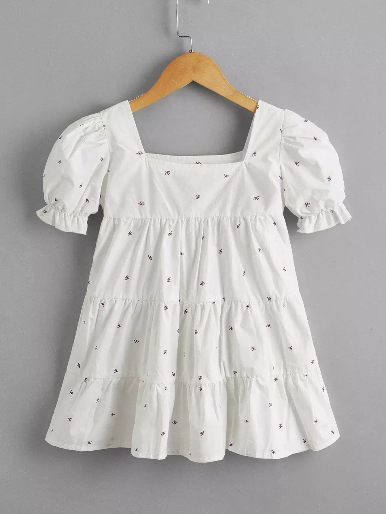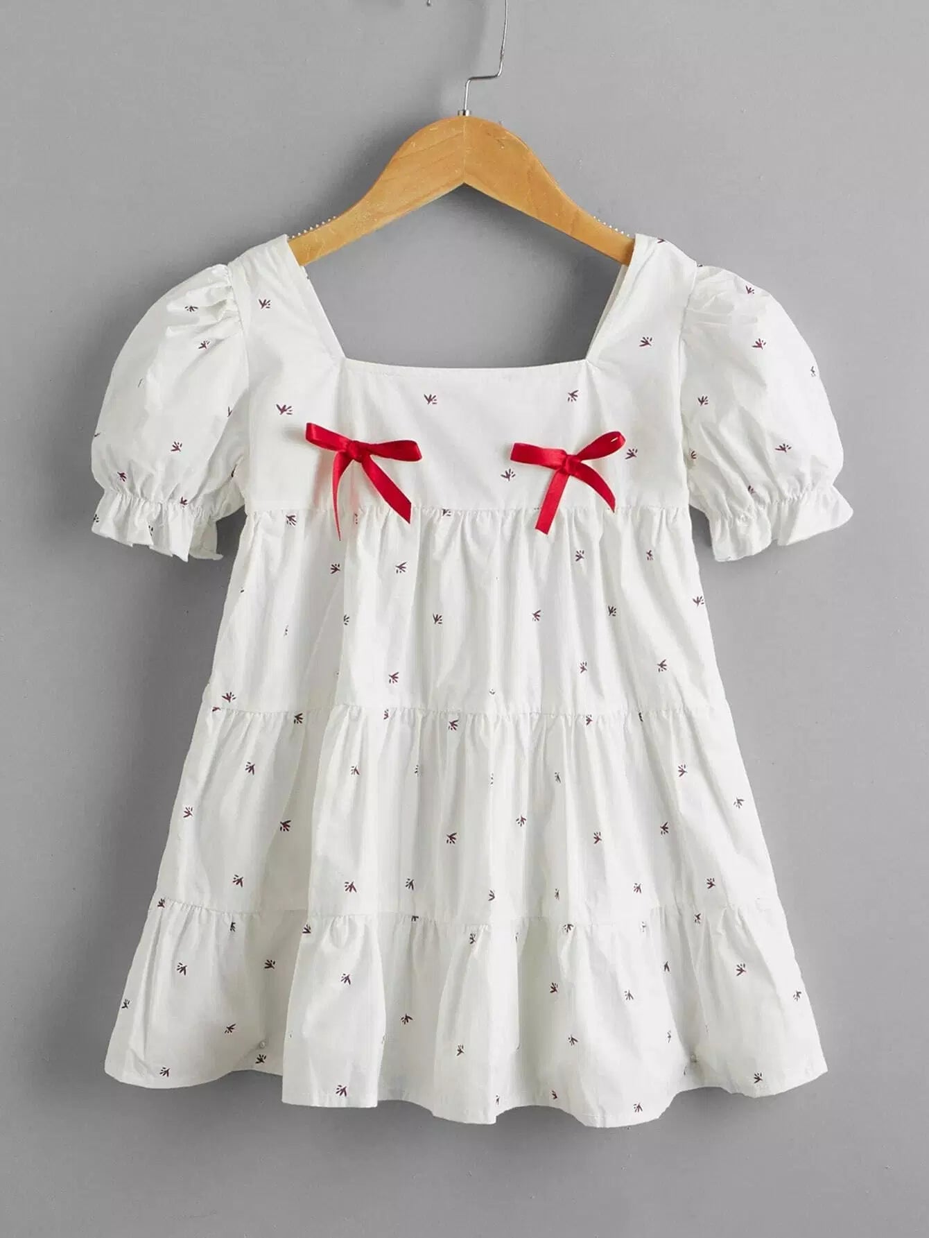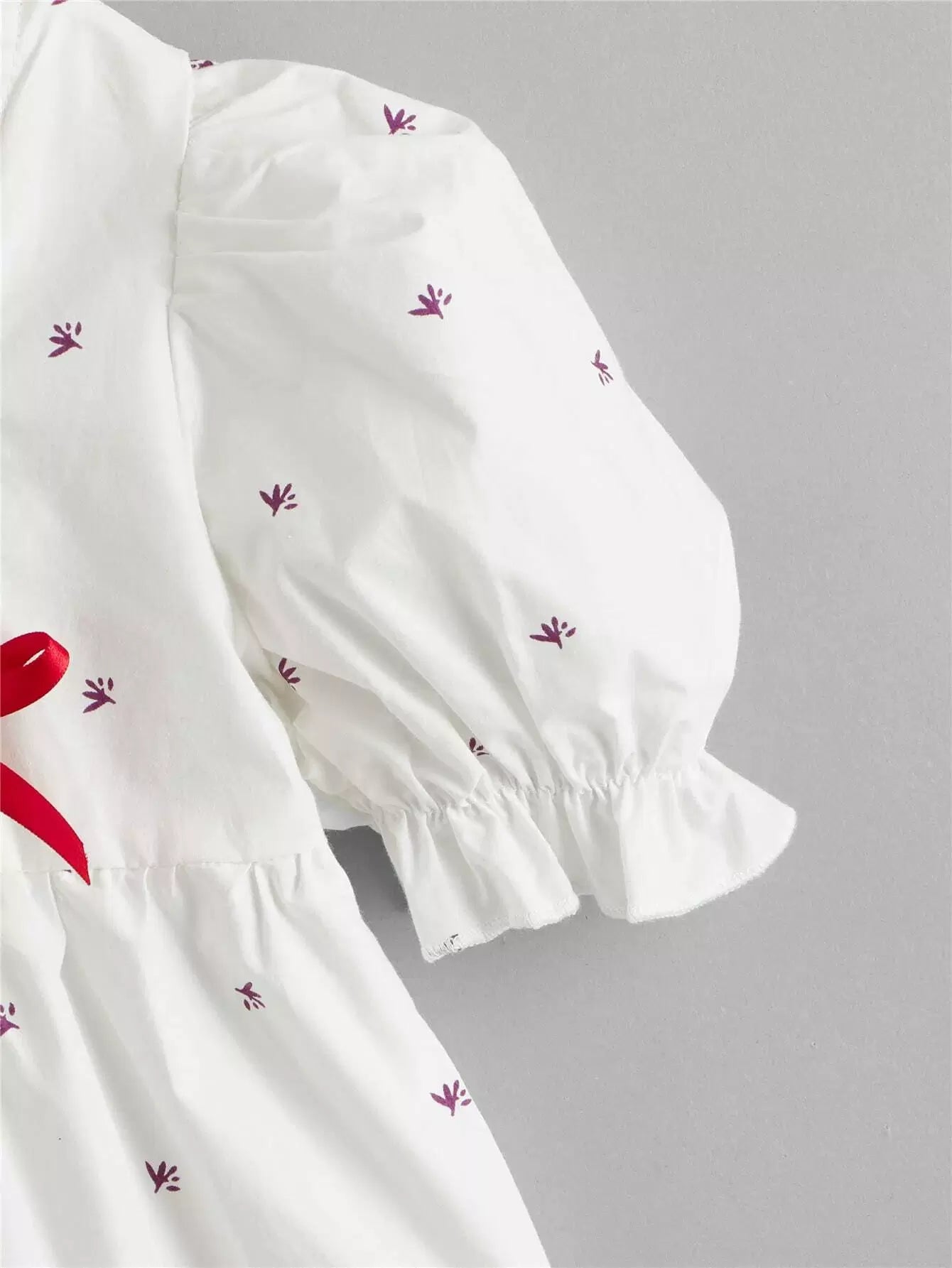 فستان بنات صغيرات بأكمام منفوشة بطبعة جرافيك بأكمام منفوشة