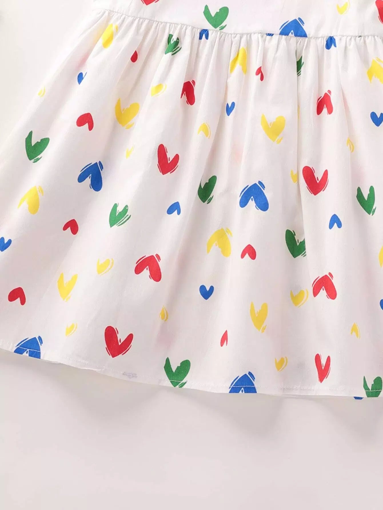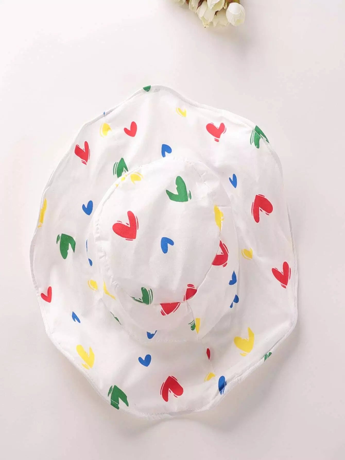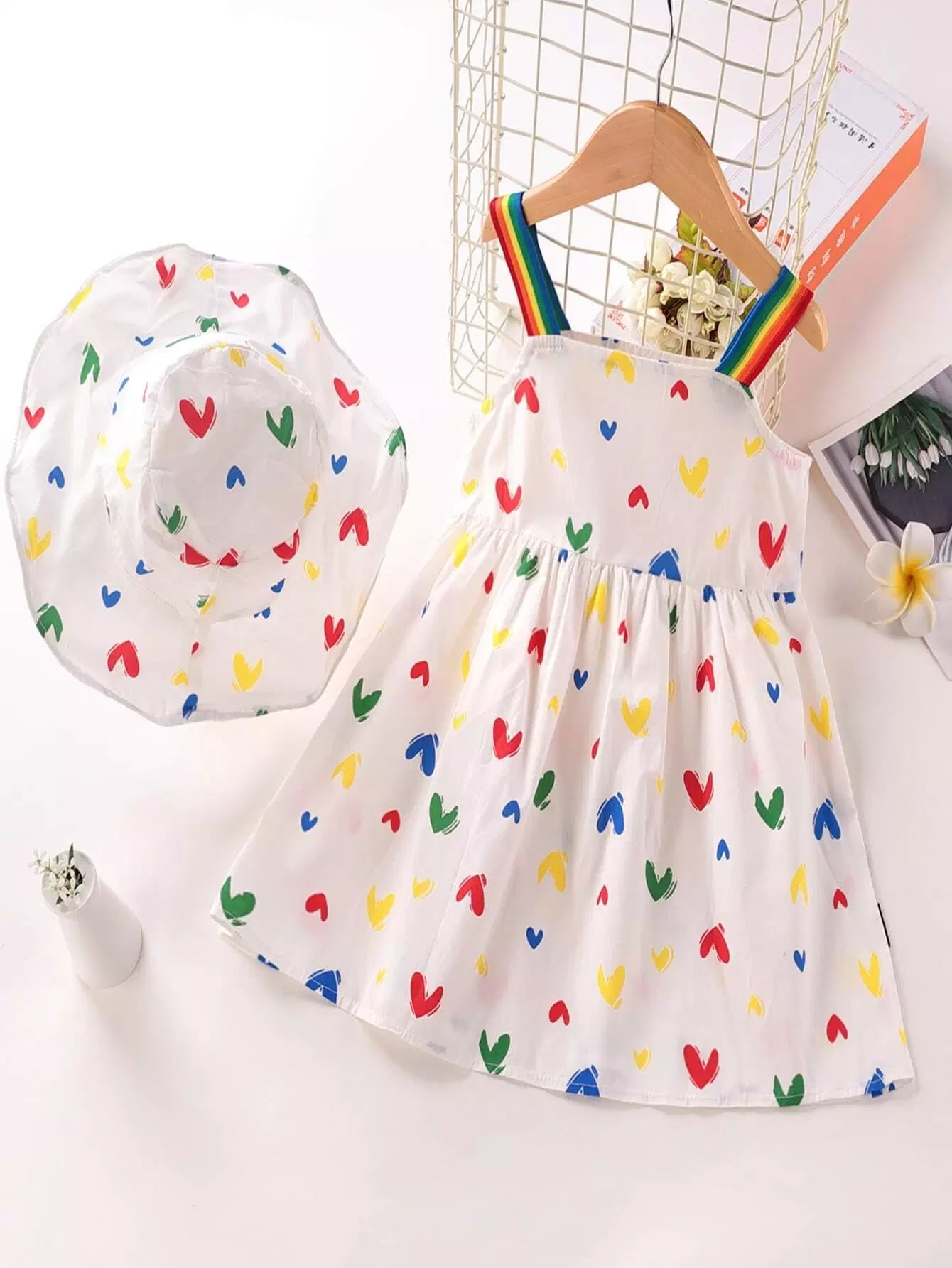 فستان وقبعة كامي مخطط على شكل قلب وقوس قزح للبنات الصغار