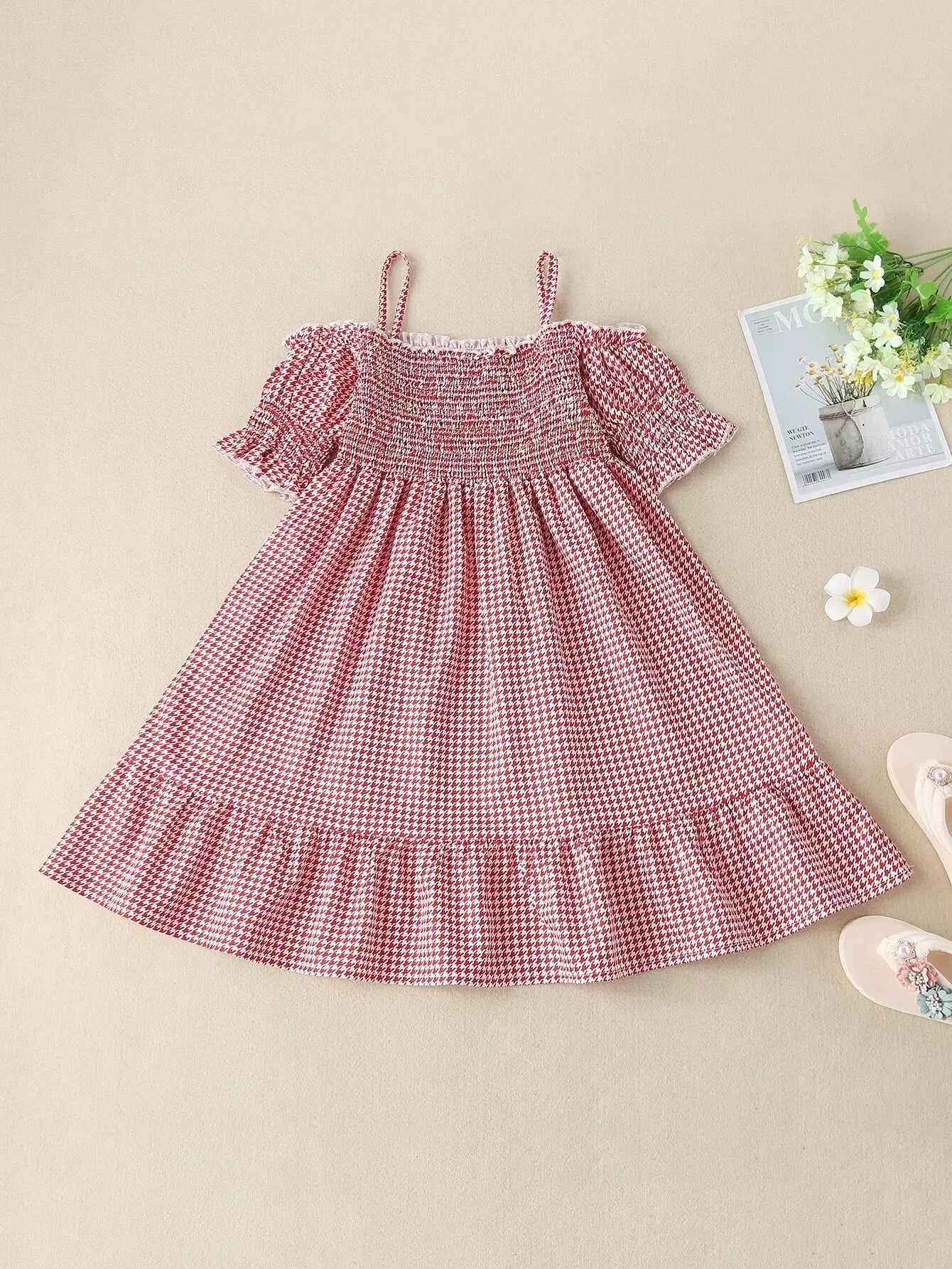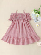 فستان بناتي صغيرات ذو أكتاف باردة مقلّمة بقصّة الكتف الباردة