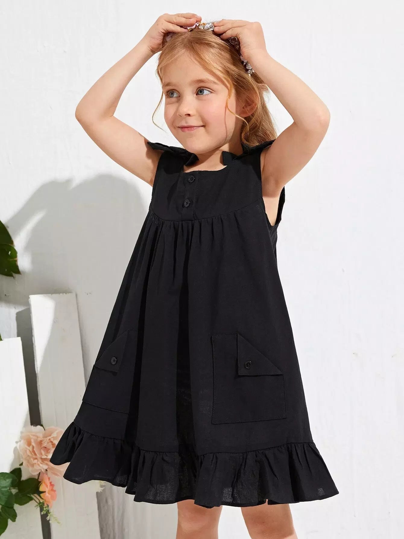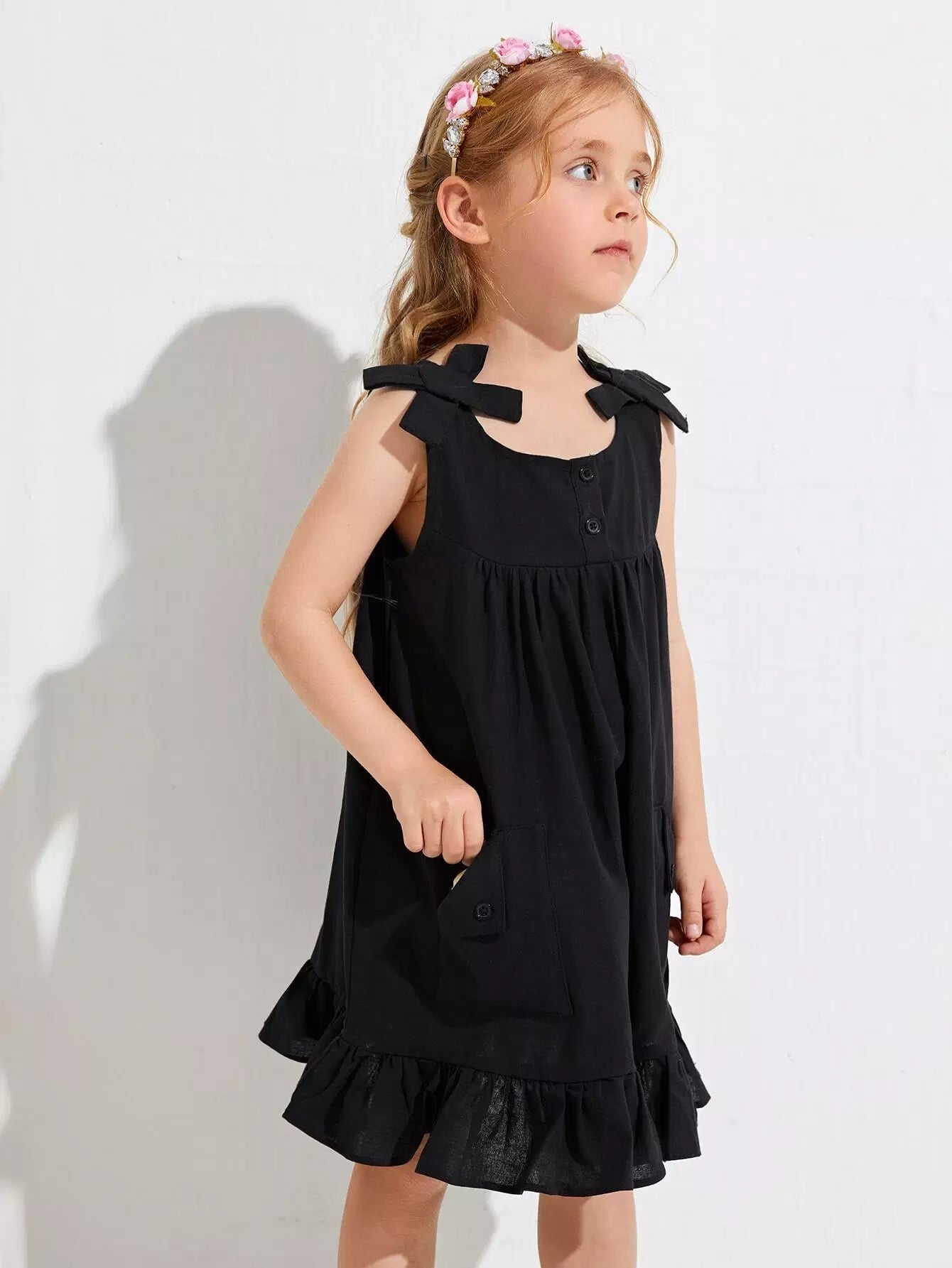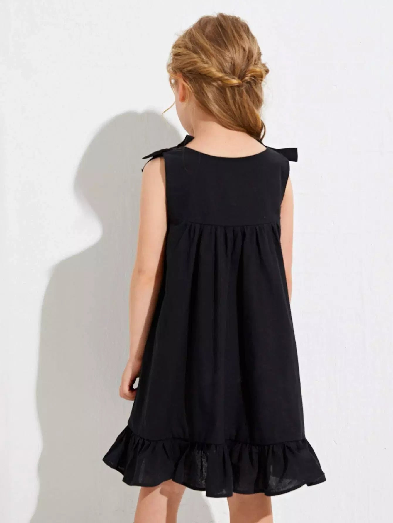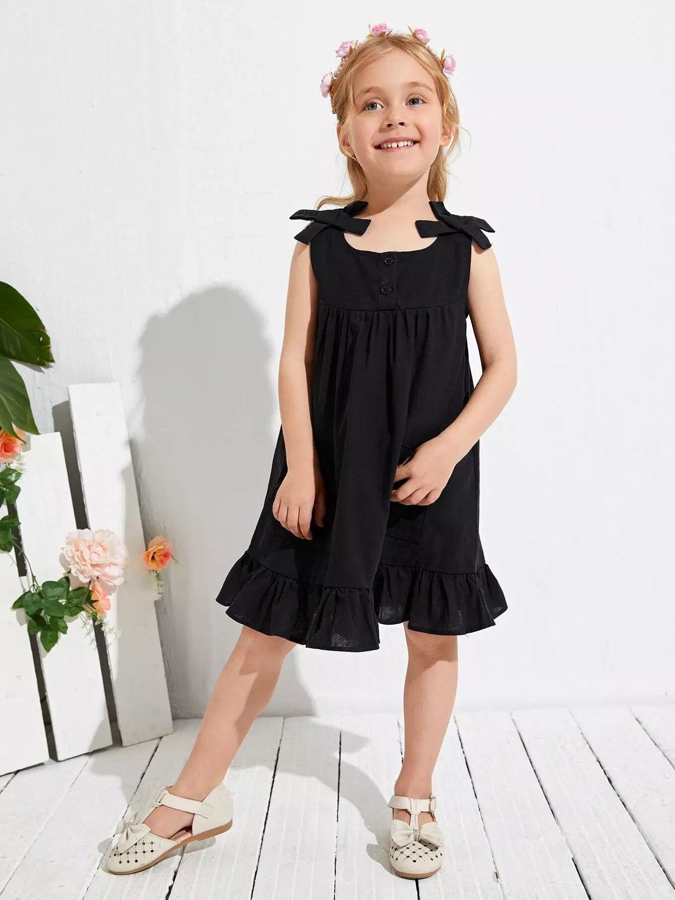 فستان بناتي صغير معقود على الكتف وحاشية مكشكشة
