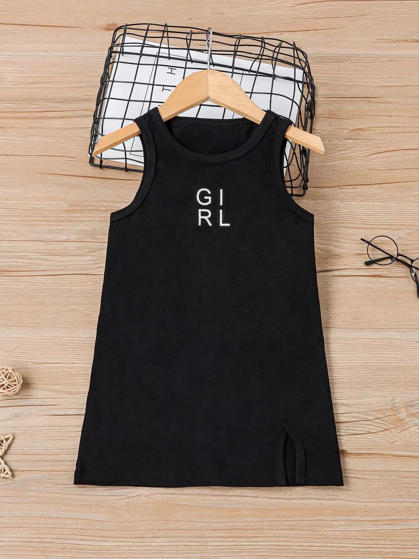 فستان بدون أكمام بناتي صغيرات برسومات على شكل حرف البنات