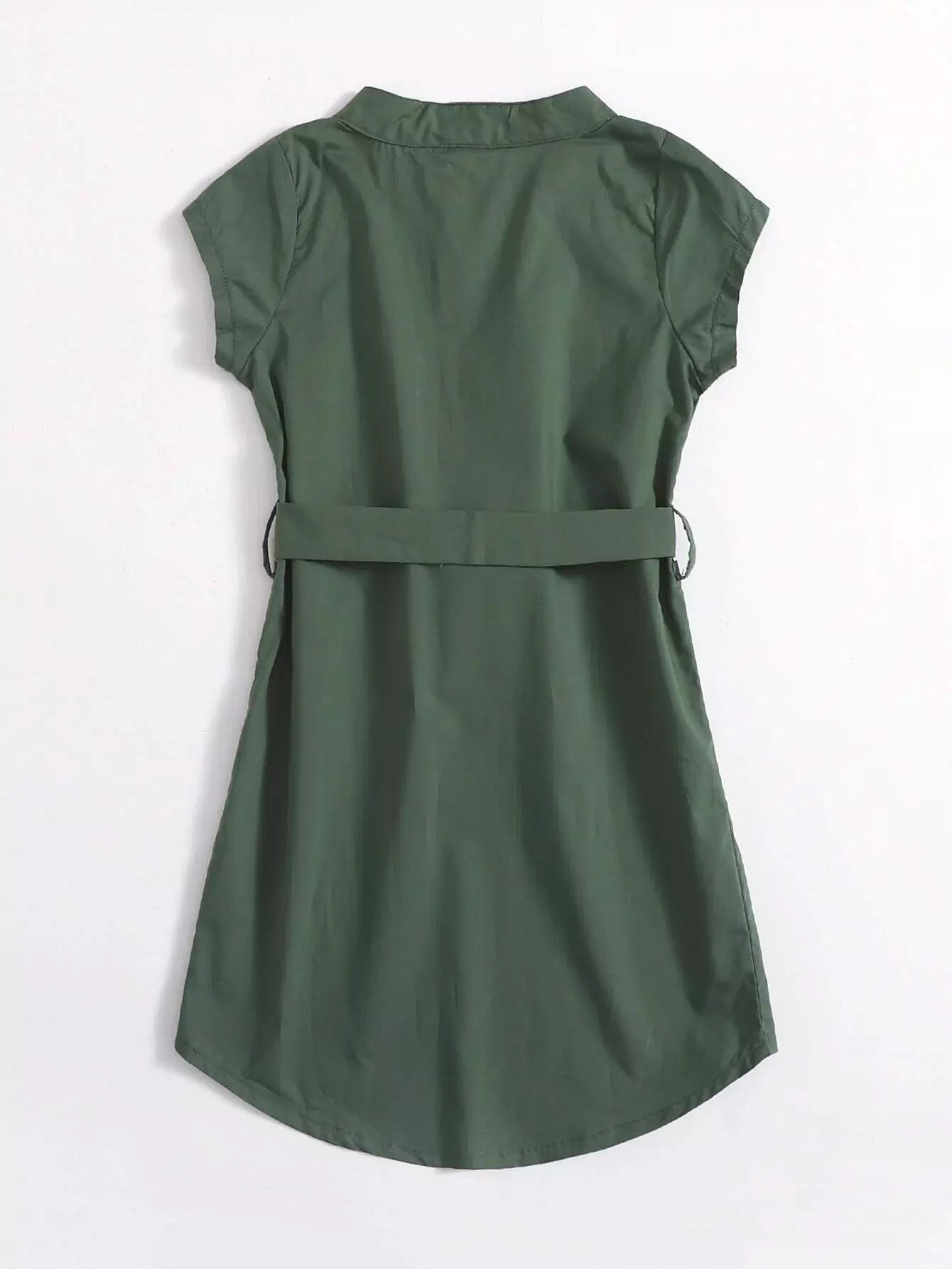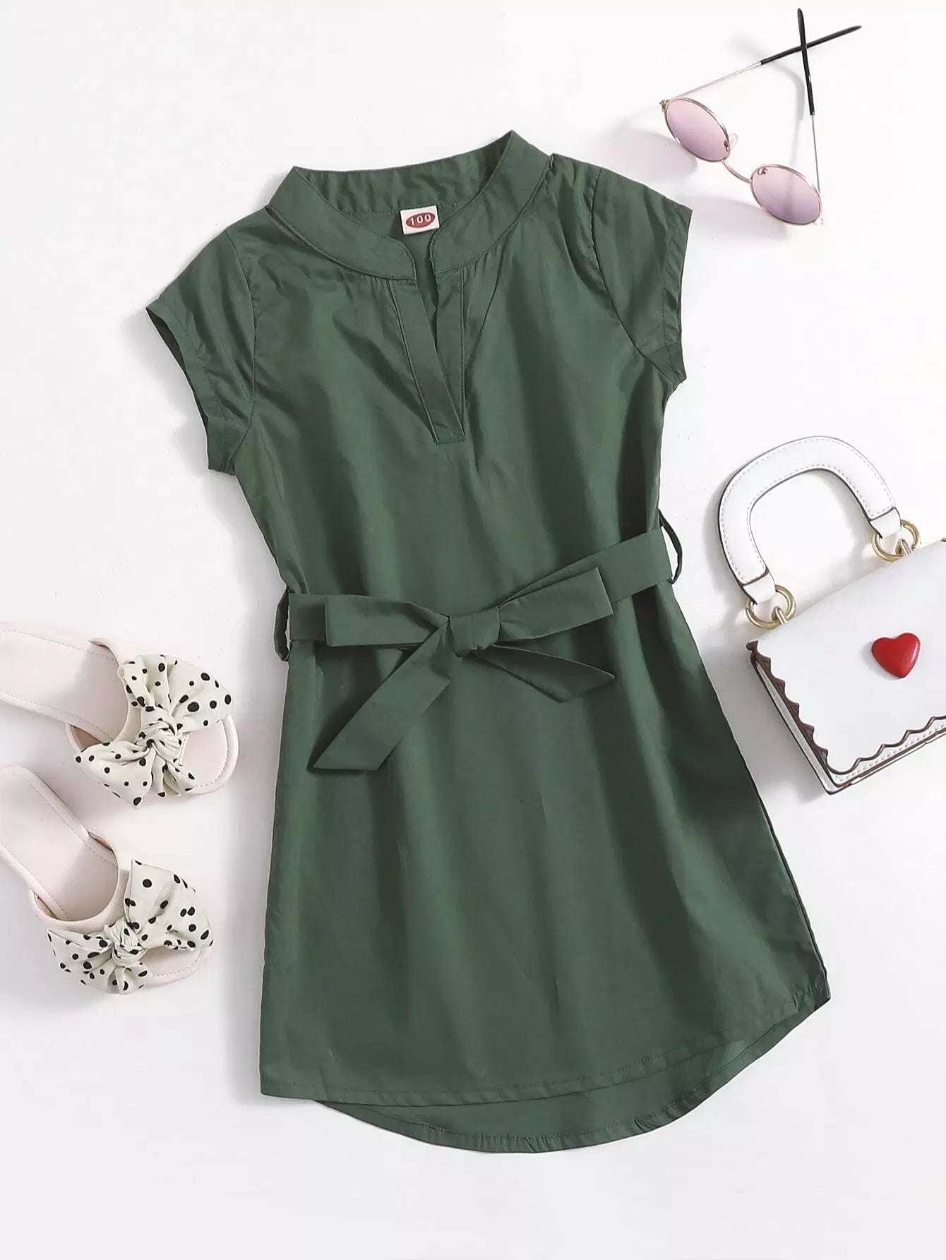 فستان للفتيات الصغيرات برقبة عالية ومنخفضة بدون حزام