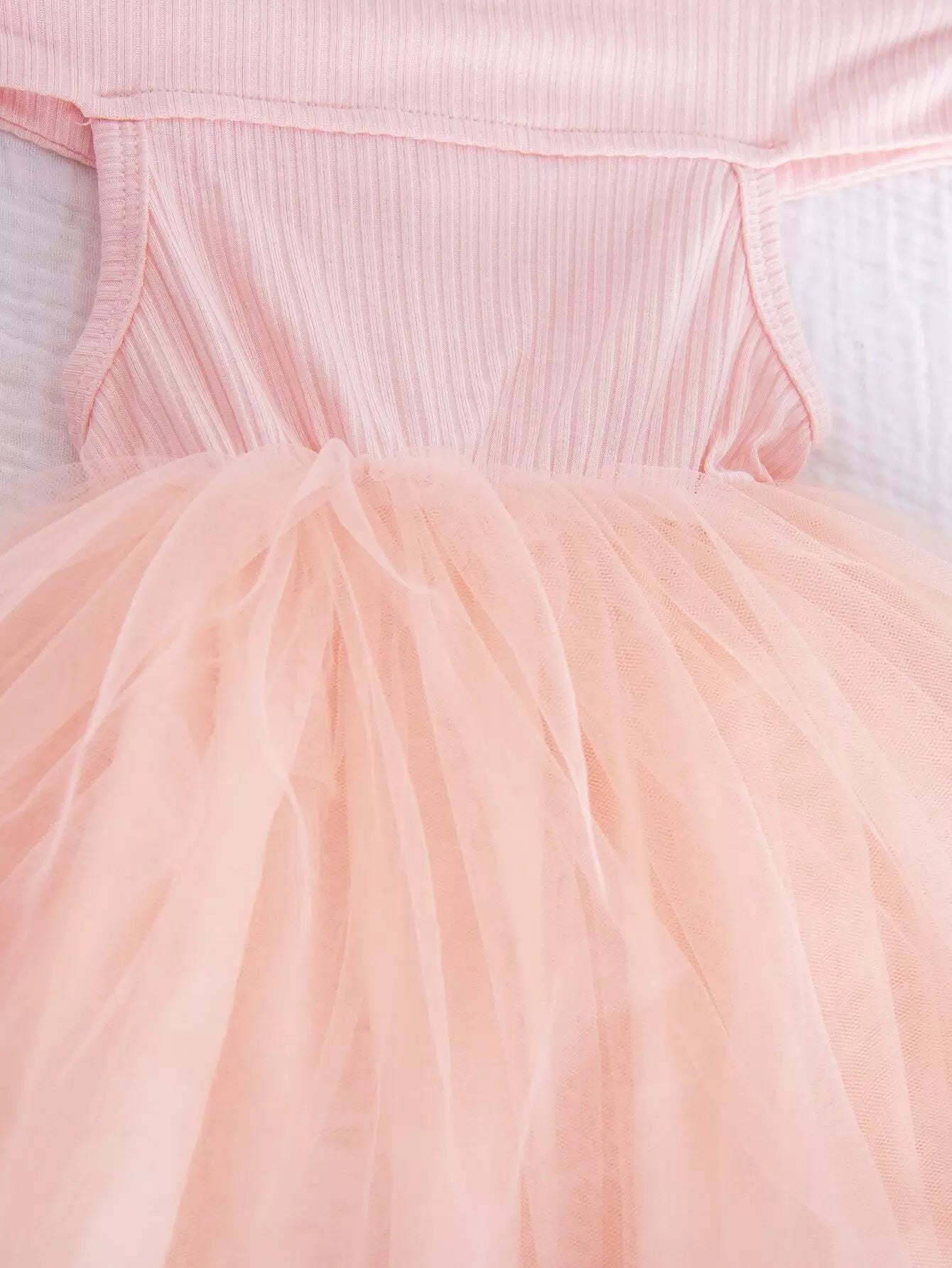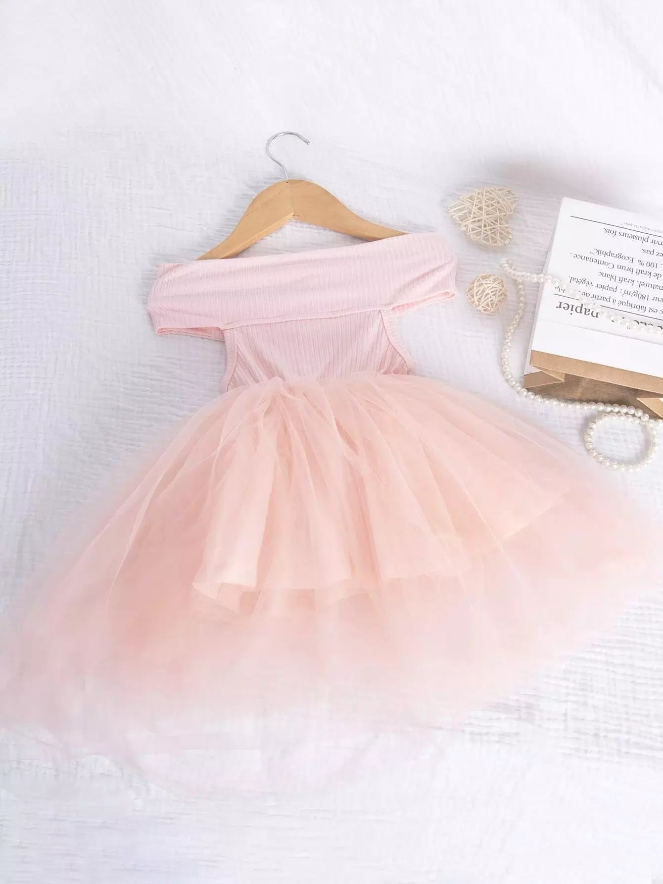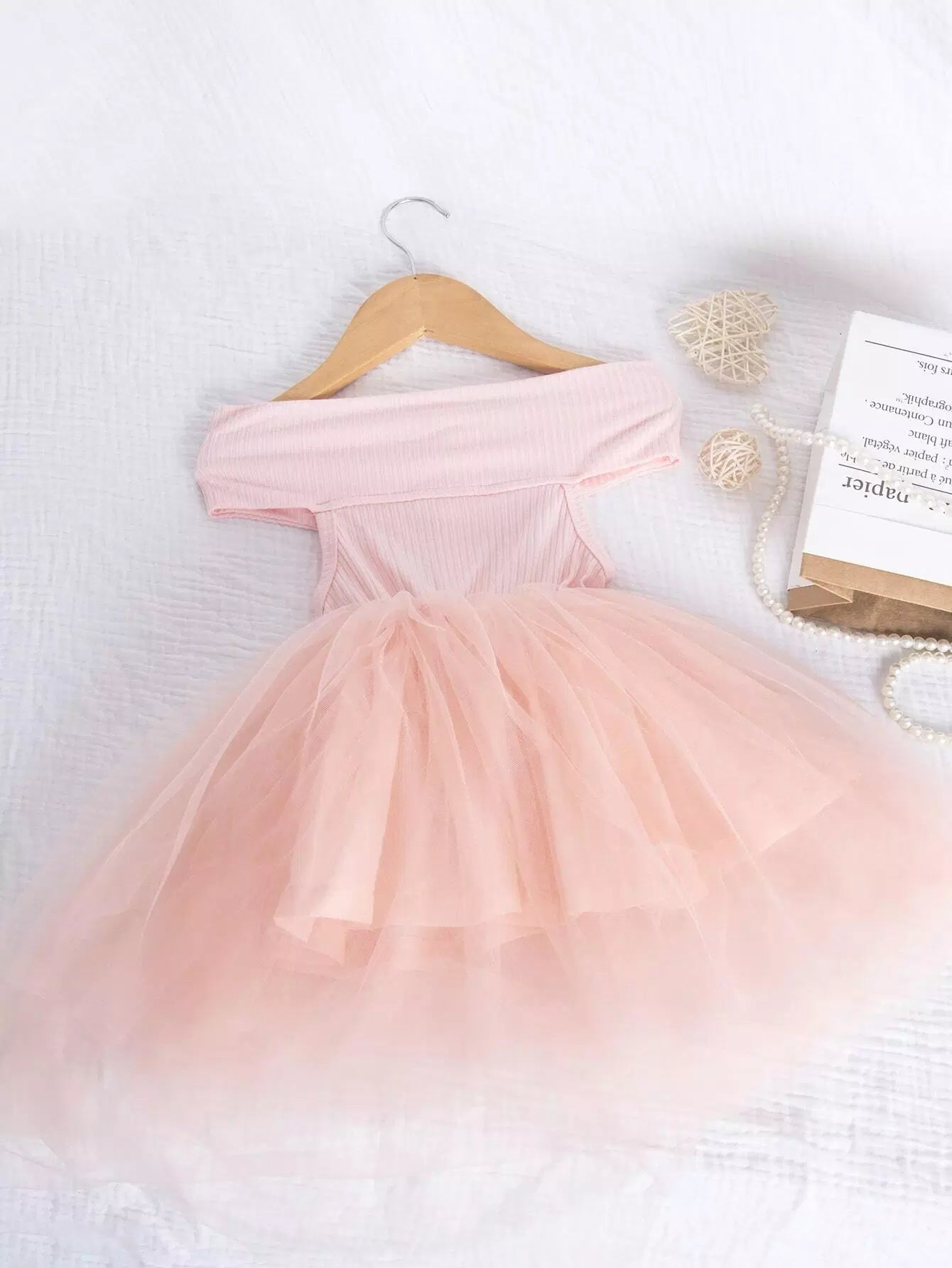 فستان فتيات صغيرات عاري الأكتاف من قماش شبكي