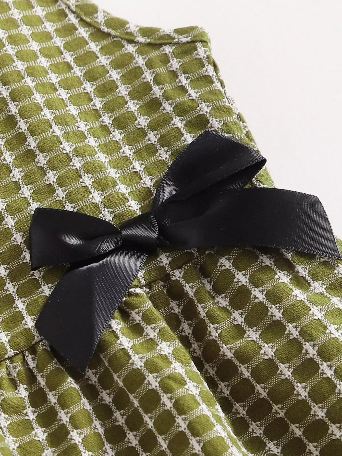 فستان بناتي صغيرات منقوش بطبعة منقوشة بعقدة من الأمام