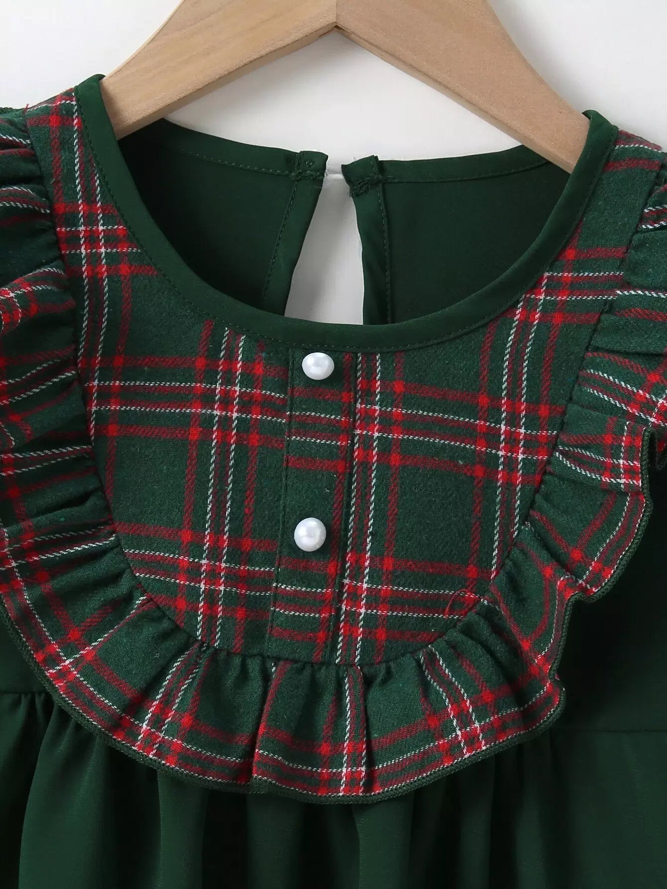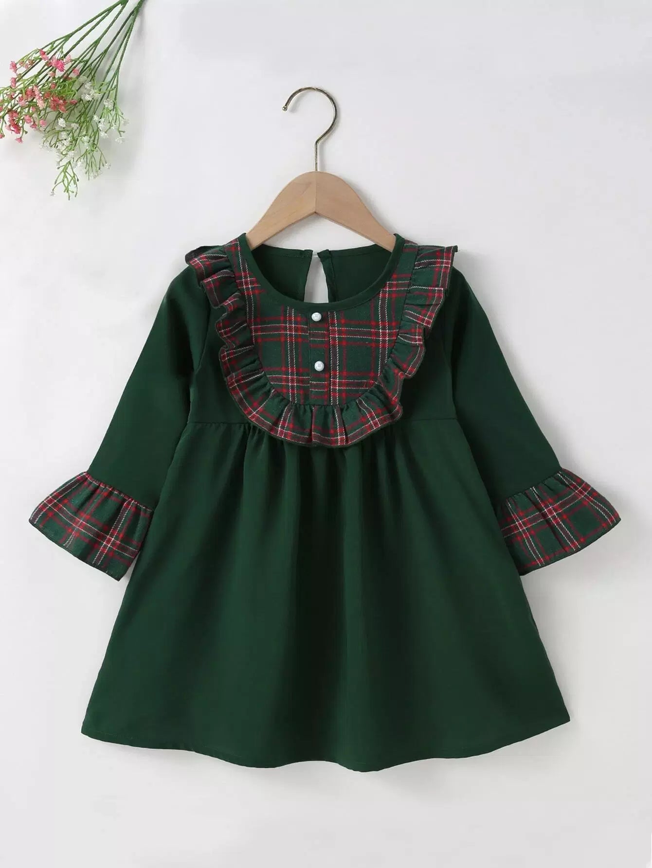 فستان بنات صغيرات منقوش بكشكش بحواف مكشكشة فستان أطفال صغيرات