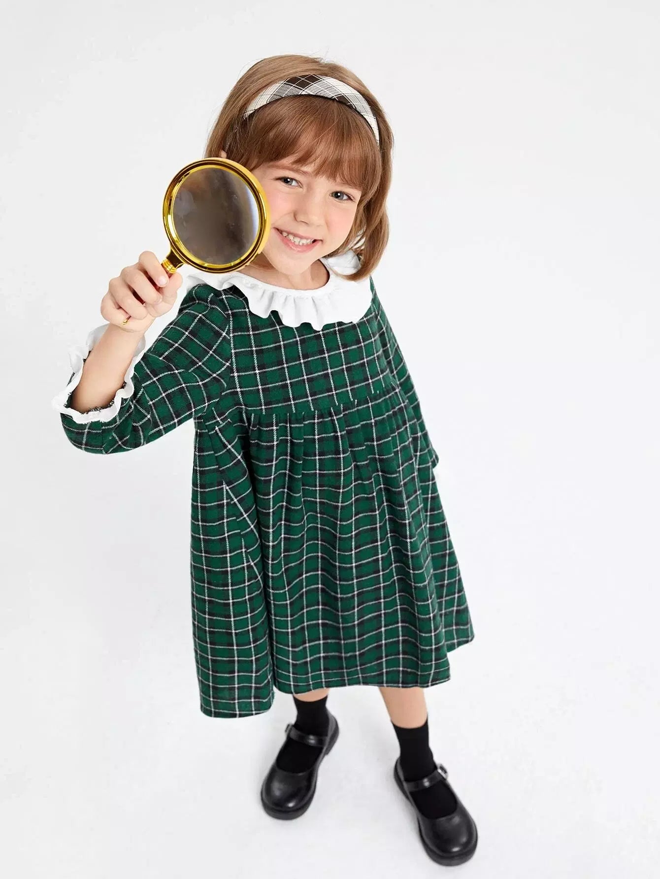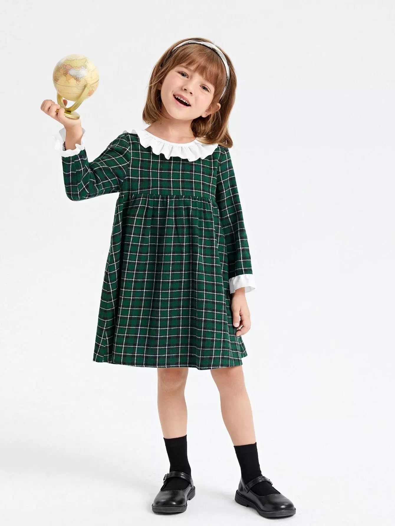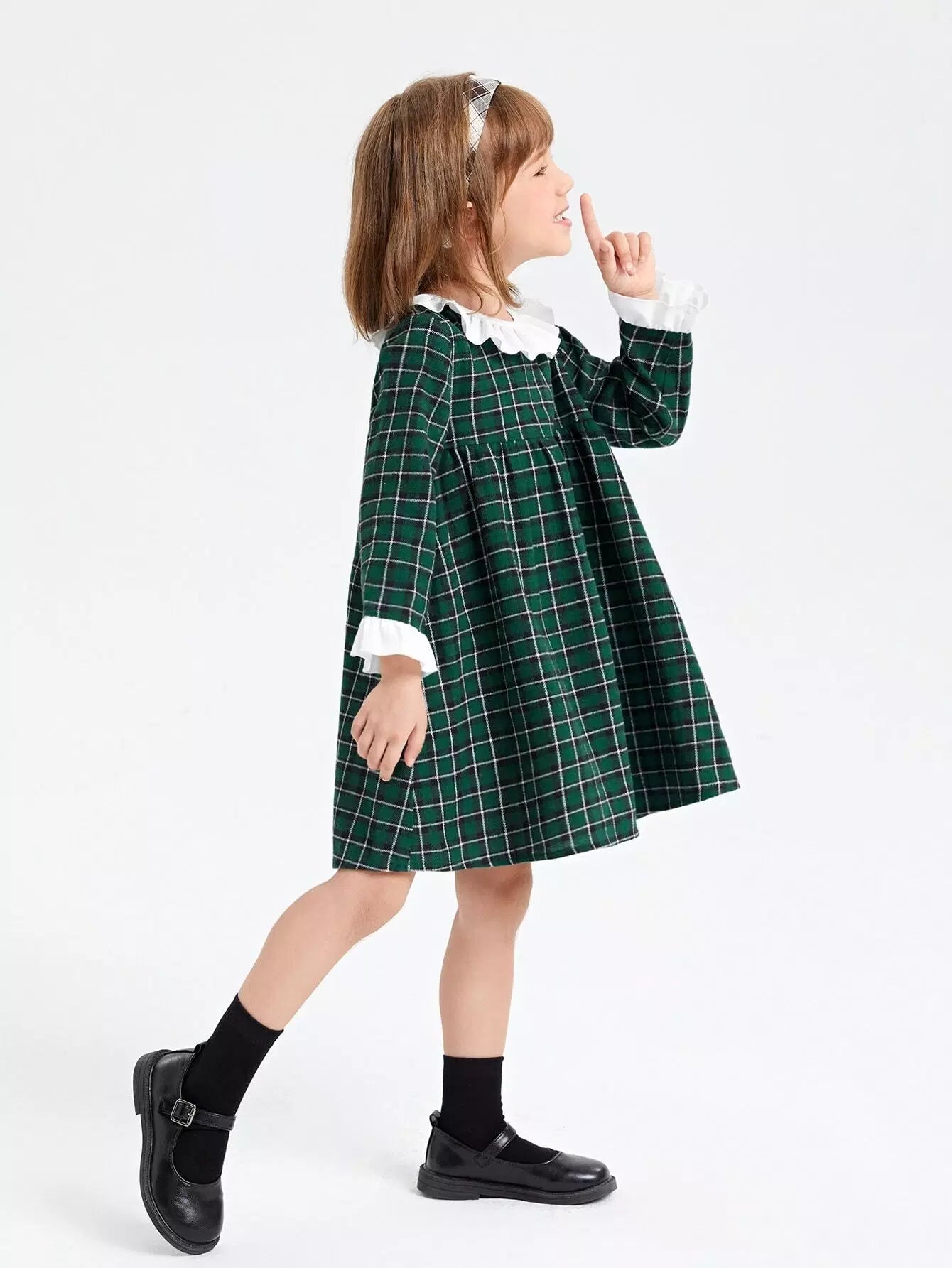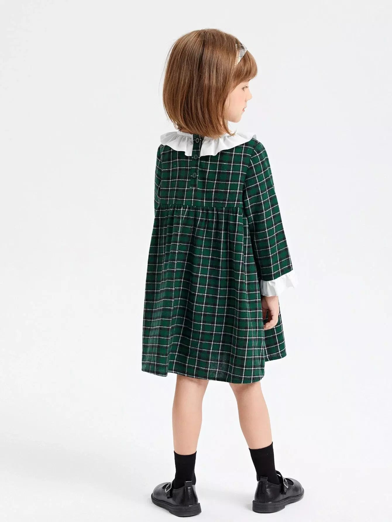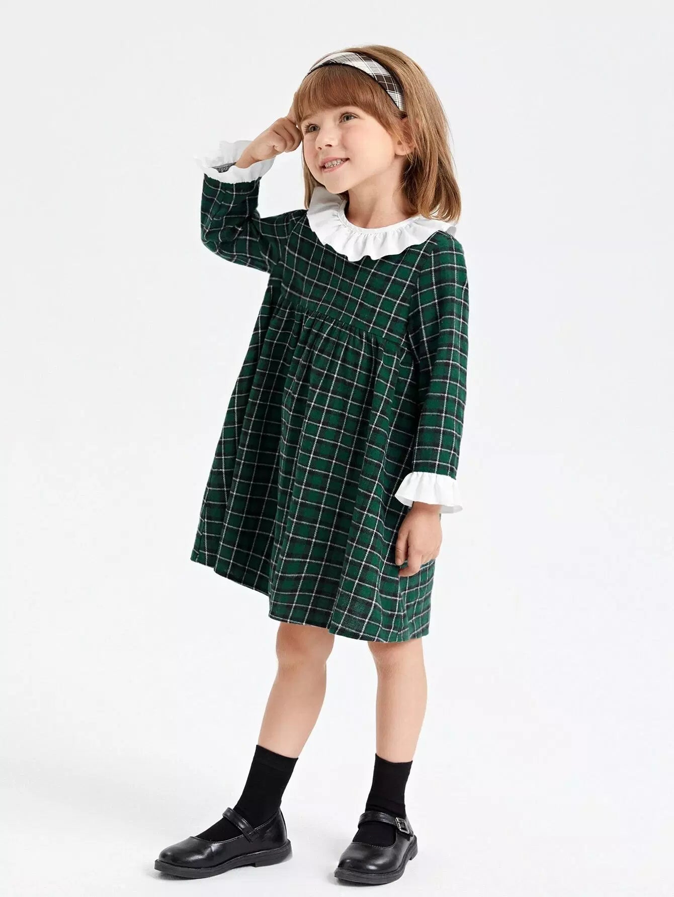 فستان بنات صغيرات منقوش بحواف مكشكشة منقوشة سموك