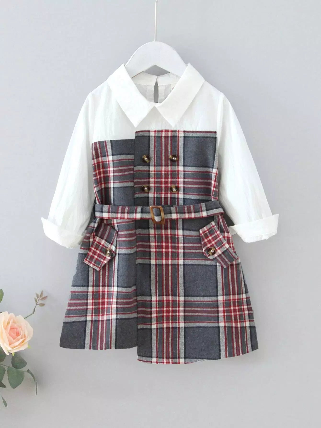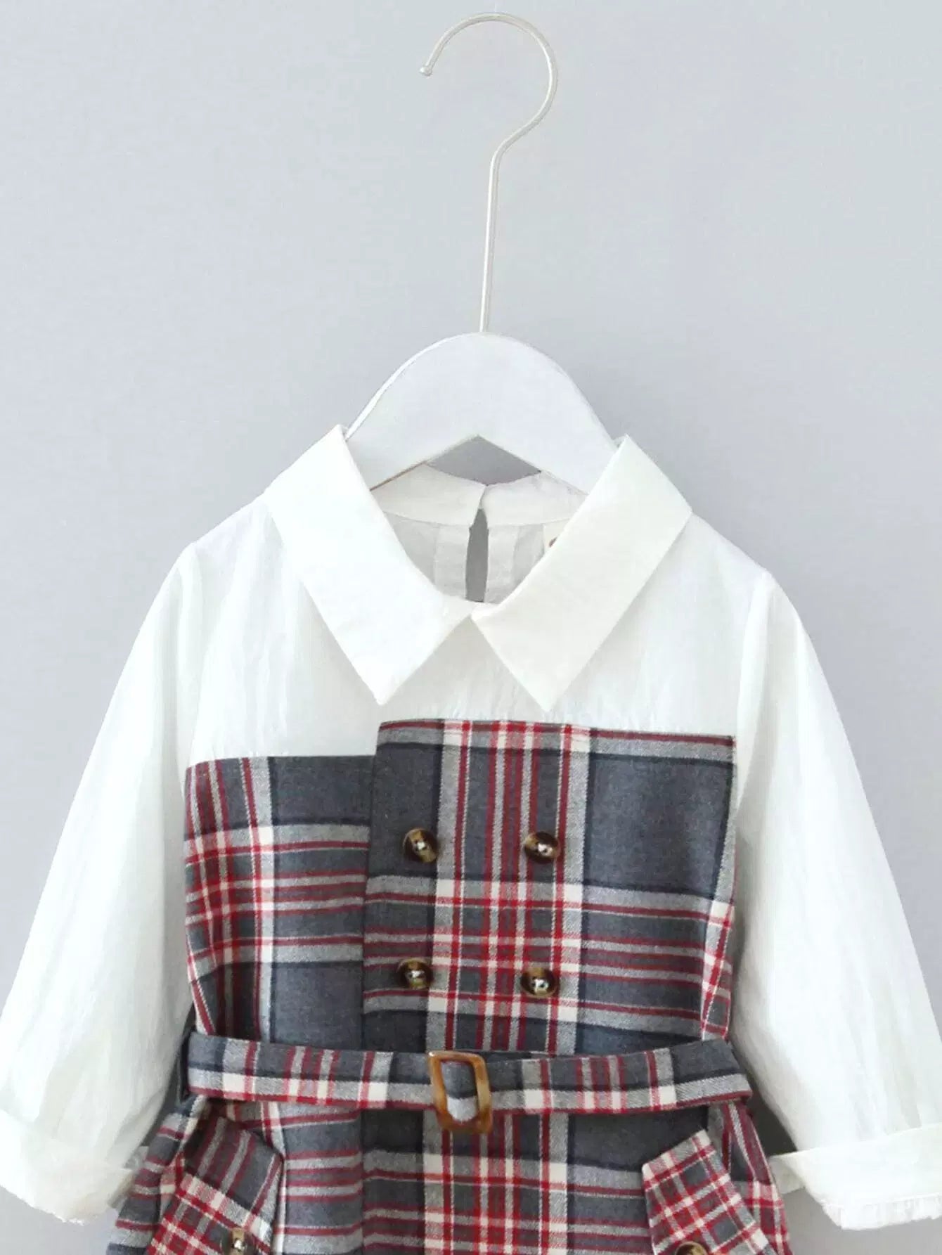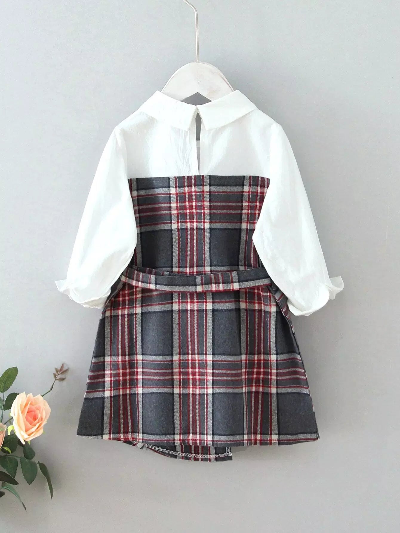 فستان بنات صغيرات منقوش منقوش بقميص منقوش