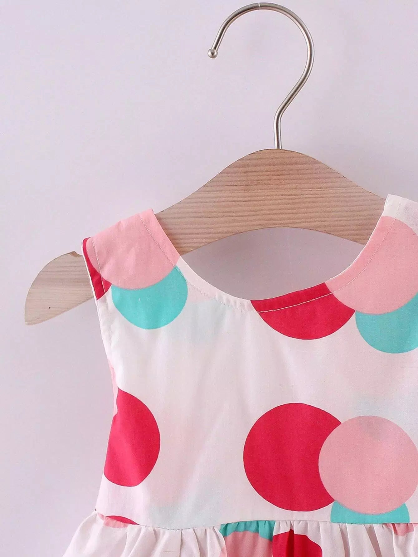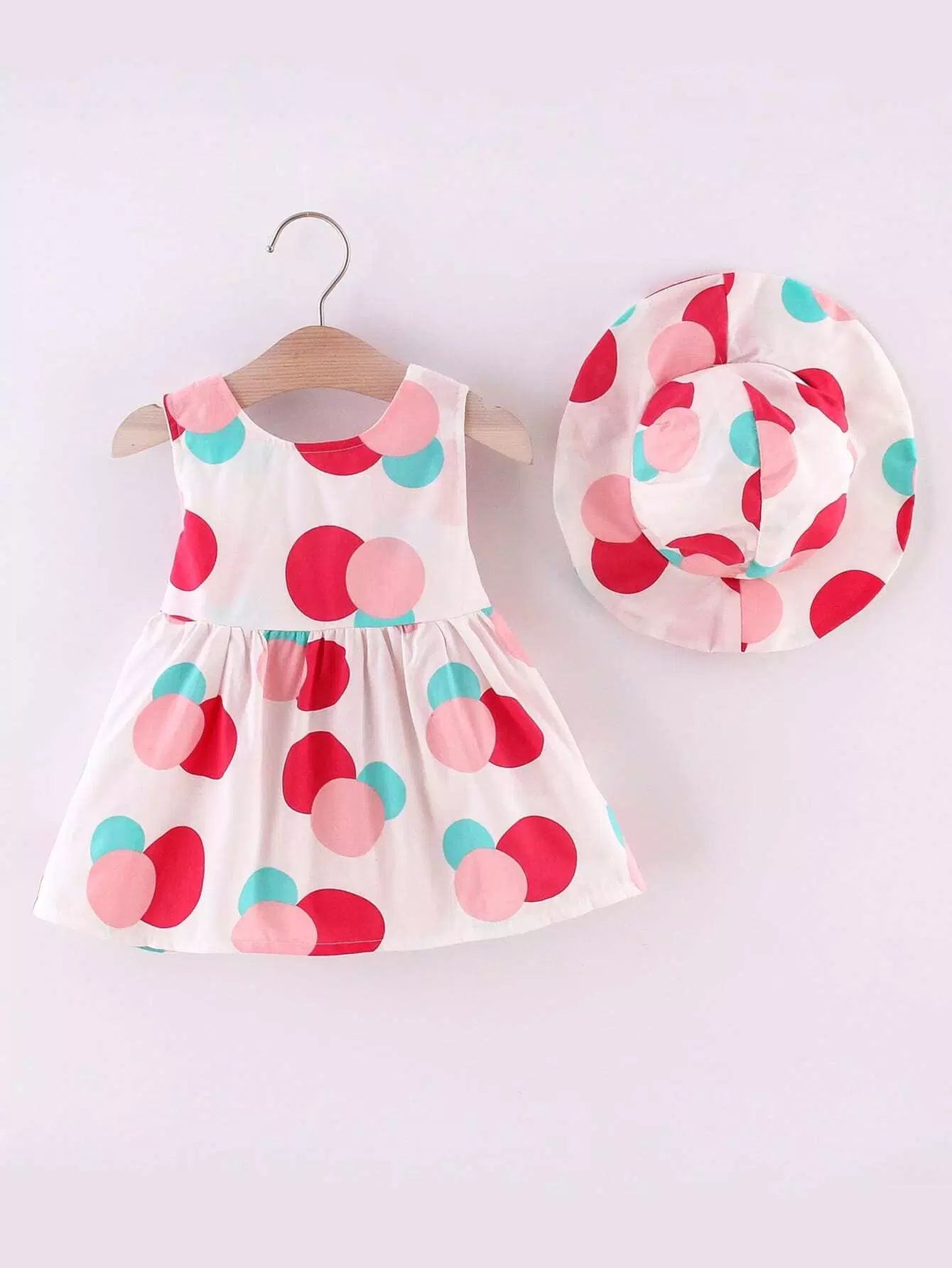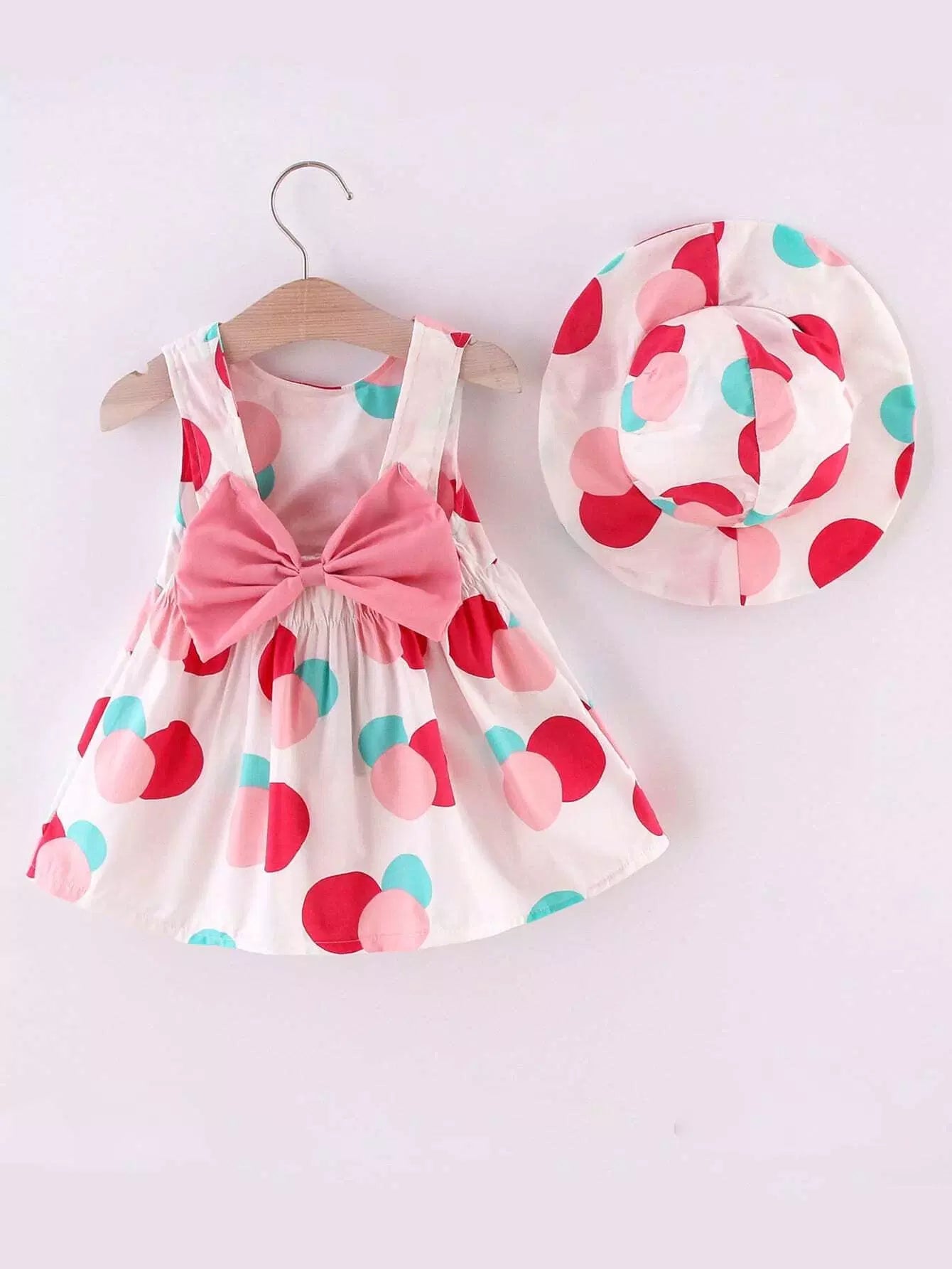 فستان بناتي صغيرات منقّط بعقدة على الظهر مع قبعة