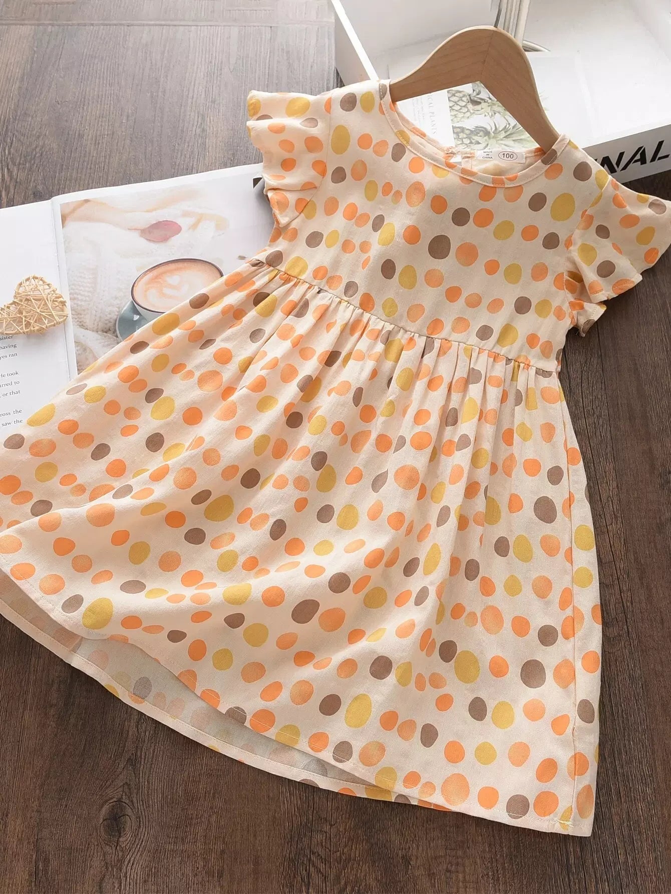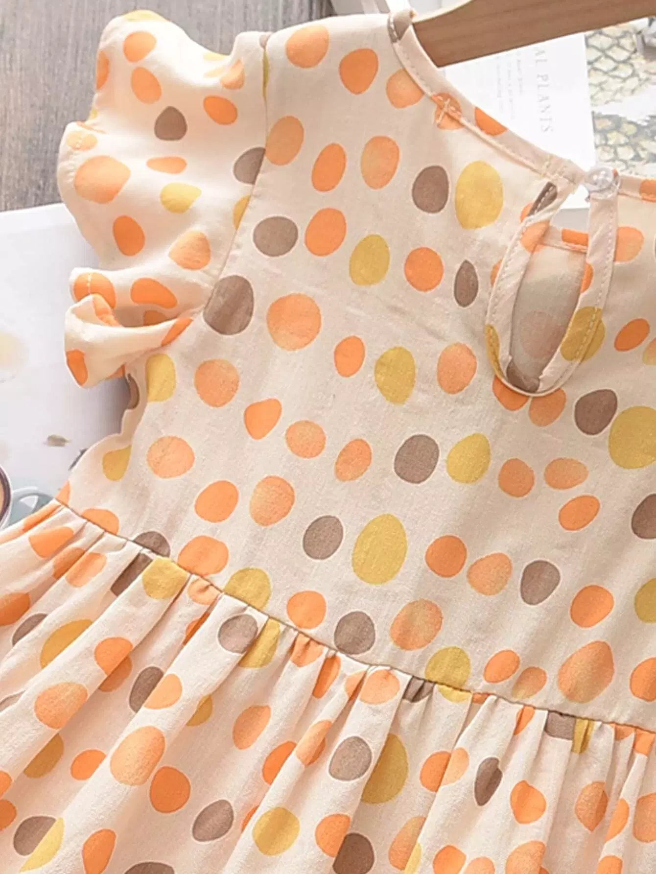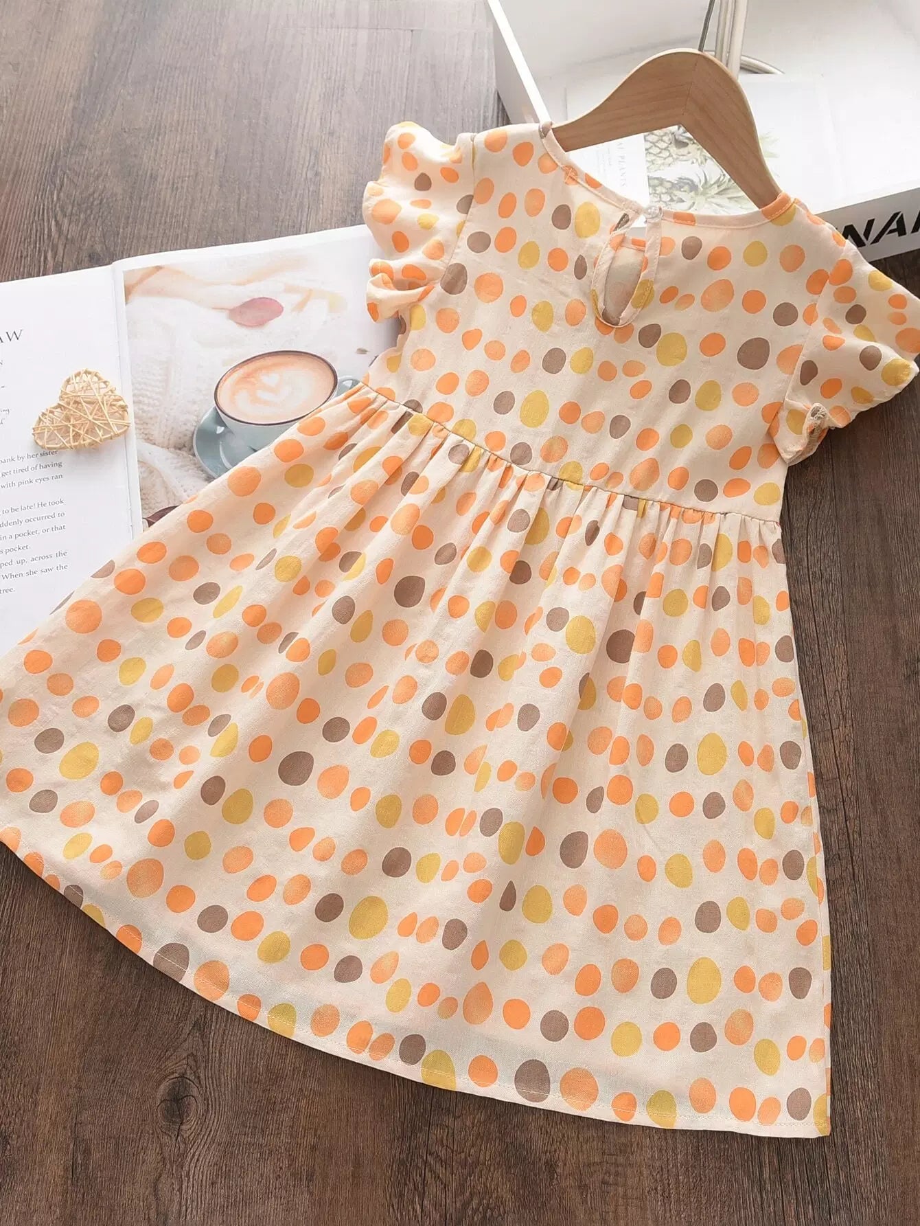 فستان فتيات صغيرات بأكمام منقطة منفوشة بأكمام منفوشة