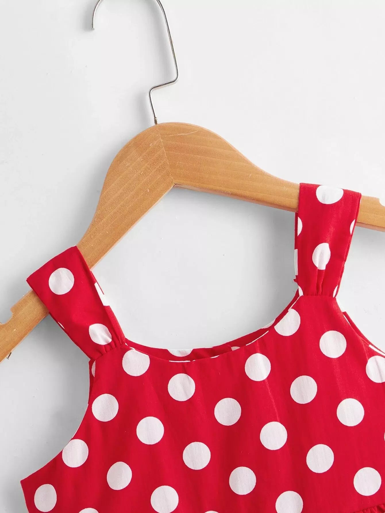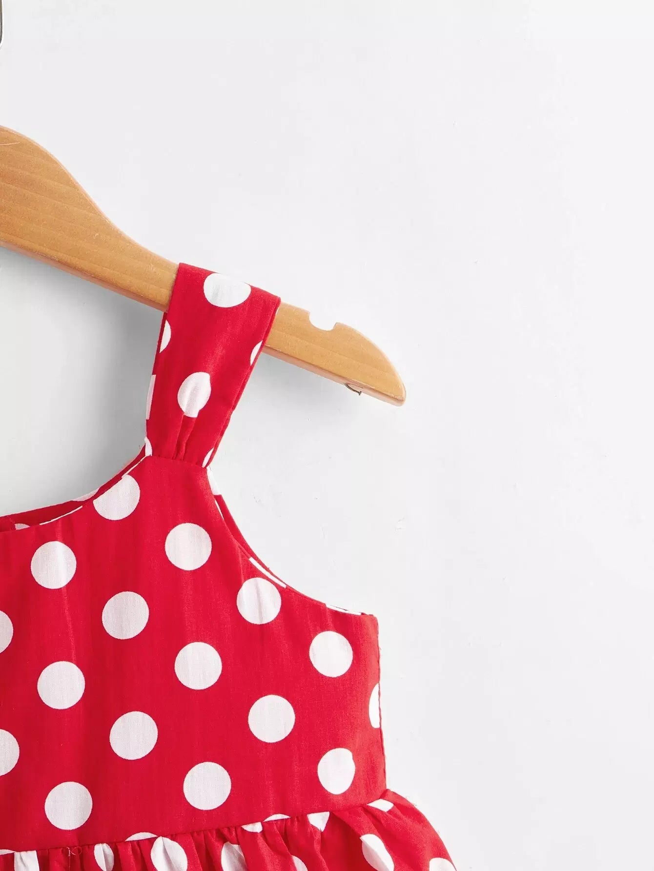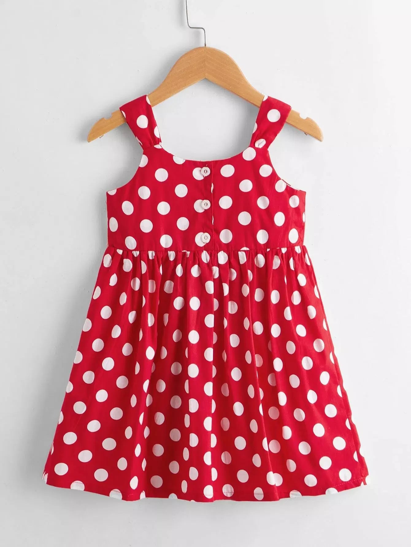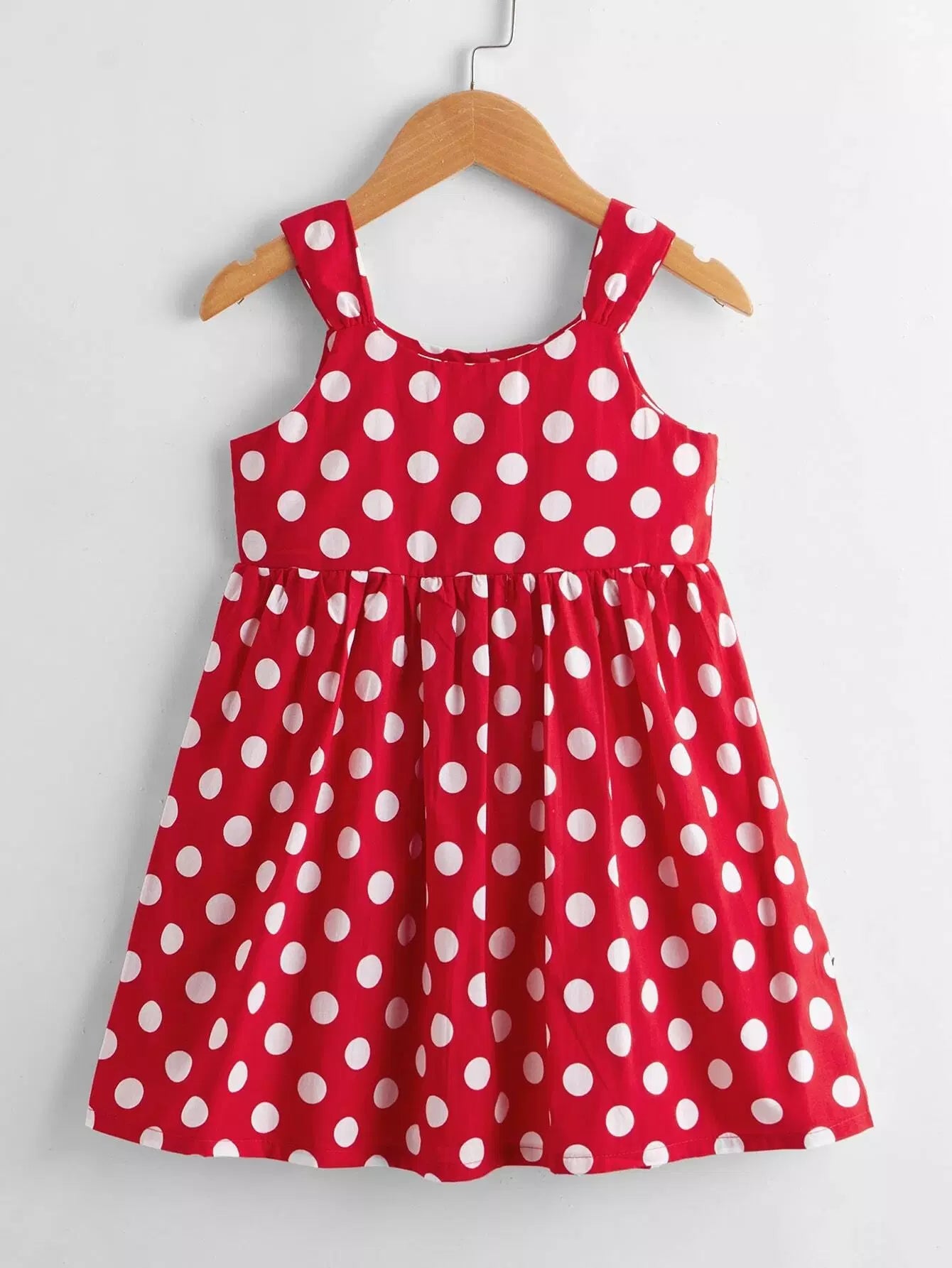 فستان بناتي صغيرات منقّط بنصف زر من الخلف فستان قصير منقّط للبنات