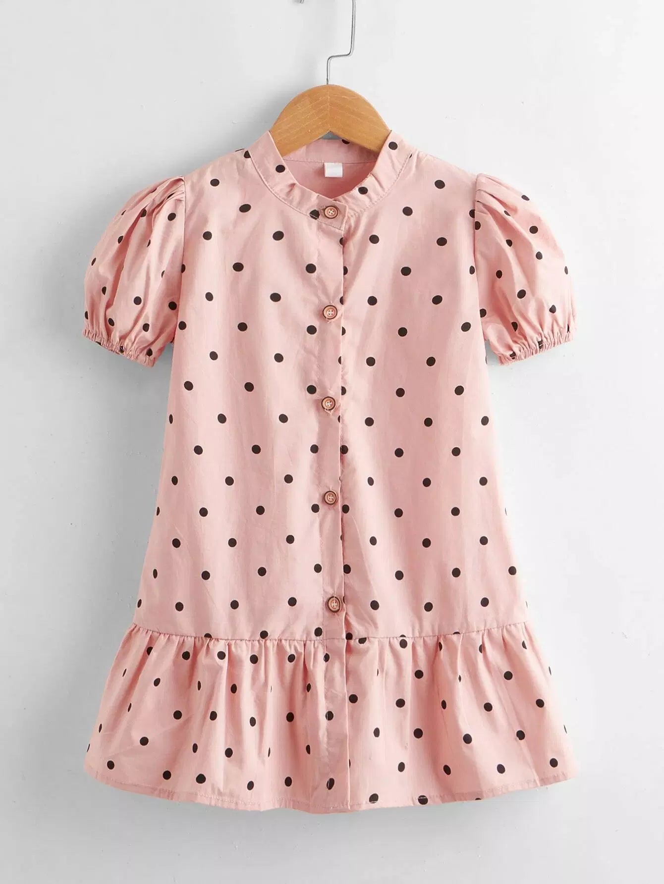 فستان بنات صغيرات منقّط من الكشكش بحاشية مكشكشة