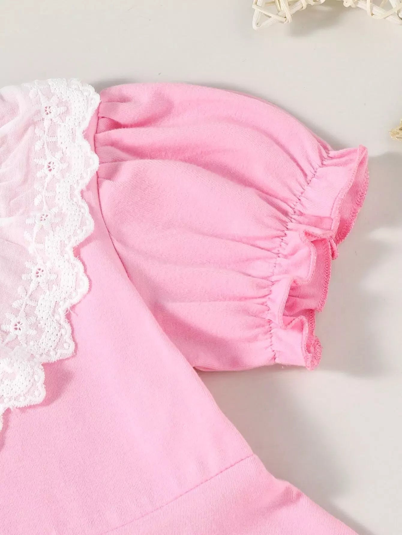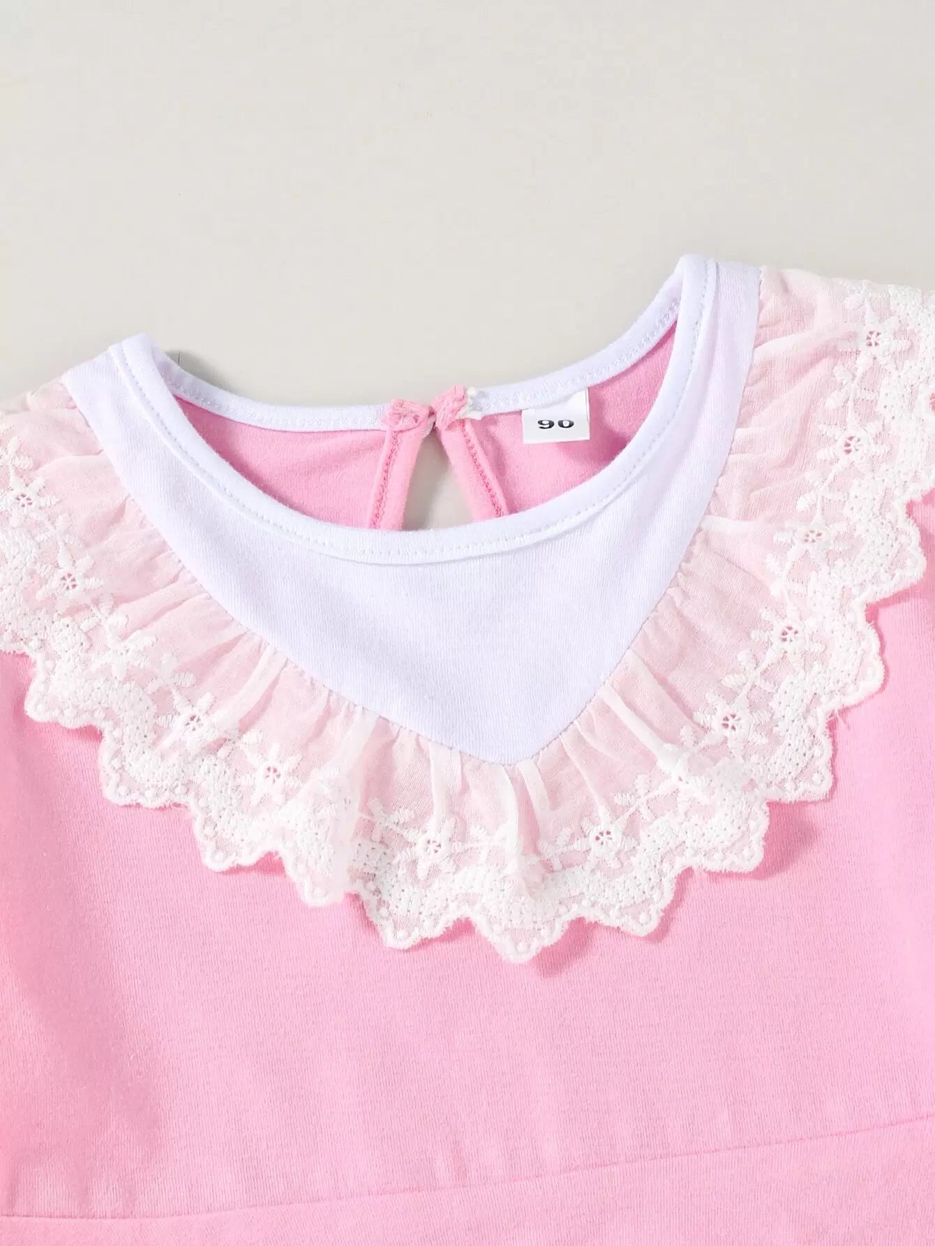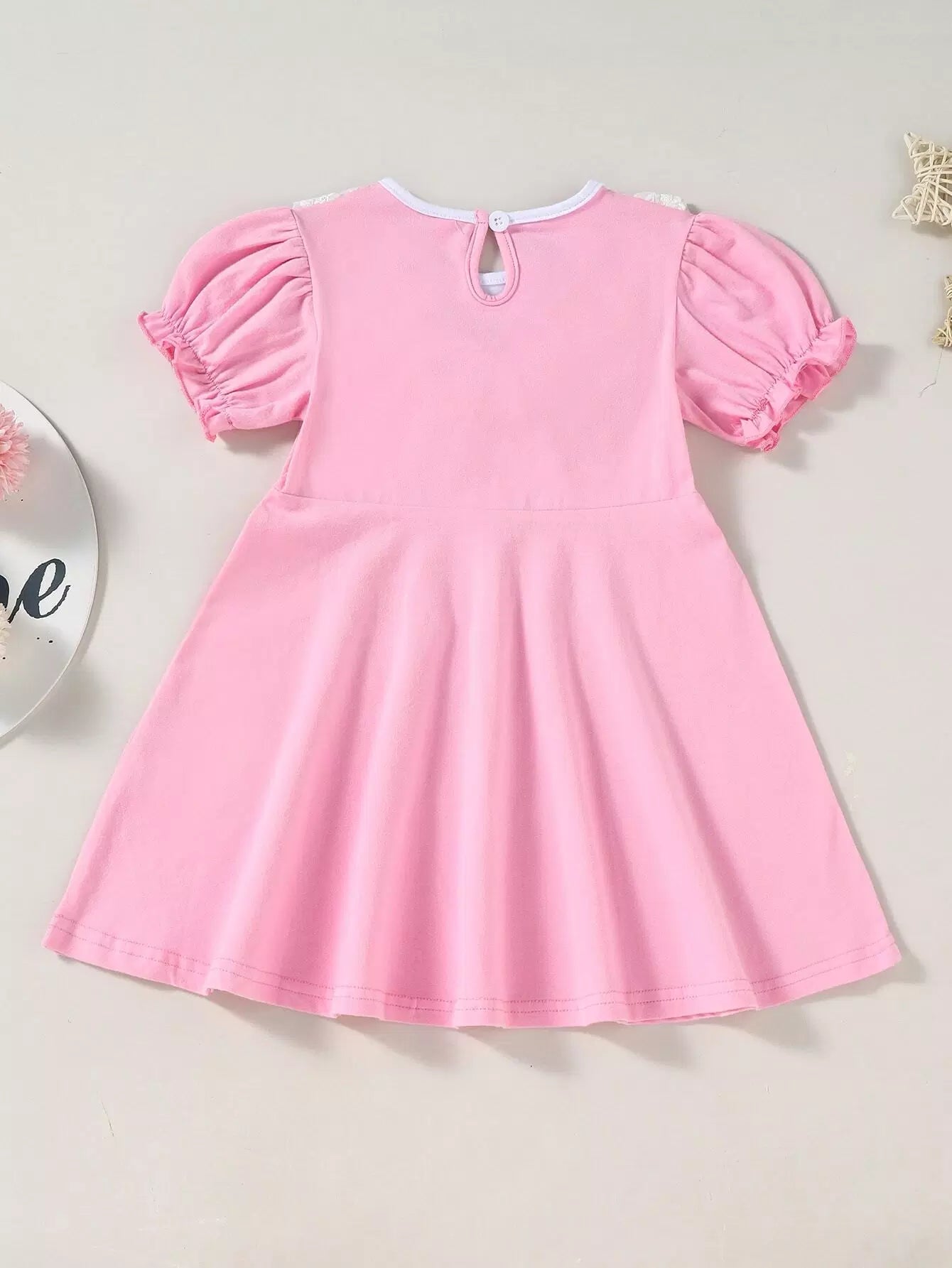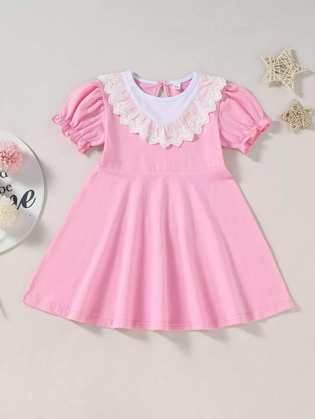 فستان بنات صغيرات بأكمام منفوشة بنقشة بلون مغاير