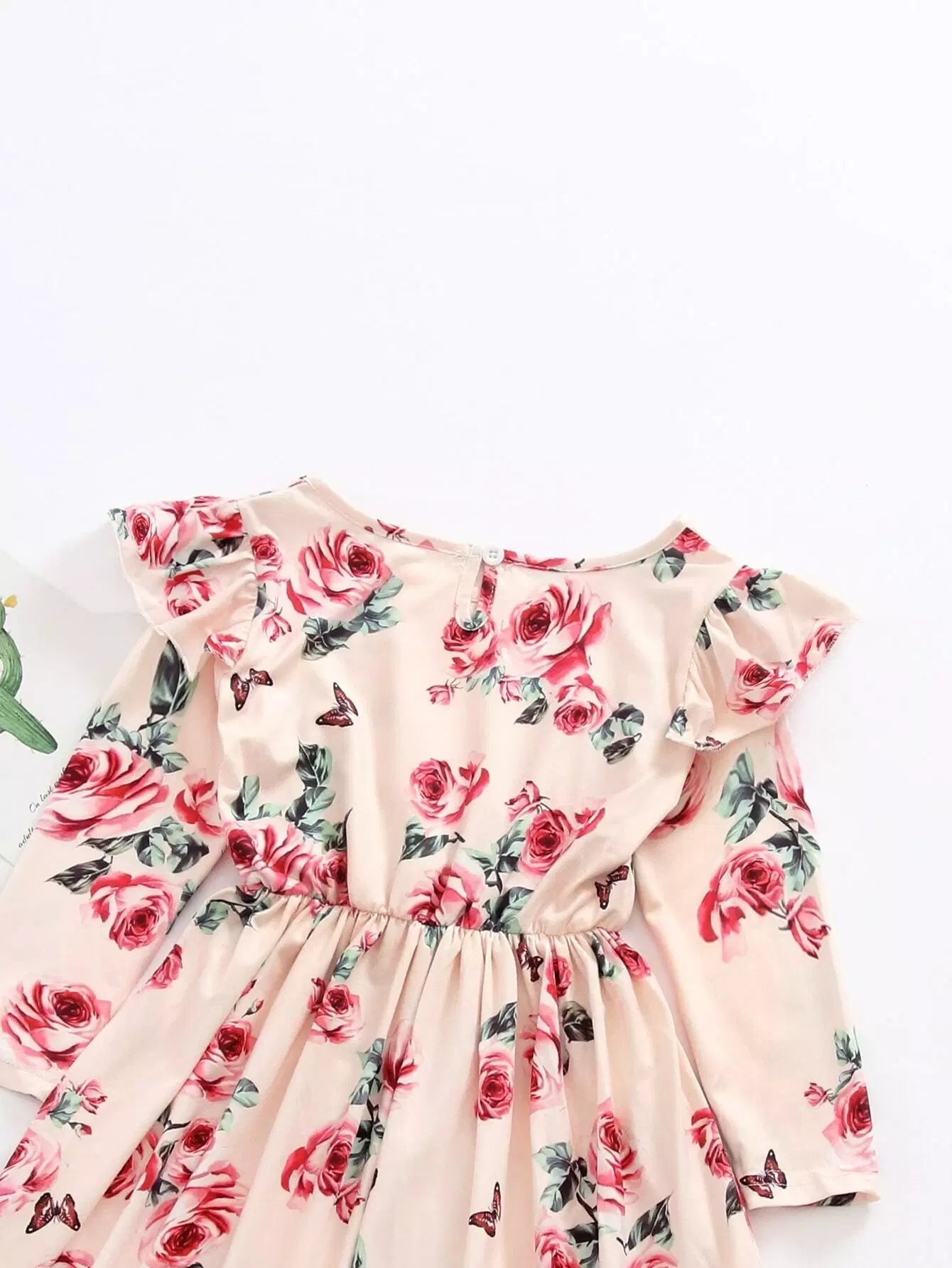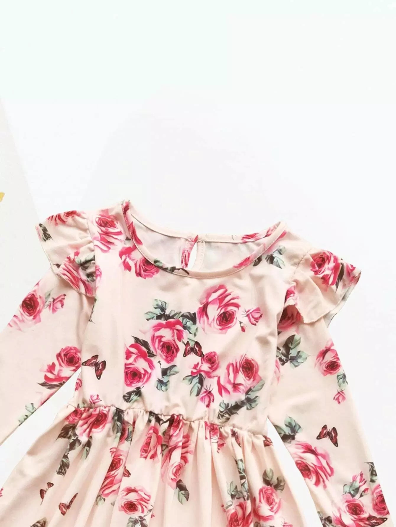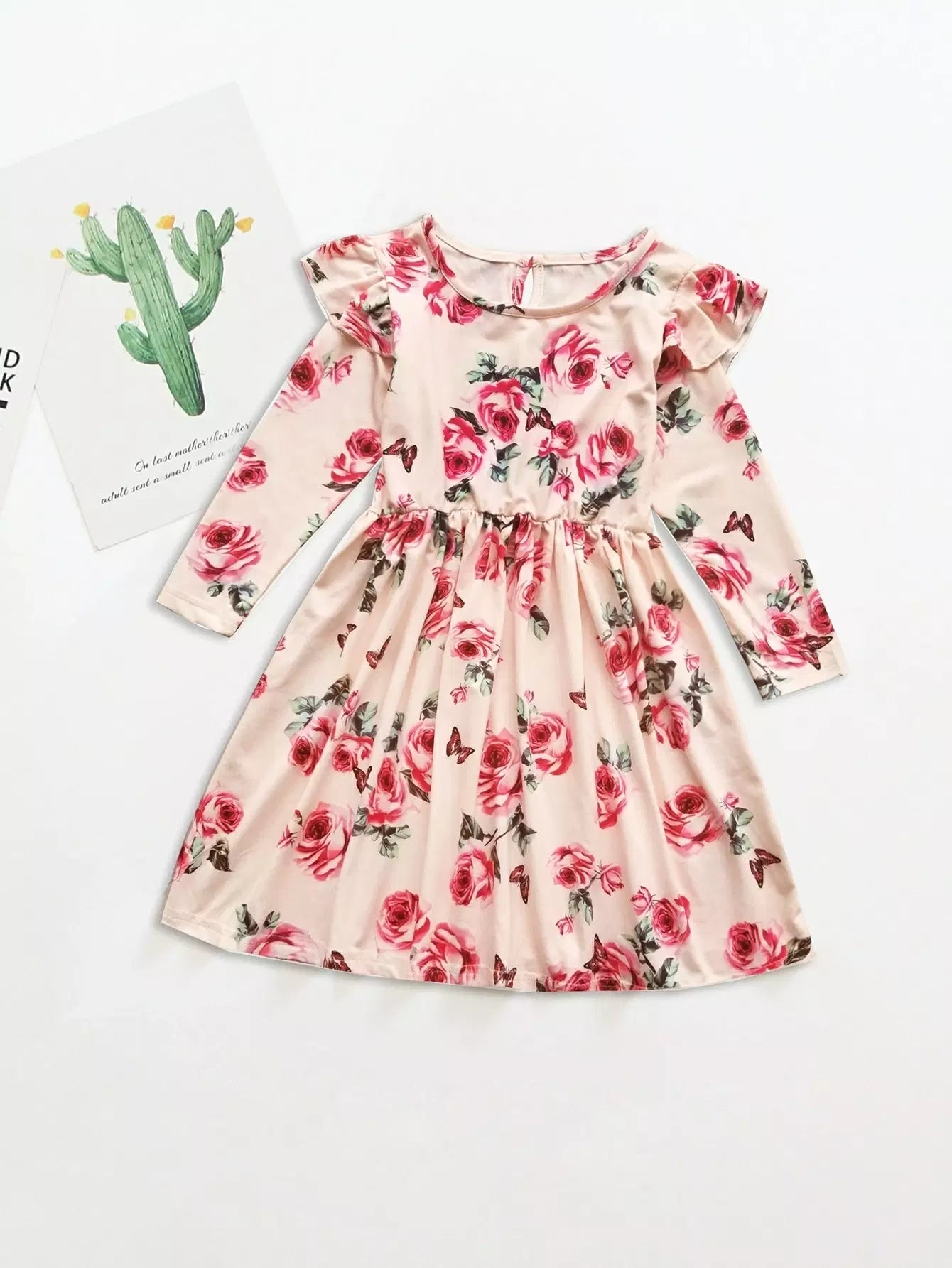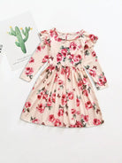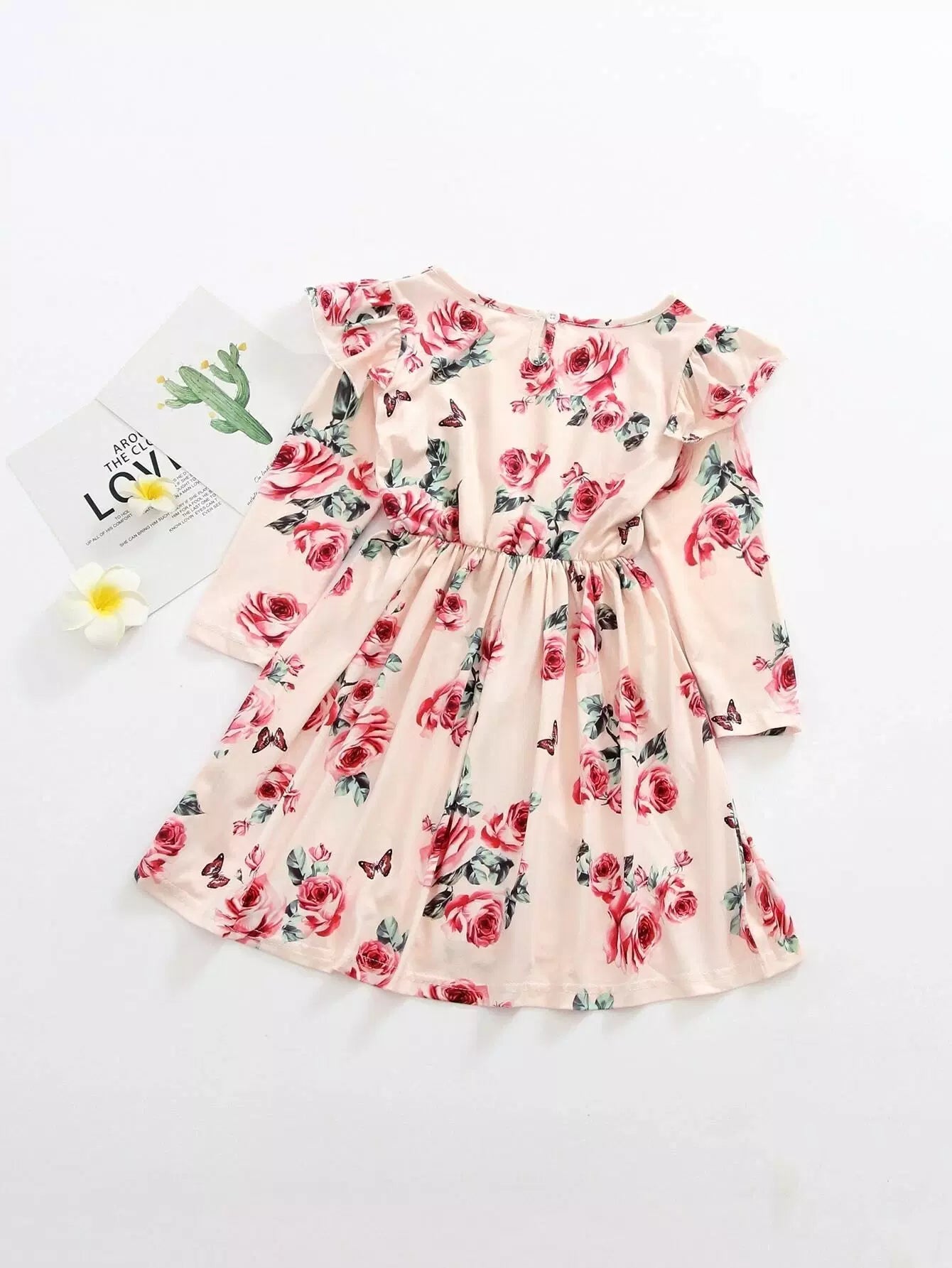 فستان بناتي صغيرات مزين بكشكش مطبوع بالزهور