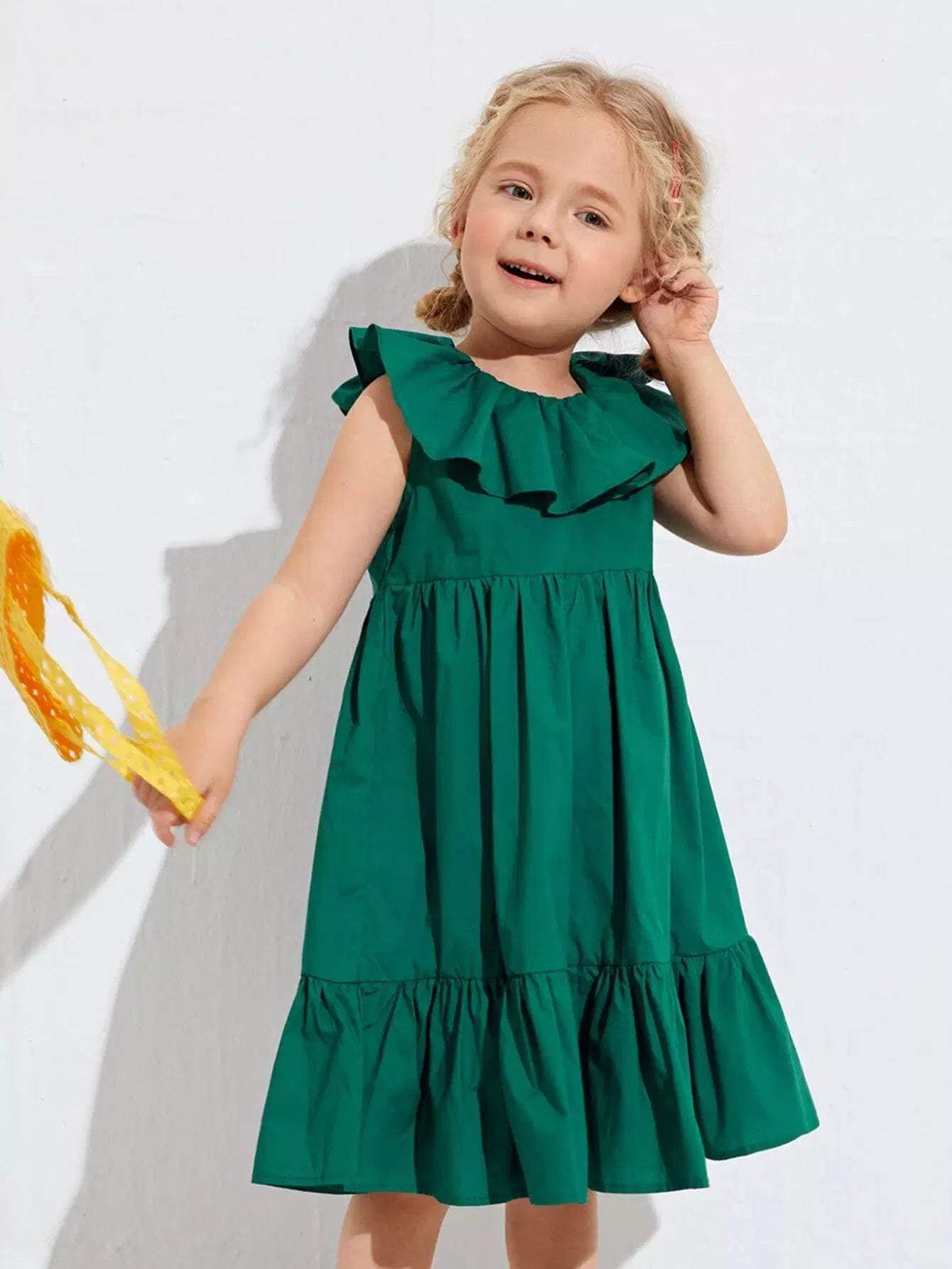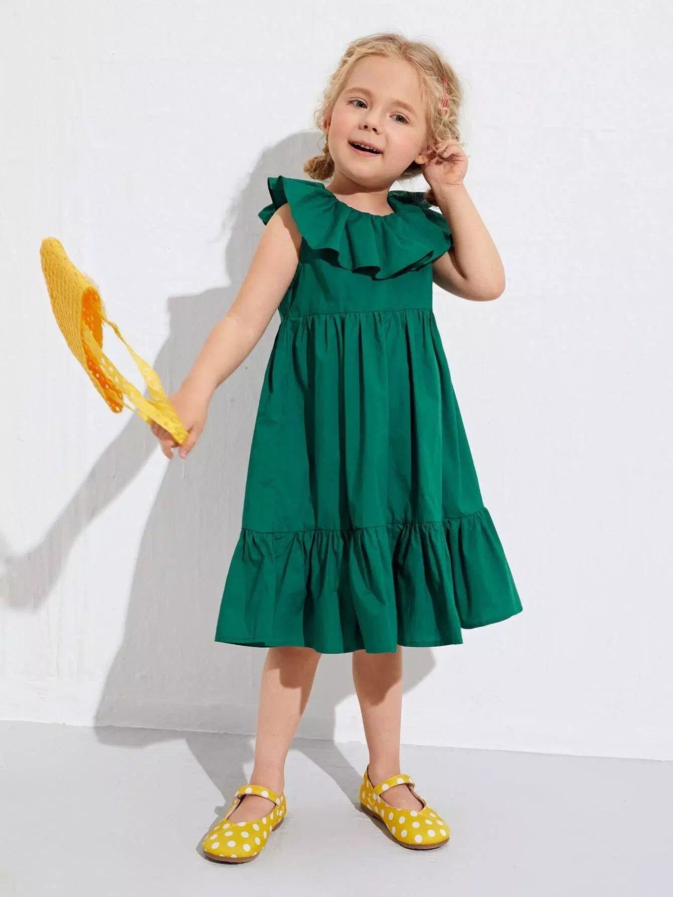 فستان قصير مزين بالكشكشة للبنات الصغار