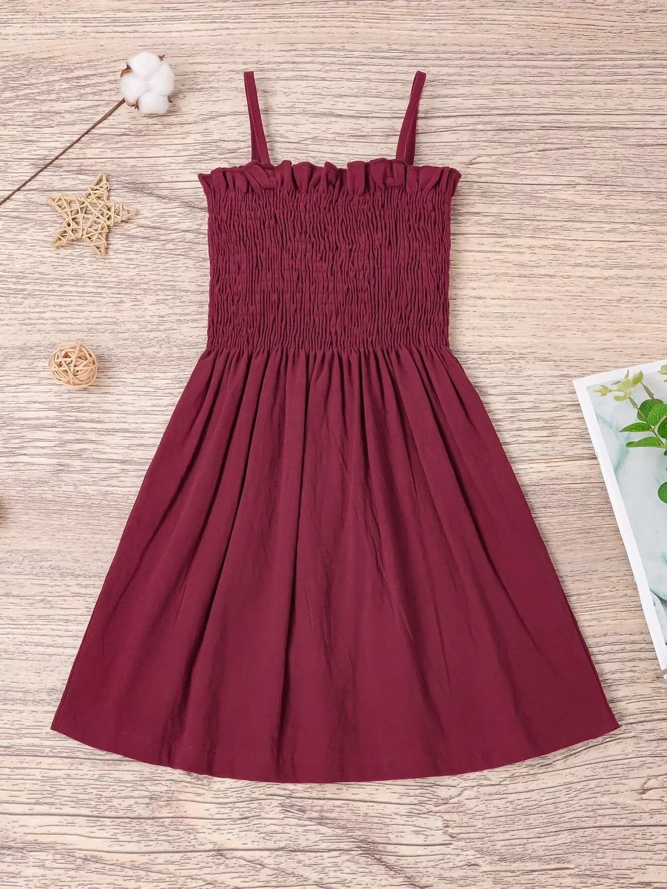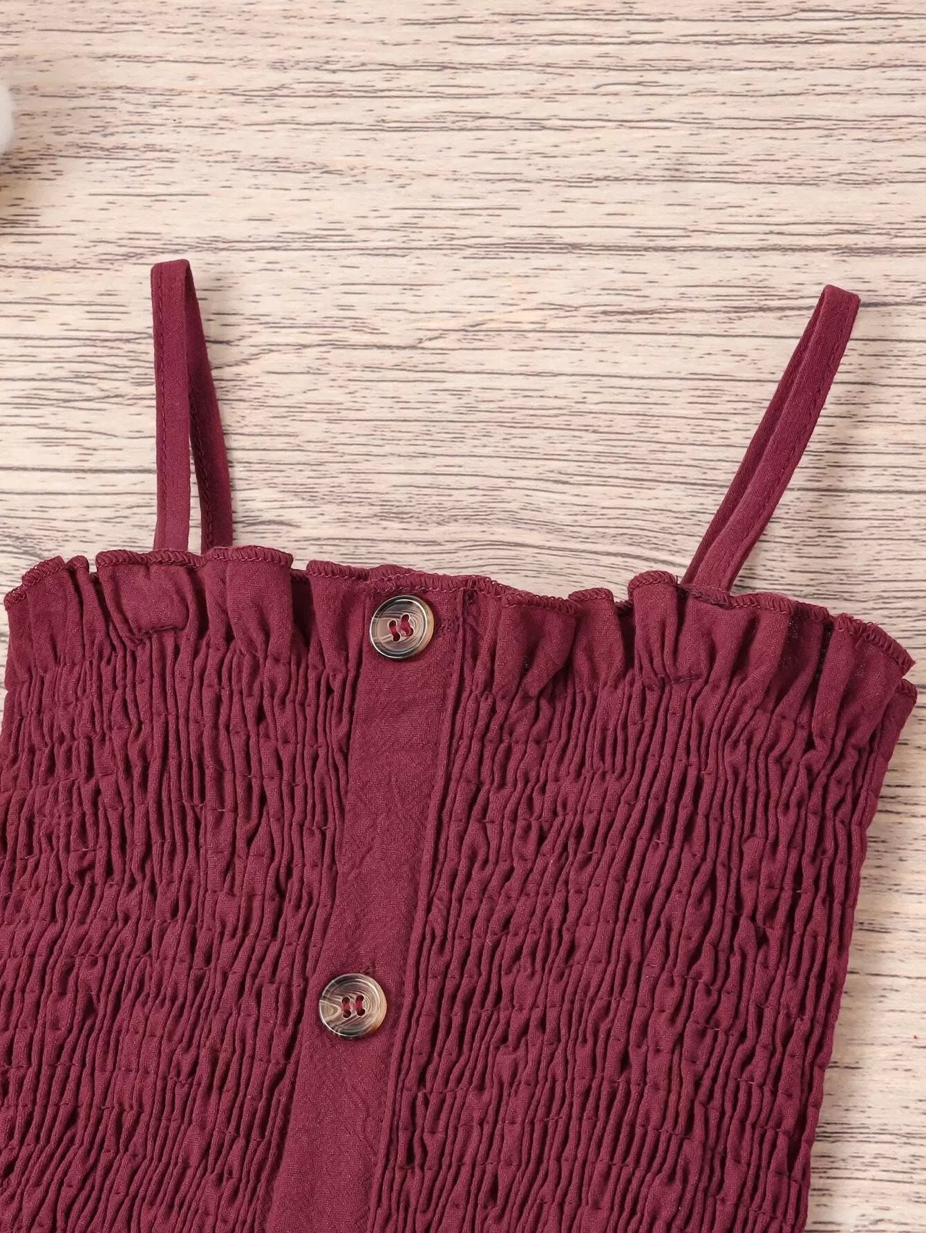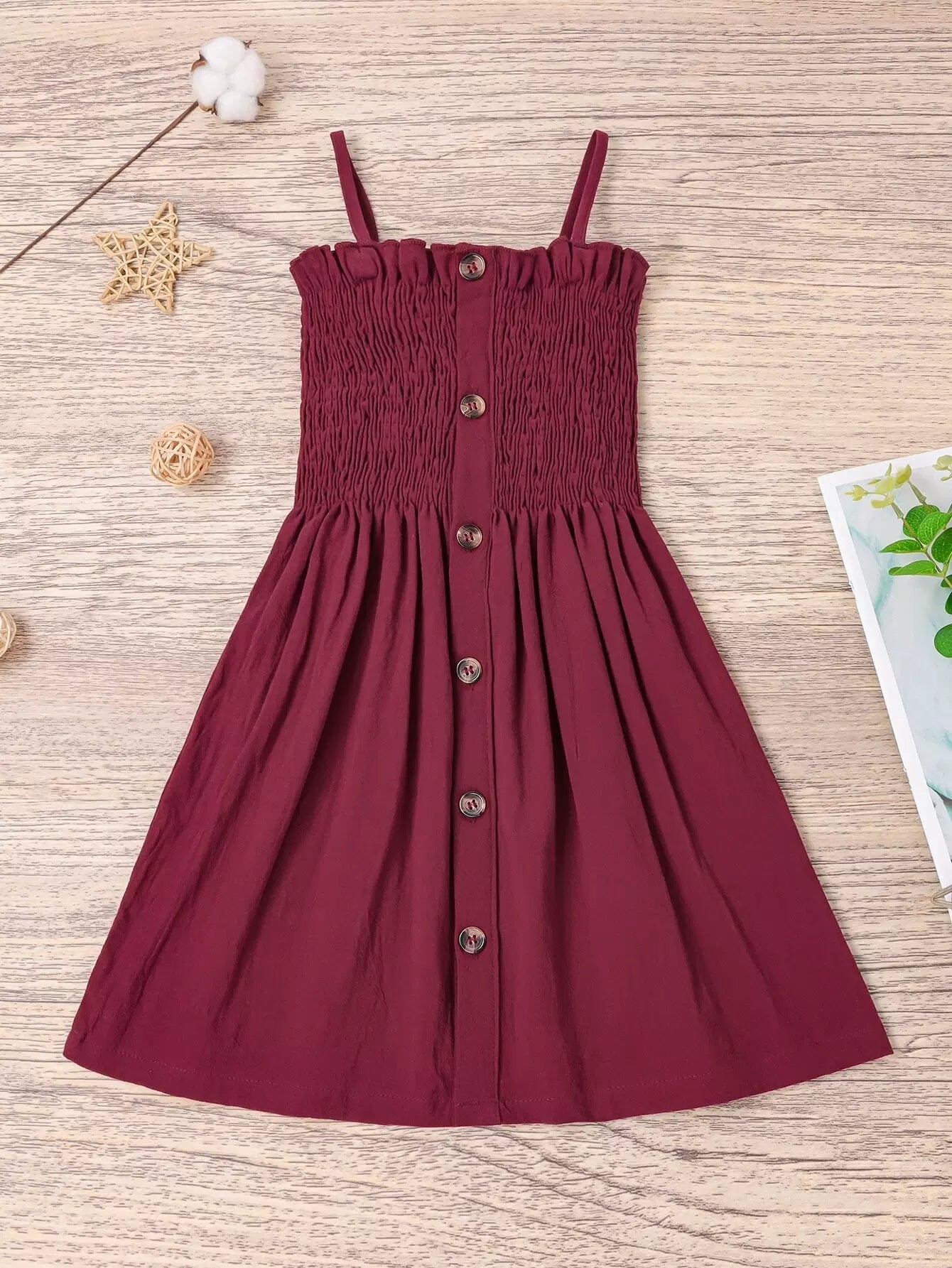 فستان كامي بحواف كشكش أمامية بأزرار أمامية للبنات الصغار