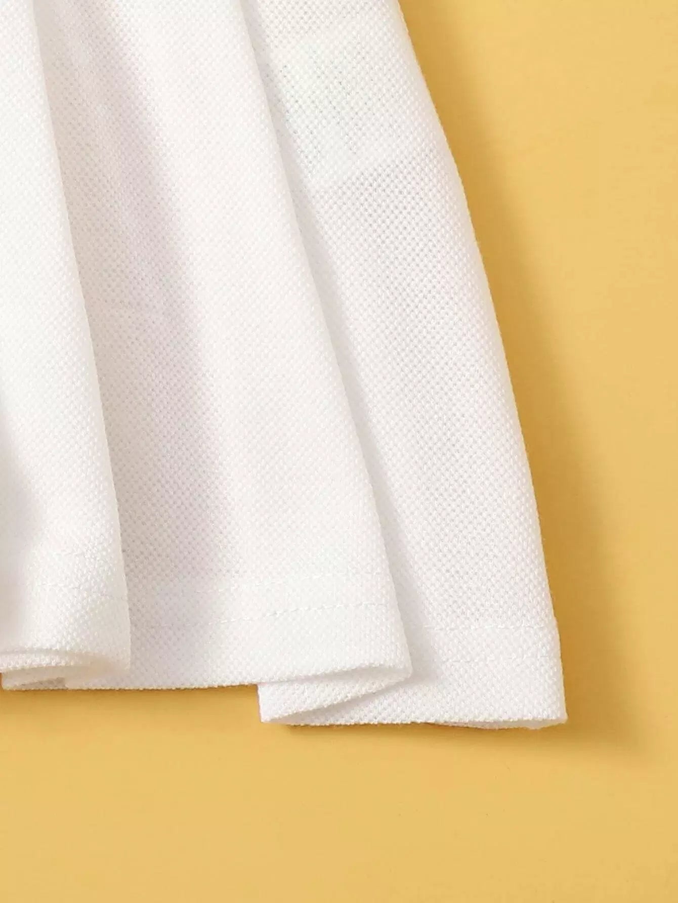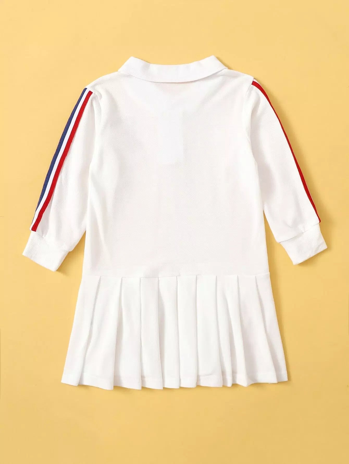 الأطفال - فستان بولو بحاشية مطوية وشريط جانبي للفتيات الصغيرات