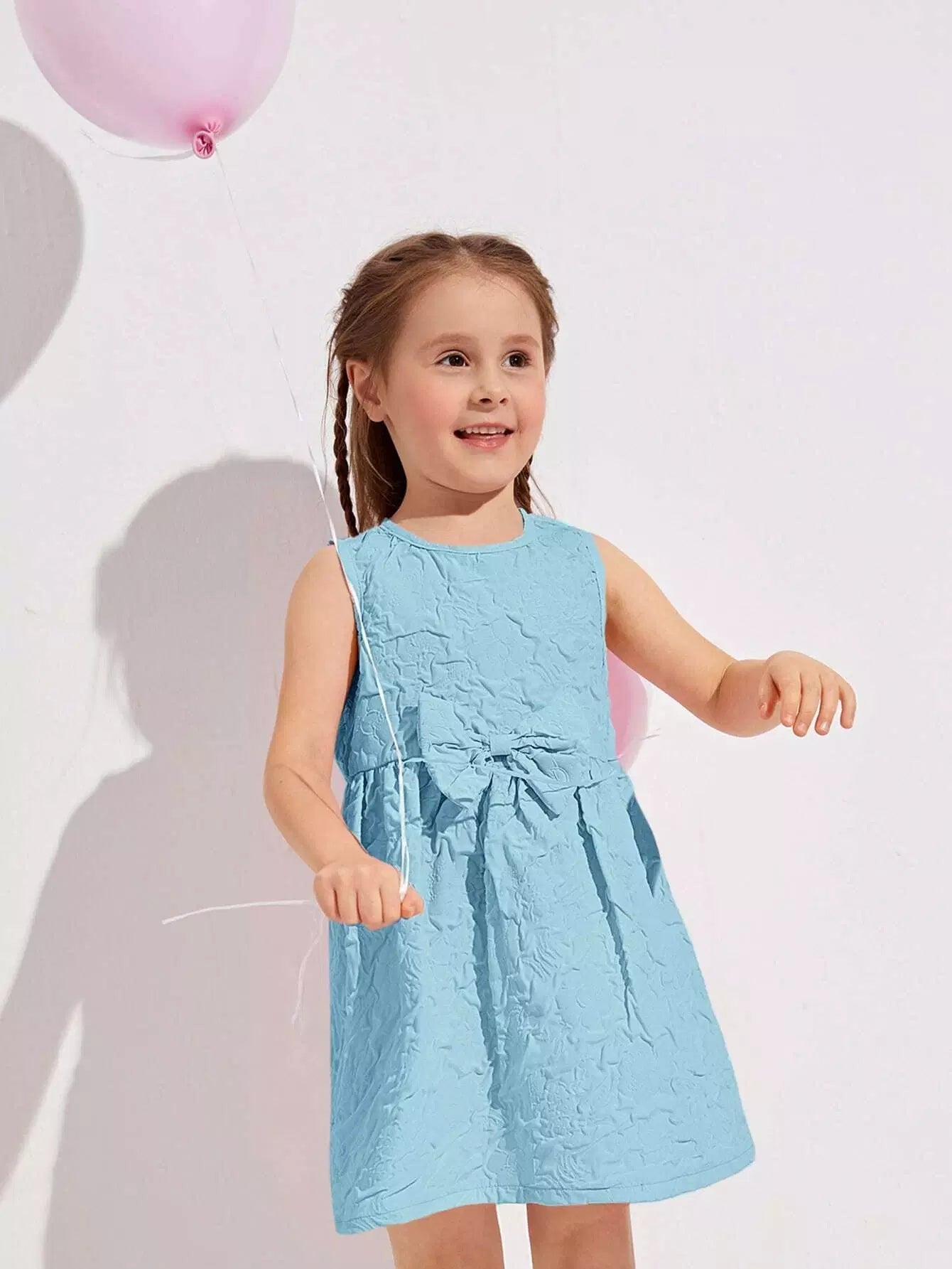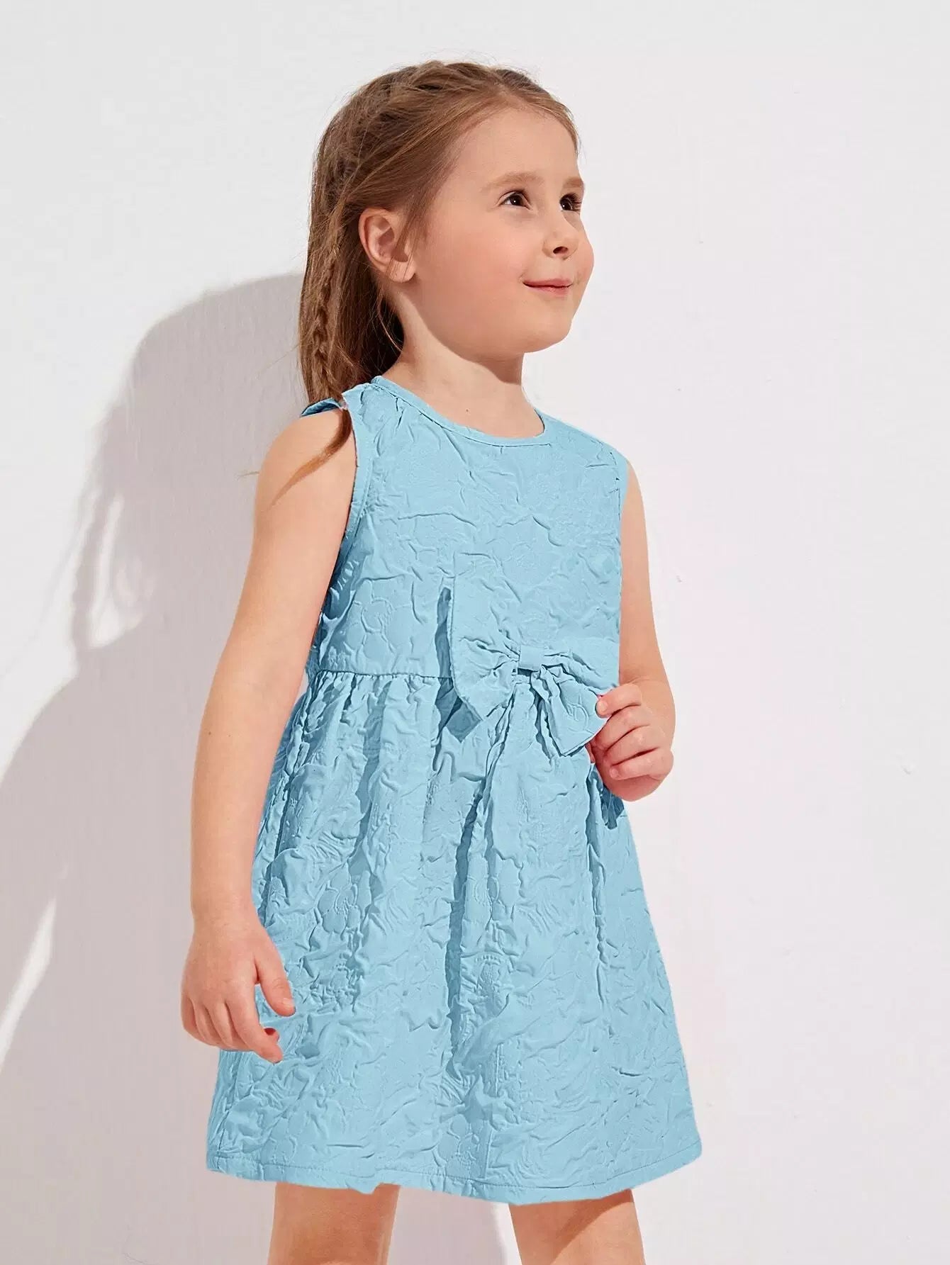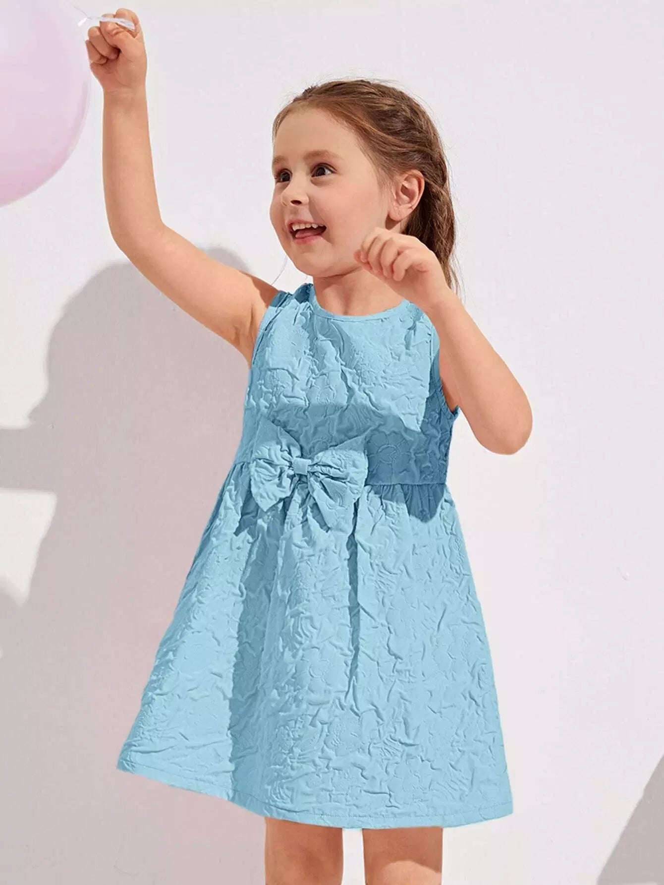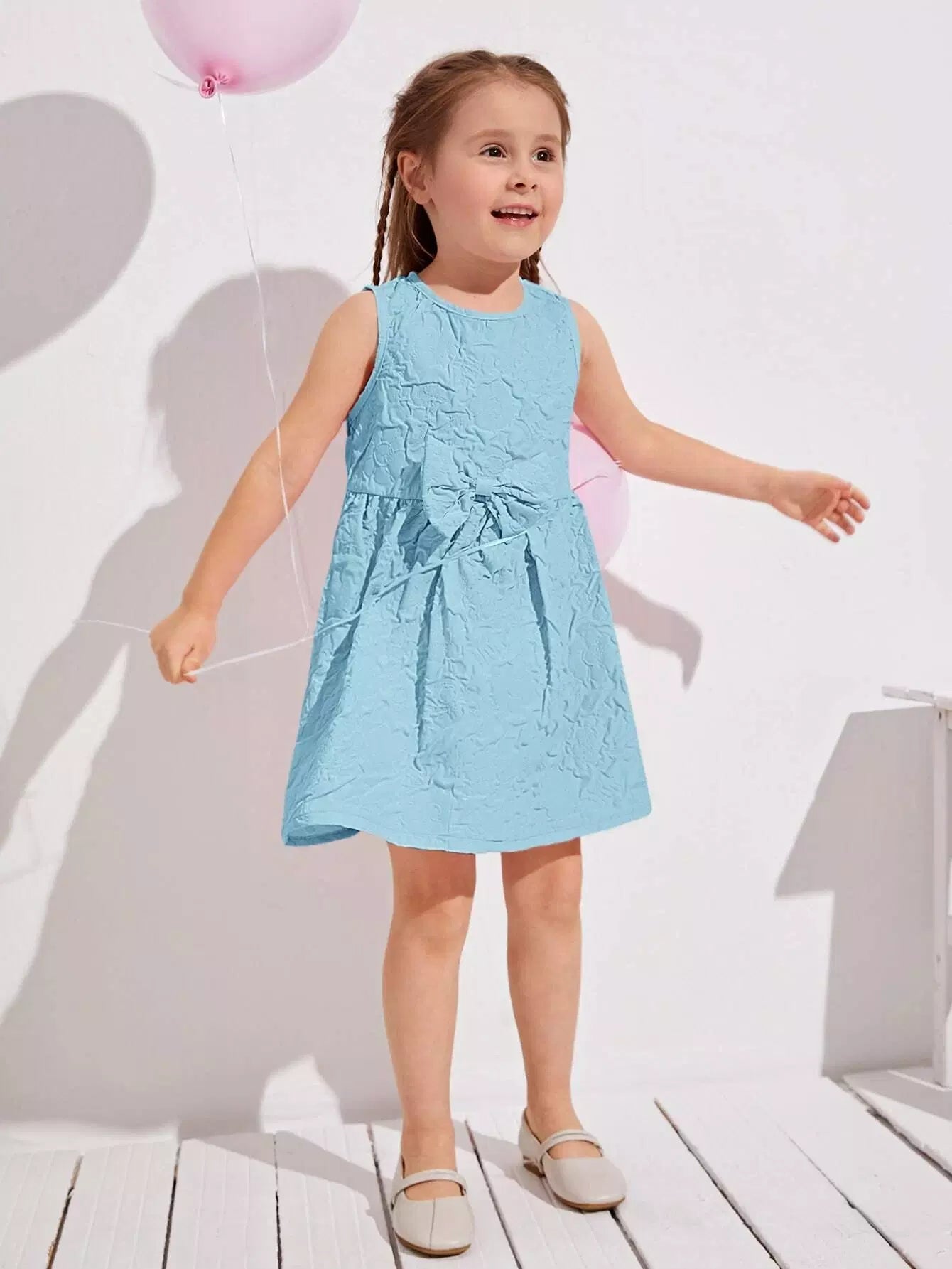 فستان بنات صغيرات سادة بعقدة أمامية سادة