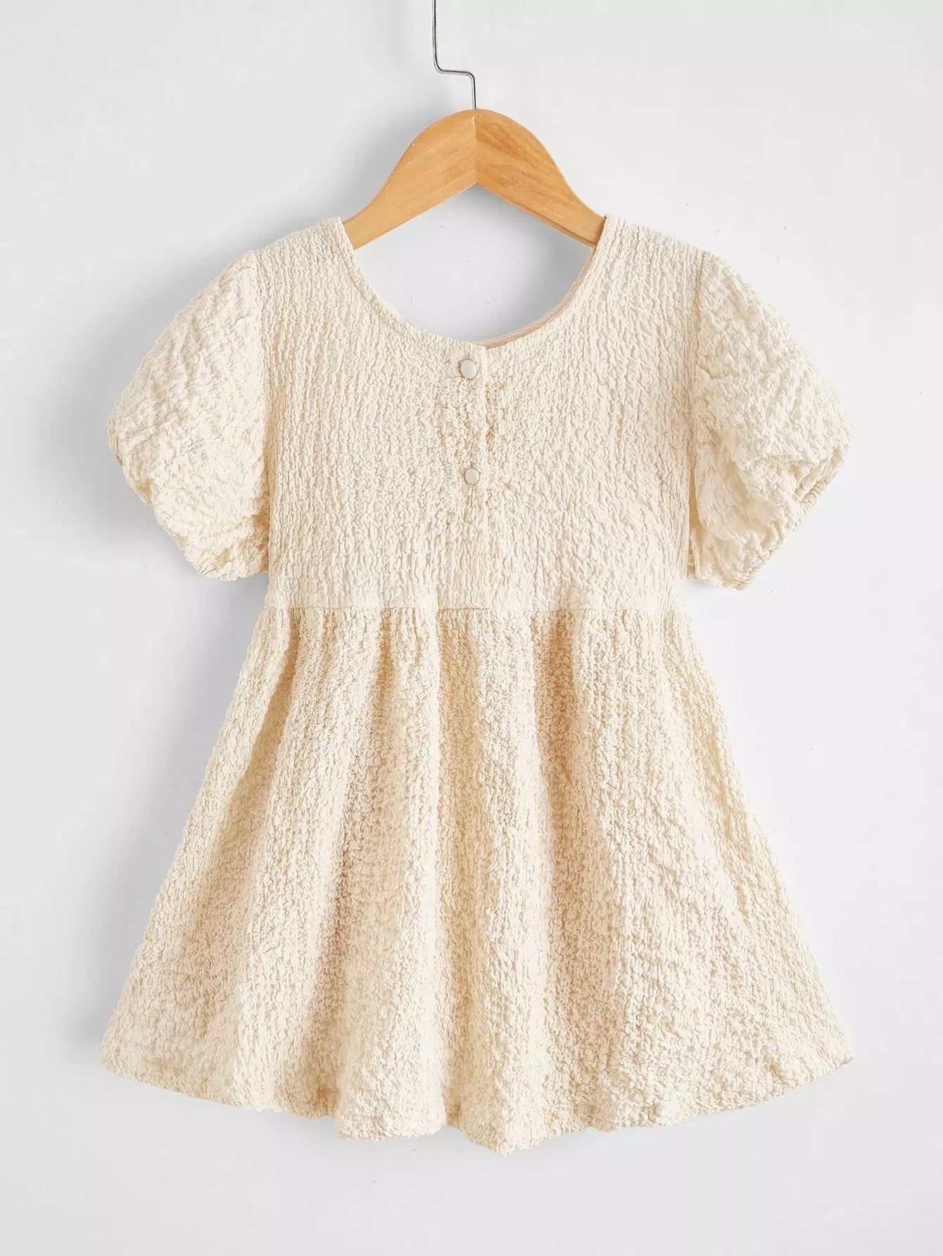 فستان بنات صغيرات سادة مجعد مجعد سميك