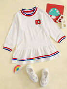 فستان بنات صغيرات مخطط بنقشة أرقام مطبوع عليه فساتين بيبي دول
