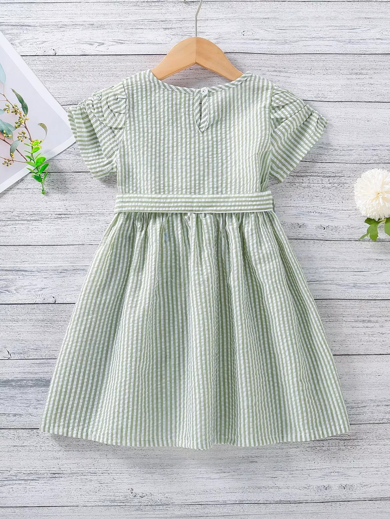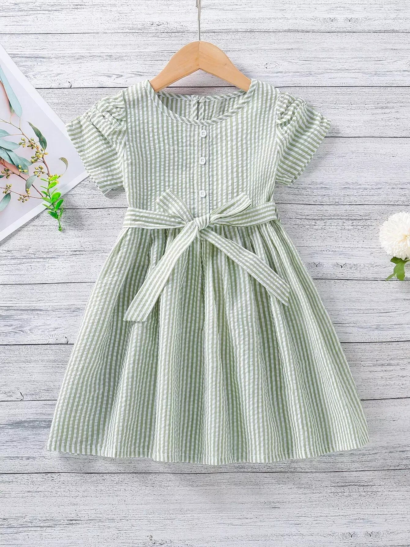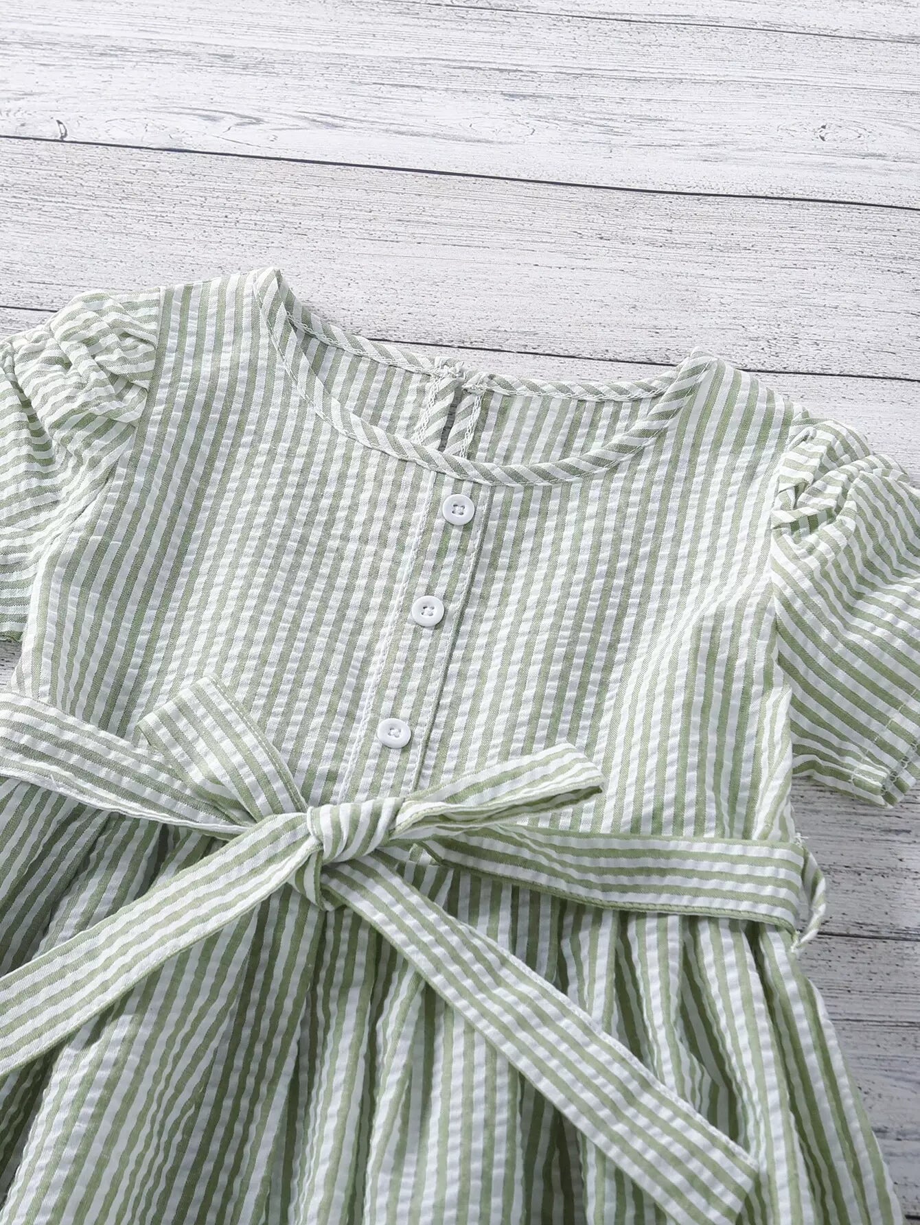 فستان مخطط بأكمام منتفخة للفتيات الصغيرات بدون حزام