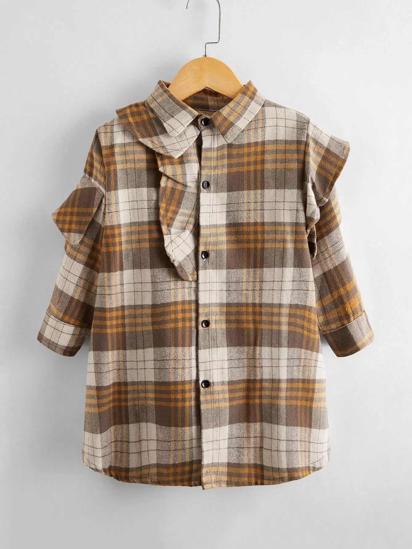 فستان بناتي صغيرات بطبعة تارتان مزين بكشكش