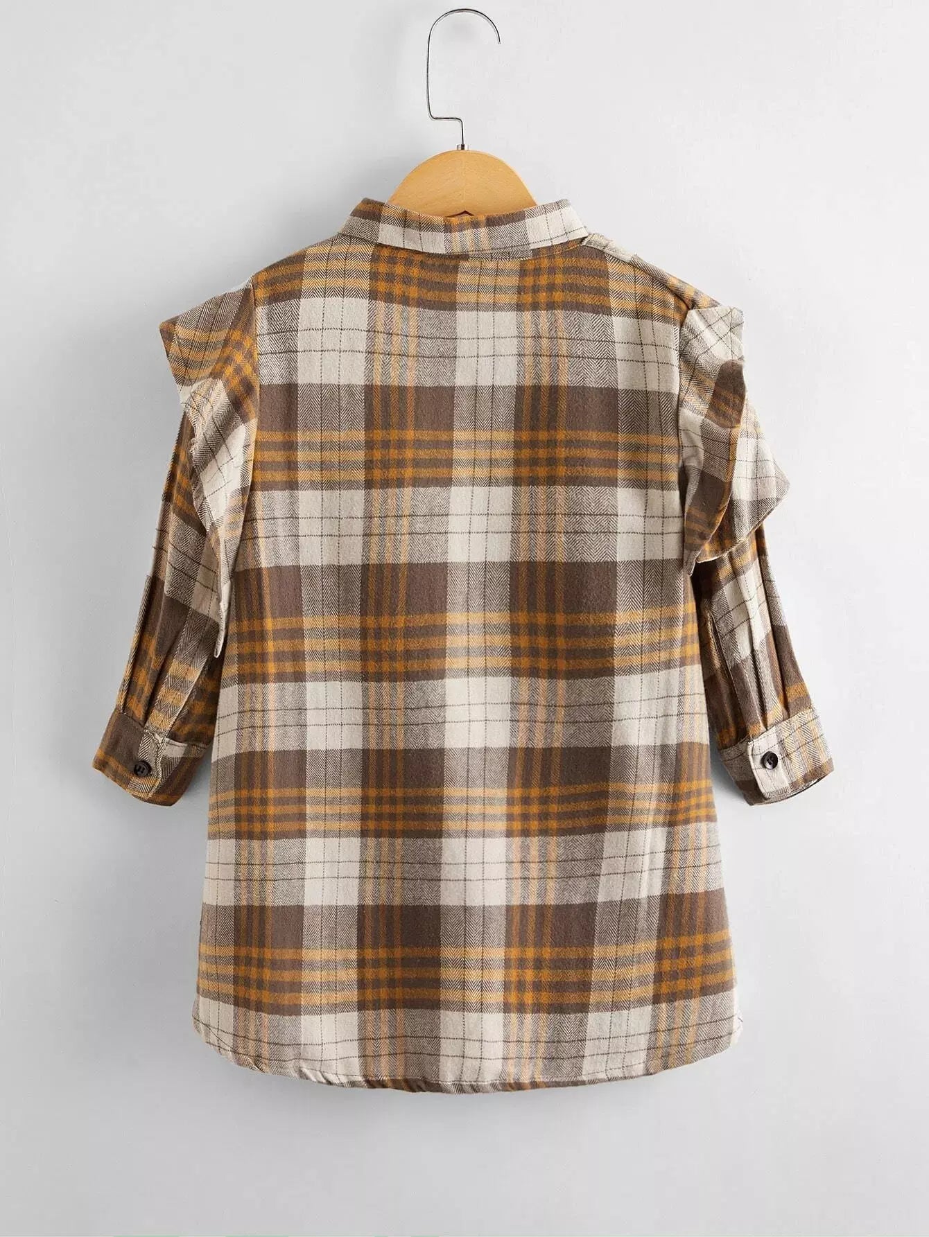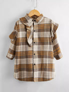 الأطفال - فستان قميص بأكمام طويلة وطبعة تارتان للفتيات الصغيرات