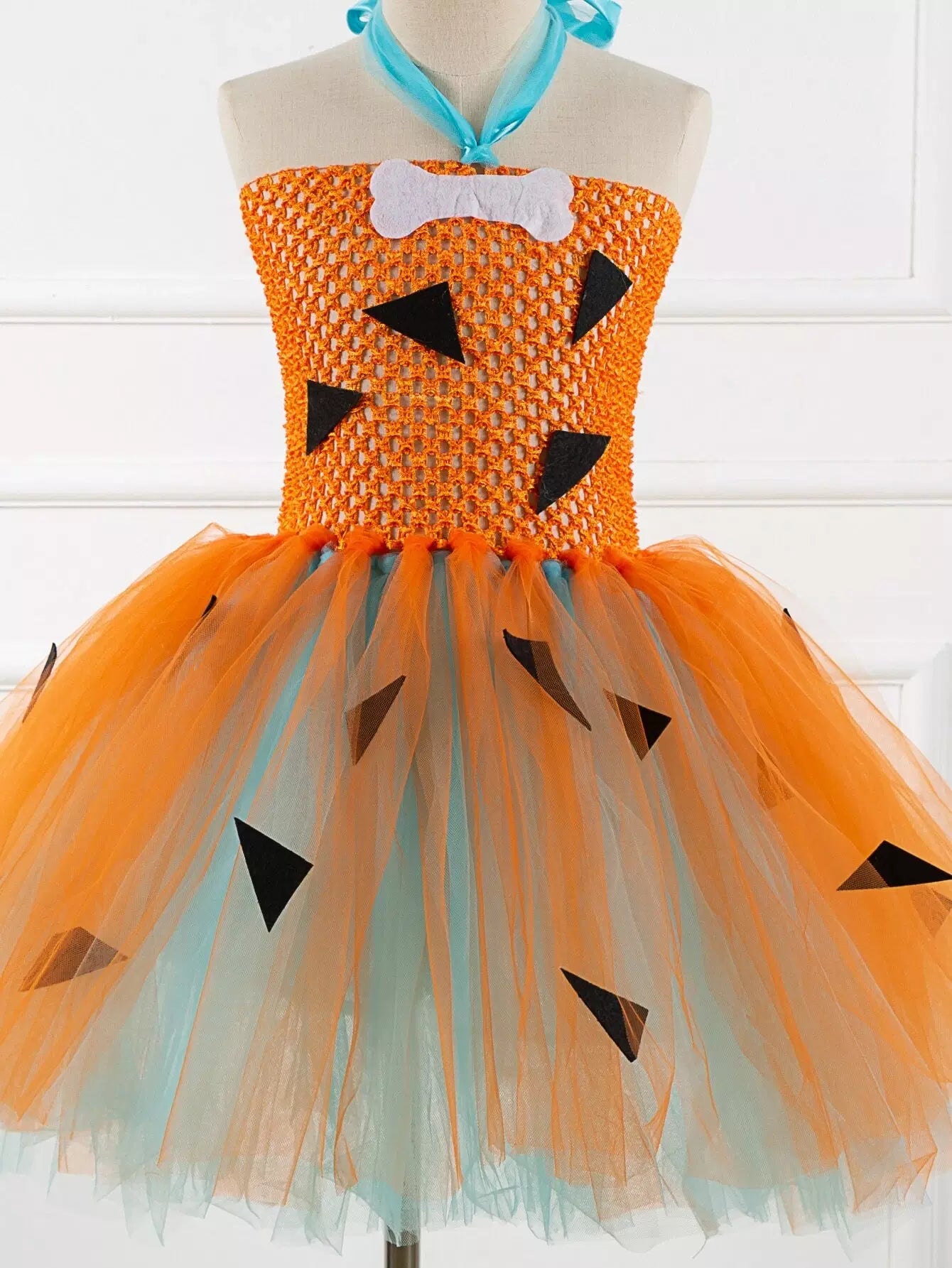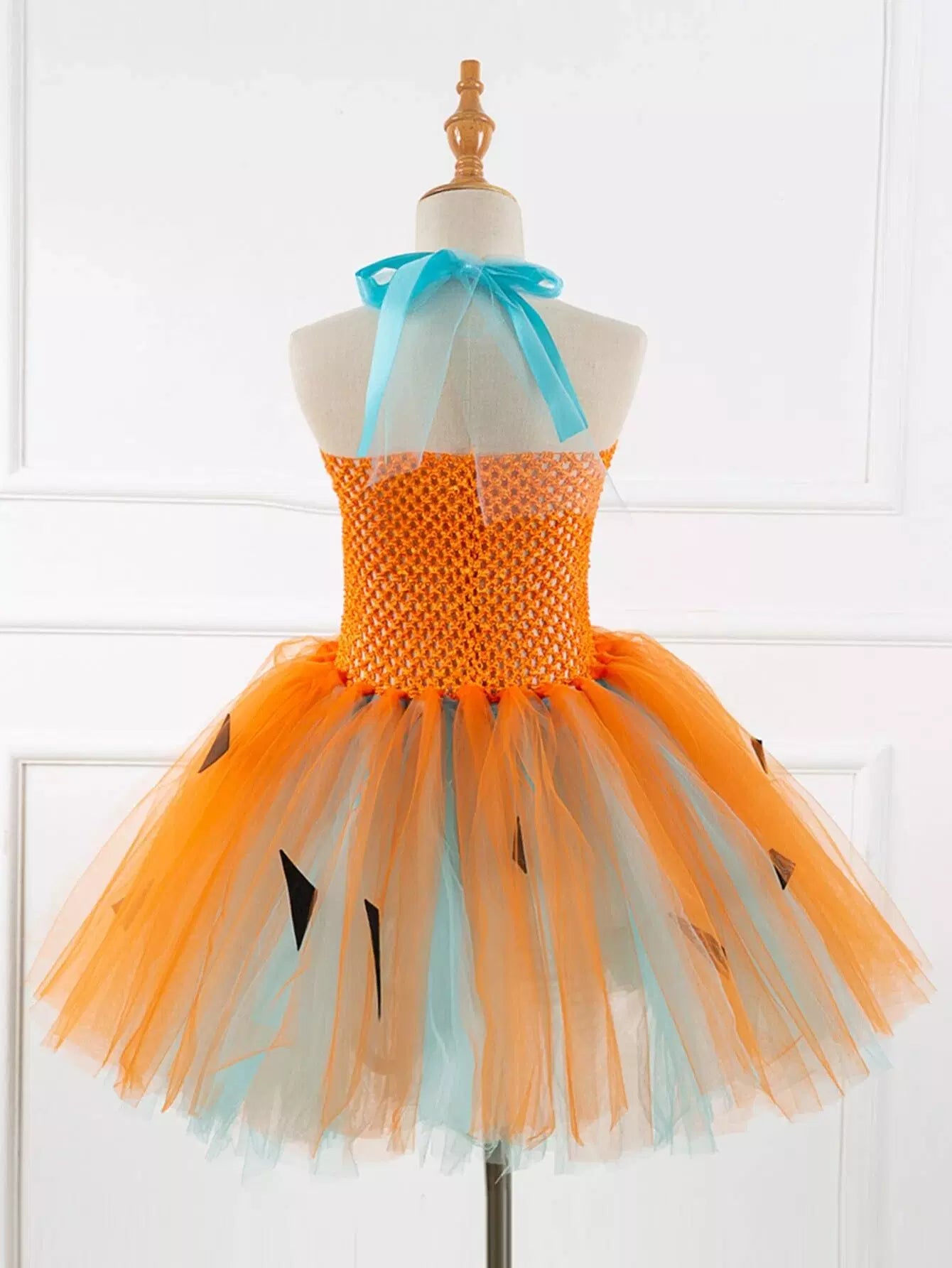فستان تنكري لحفلة الهالوين للفتيات الصغيرات بربطة عنق شبكية من الخلف