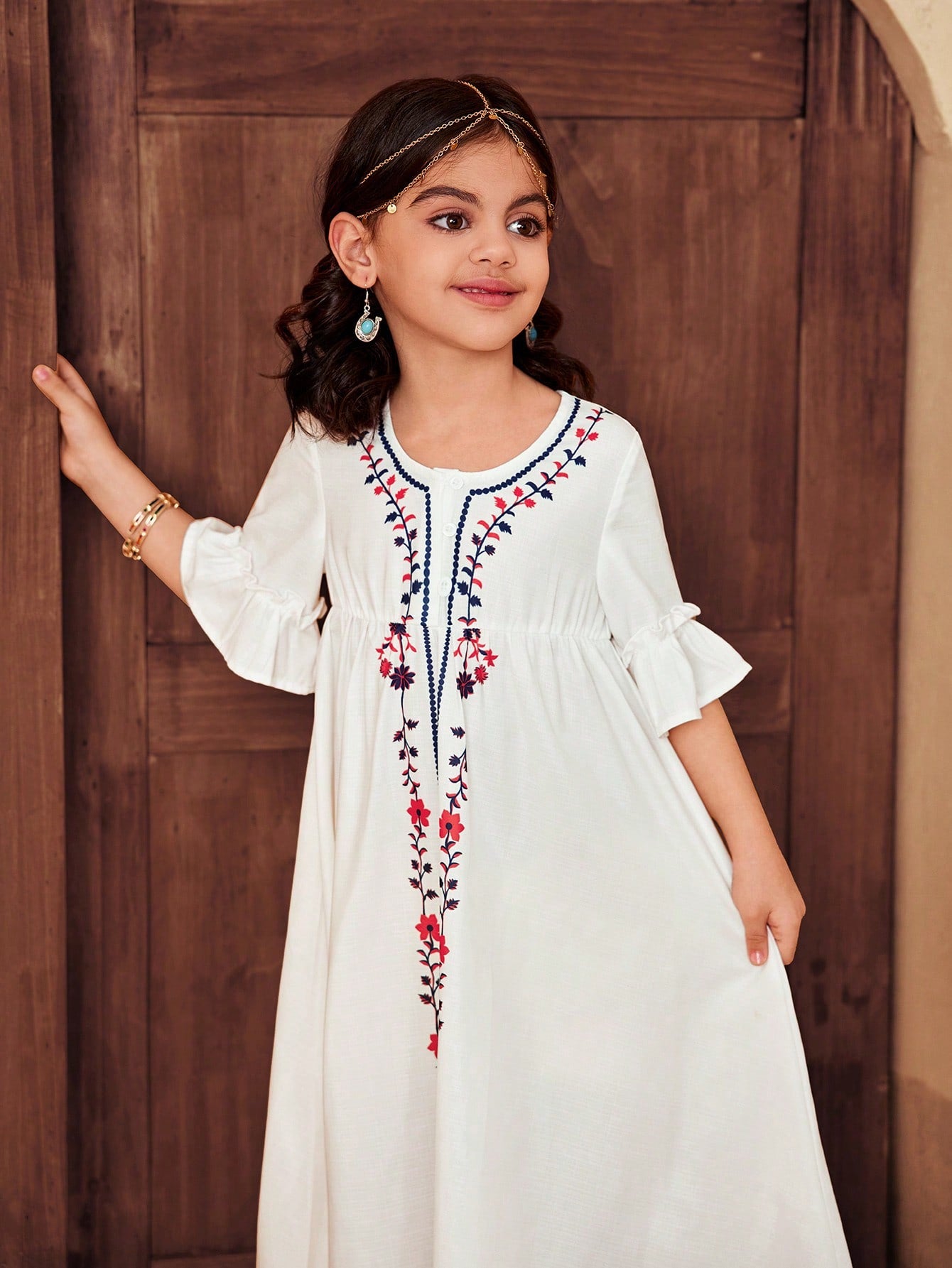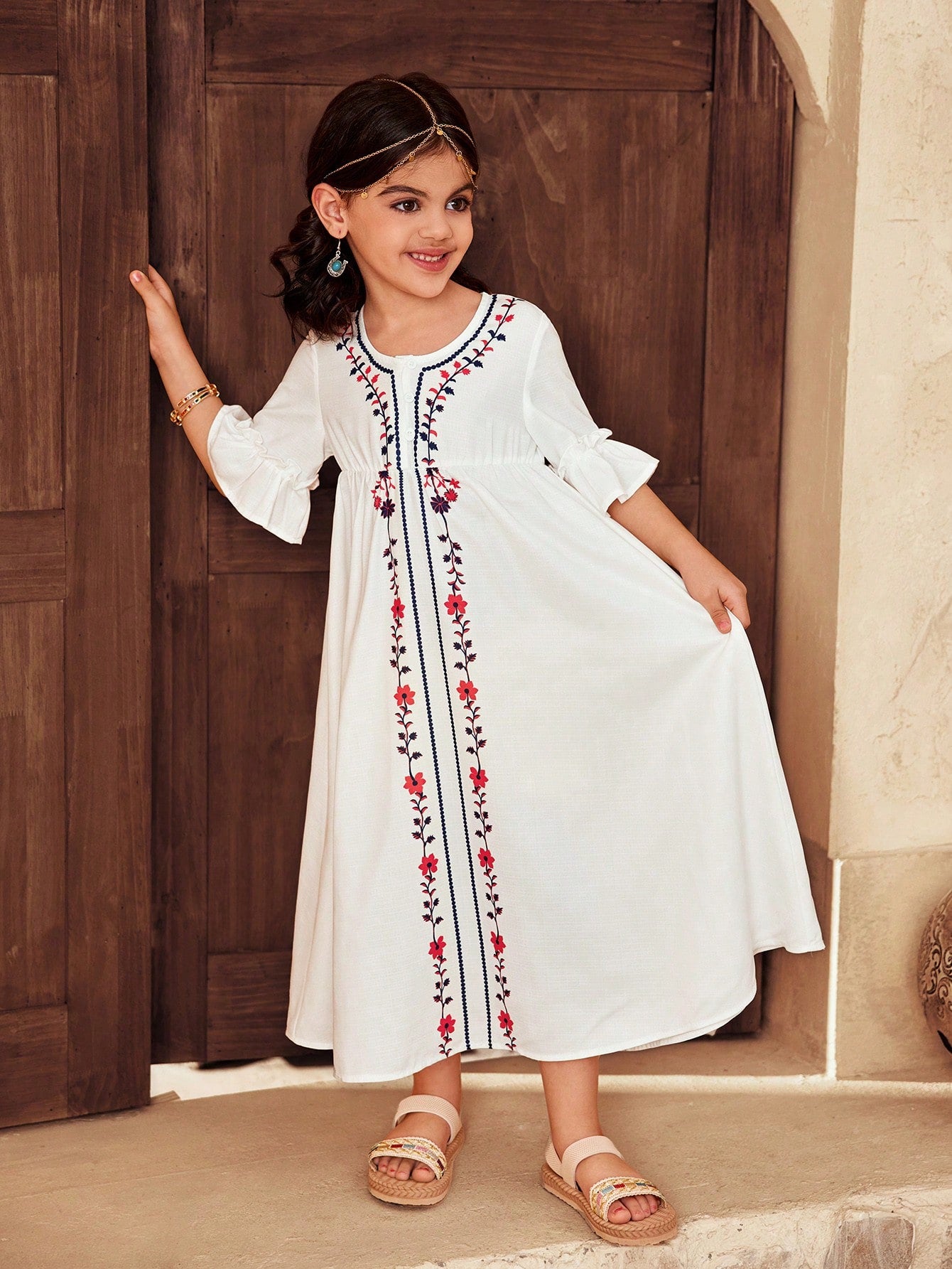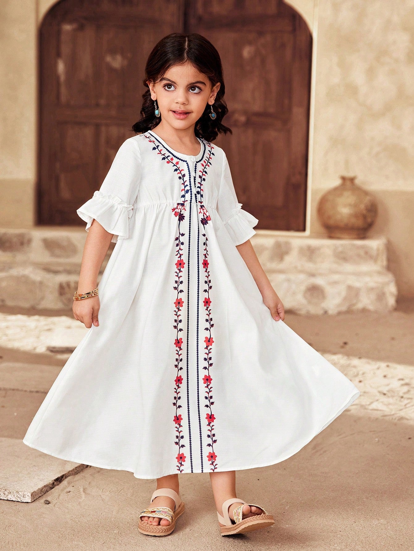 Young Girl Casual Matching Mother-DaughterPositioned Printed White Long Dress,Suitable For Spring And