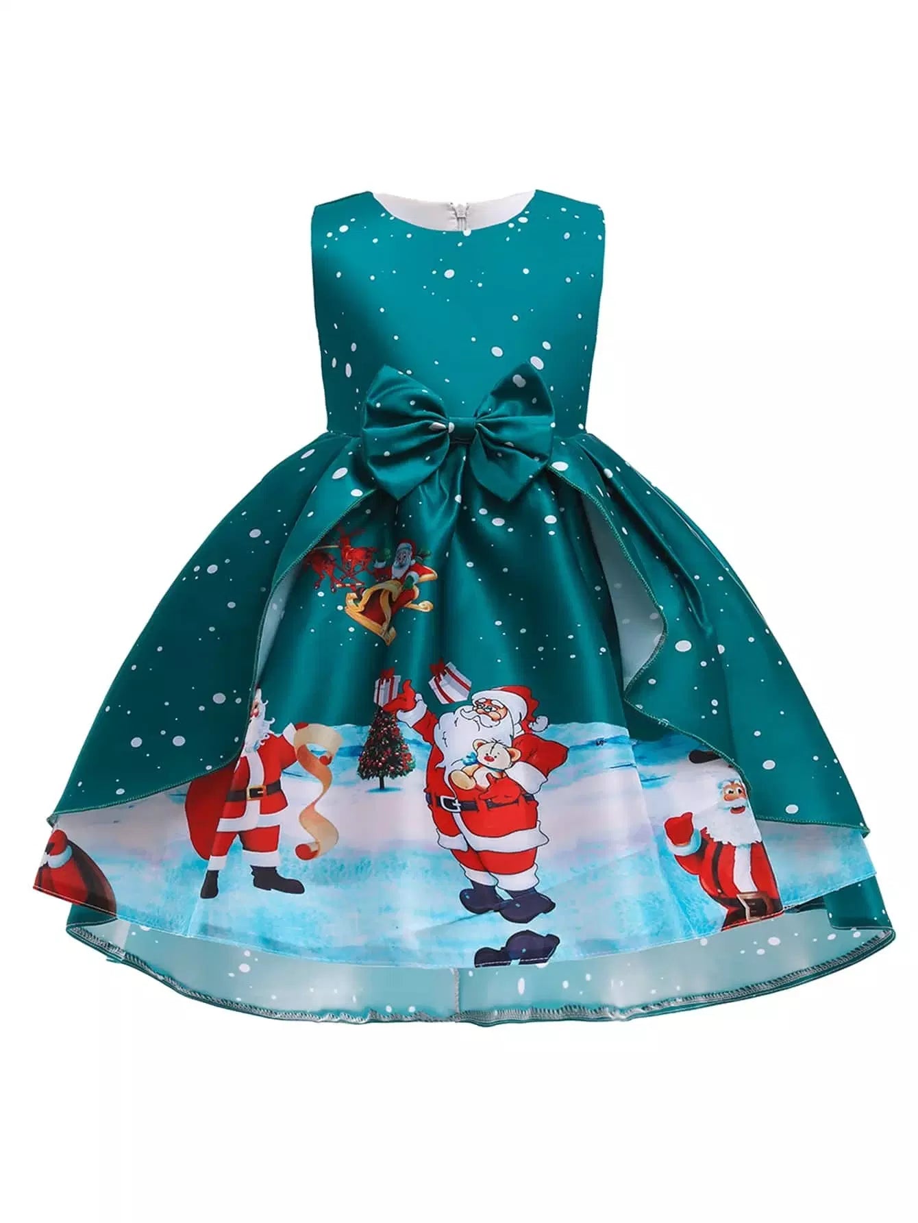 الأطفال - فستان للفتيات الصغيرات مطبوع عليه فيونكة أمامية لعيد الميلاد
