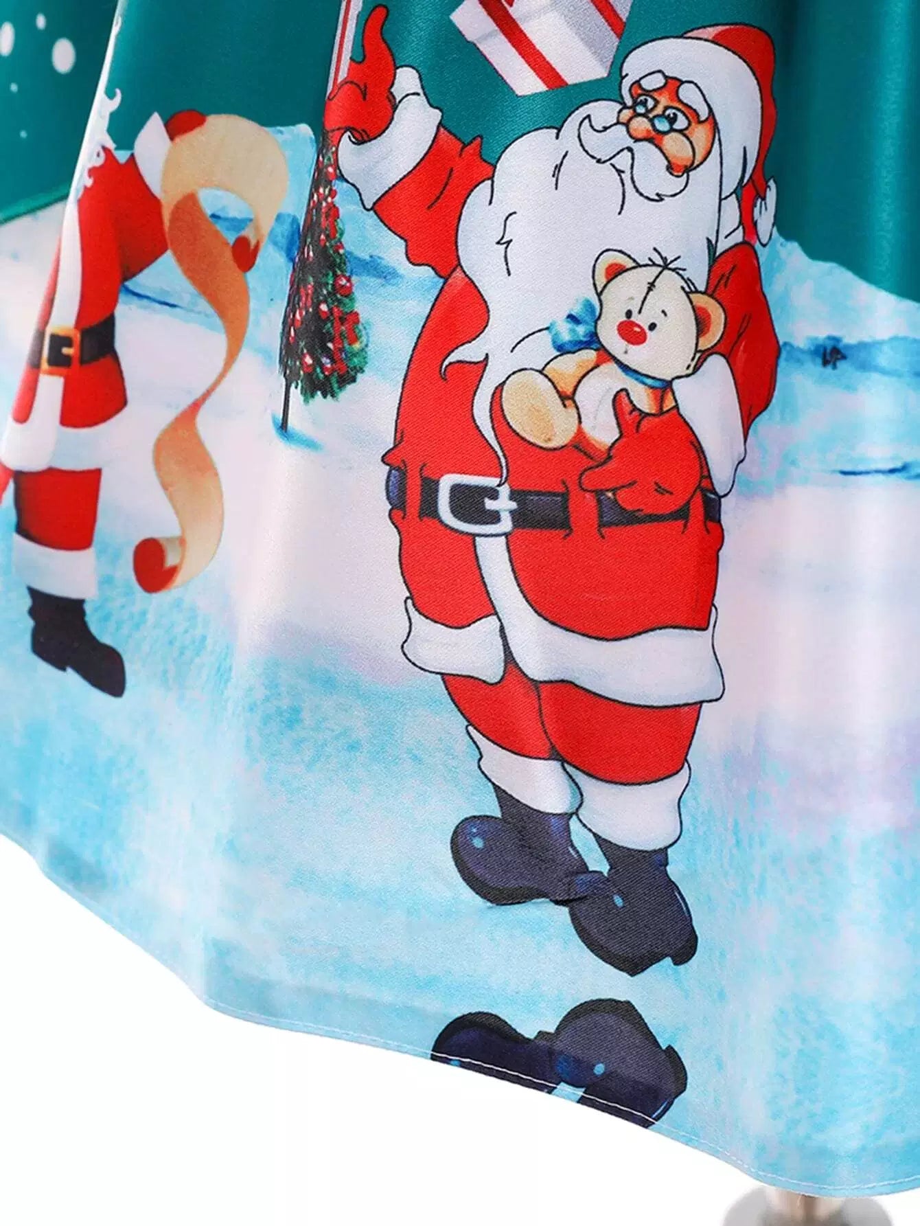 فستان بناتي صغيرات مطبوع بطبعة عيد الميلاد بعقدة من الأمام