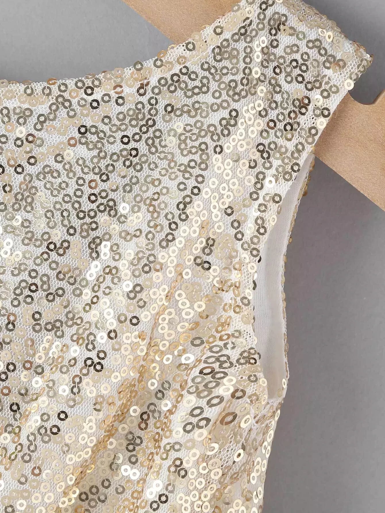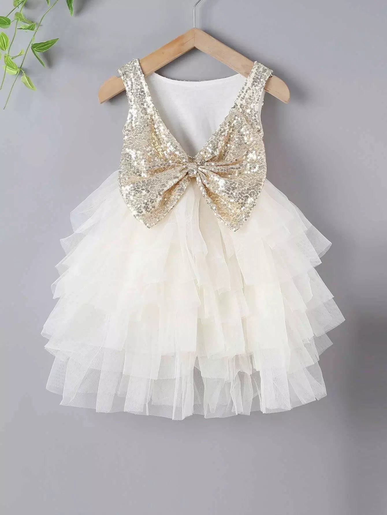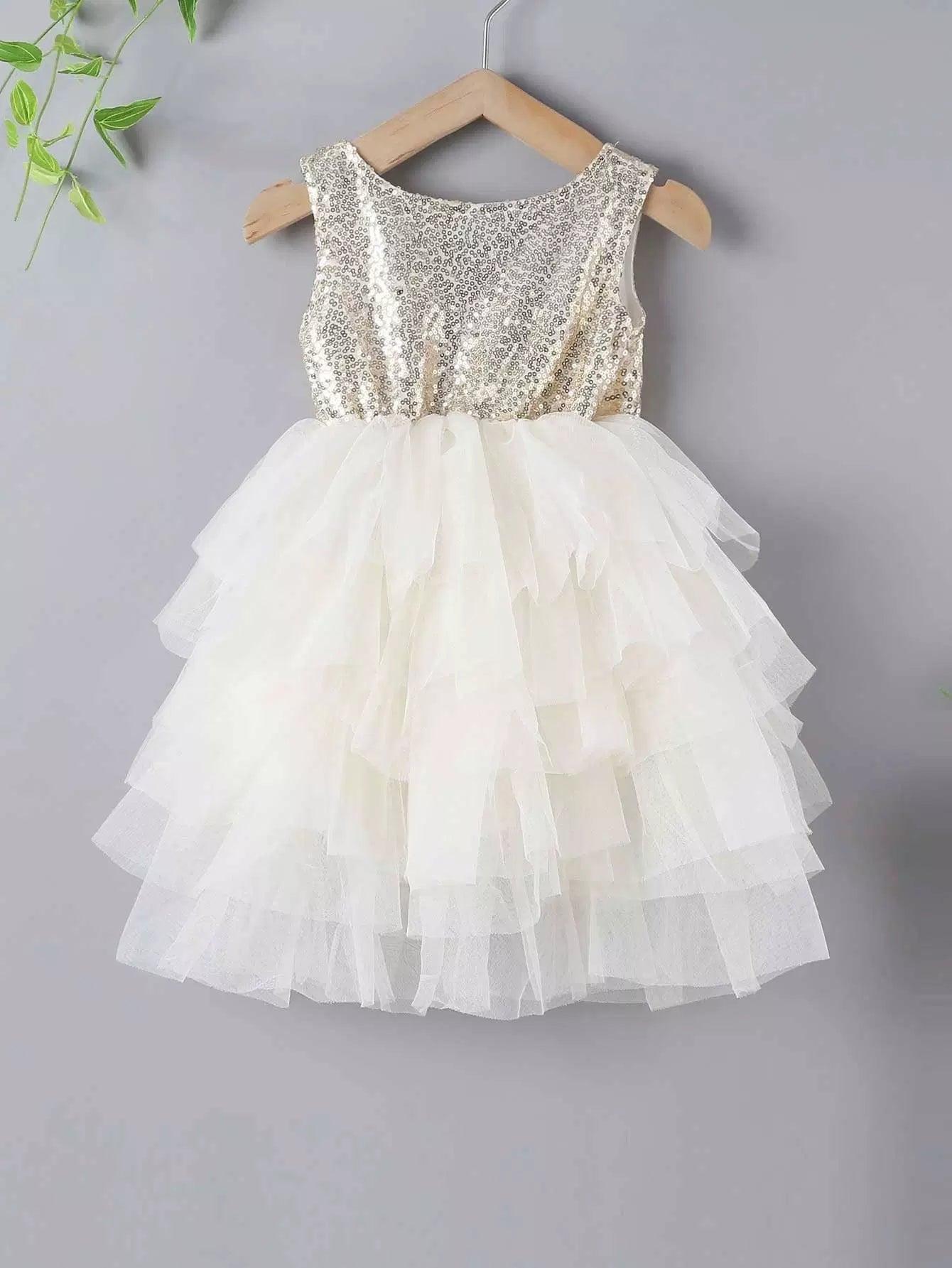 فستان سهرة شبكي بطبقات من الترتر المتباين للبنات الصغار
