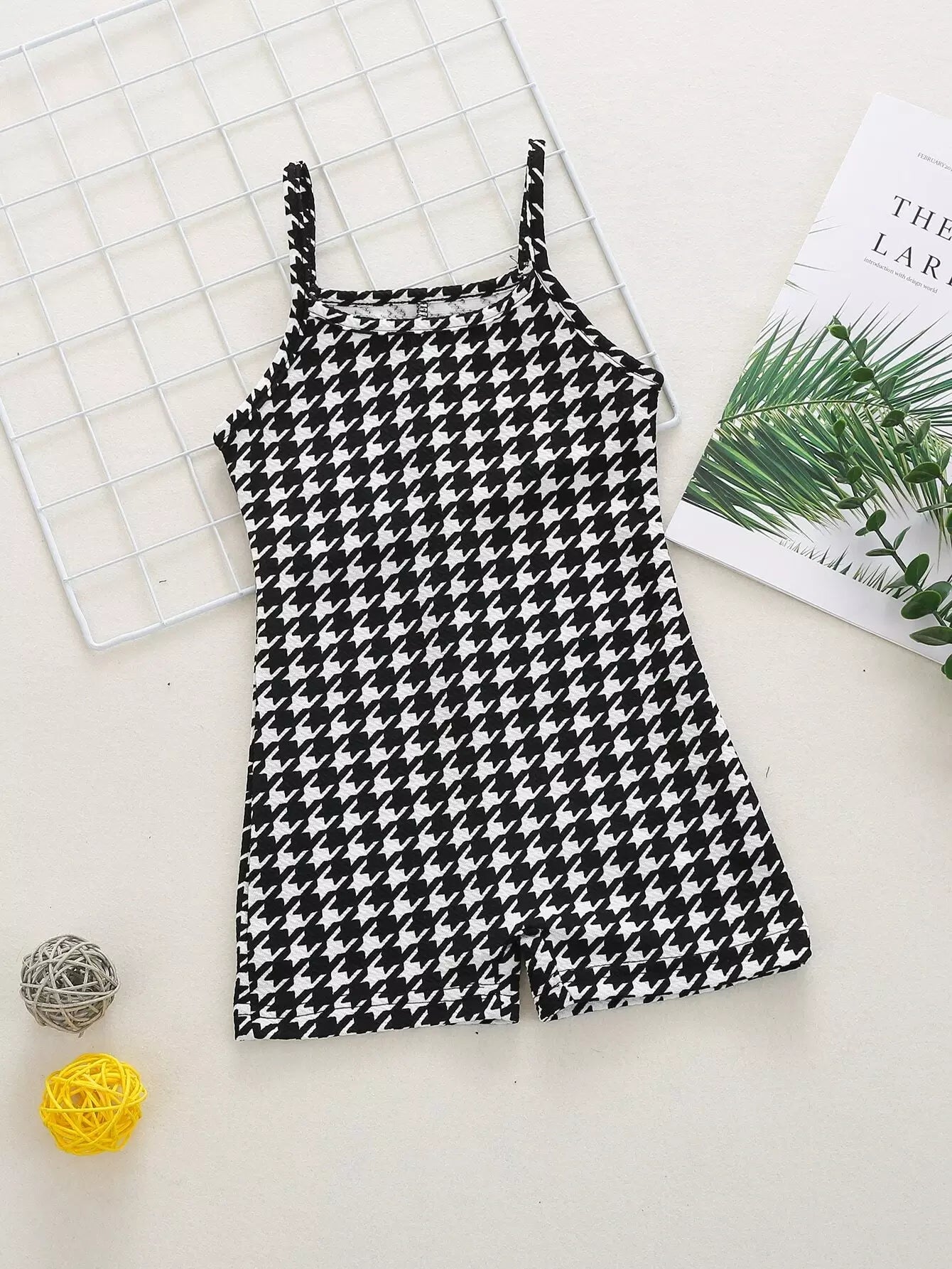رومبر قصير قصير بقصّة قصيرة بقطعة قطنية مربعة للبنات